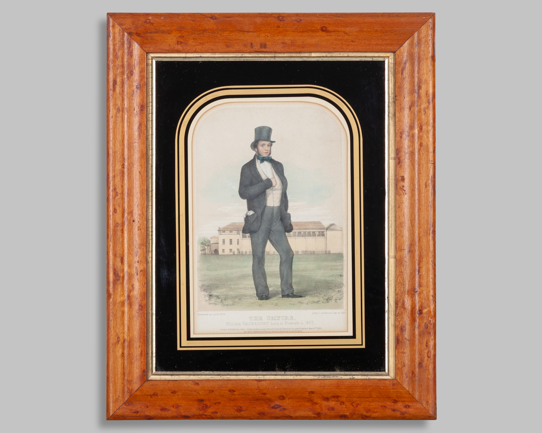 Sketches at Lords No.2 lithograph by John Corbet Anderson, depicting the umpire William Caldercourt, London published by John Corbert Anderson on 40, Church Road, de Beauvoir Square, Kingsland, March 1st 1852 and by F. Lillywhite, 10 Princes Terrace, Caledonian Road, Islington, framed and glazed, 30 x 37cm