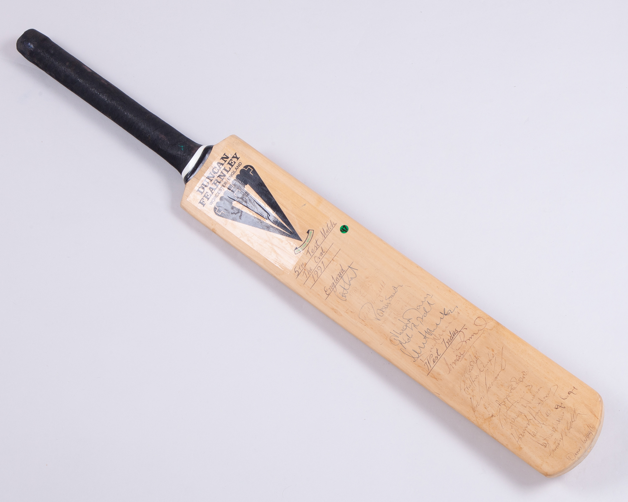 England v. West Indies 1991 5th Test match autographed Duncan Fearnley cricket bat, with approximately twenty-four autographs including Graham Gooch, Alec Stewart faded and Vivian Richards etc., with many faded
