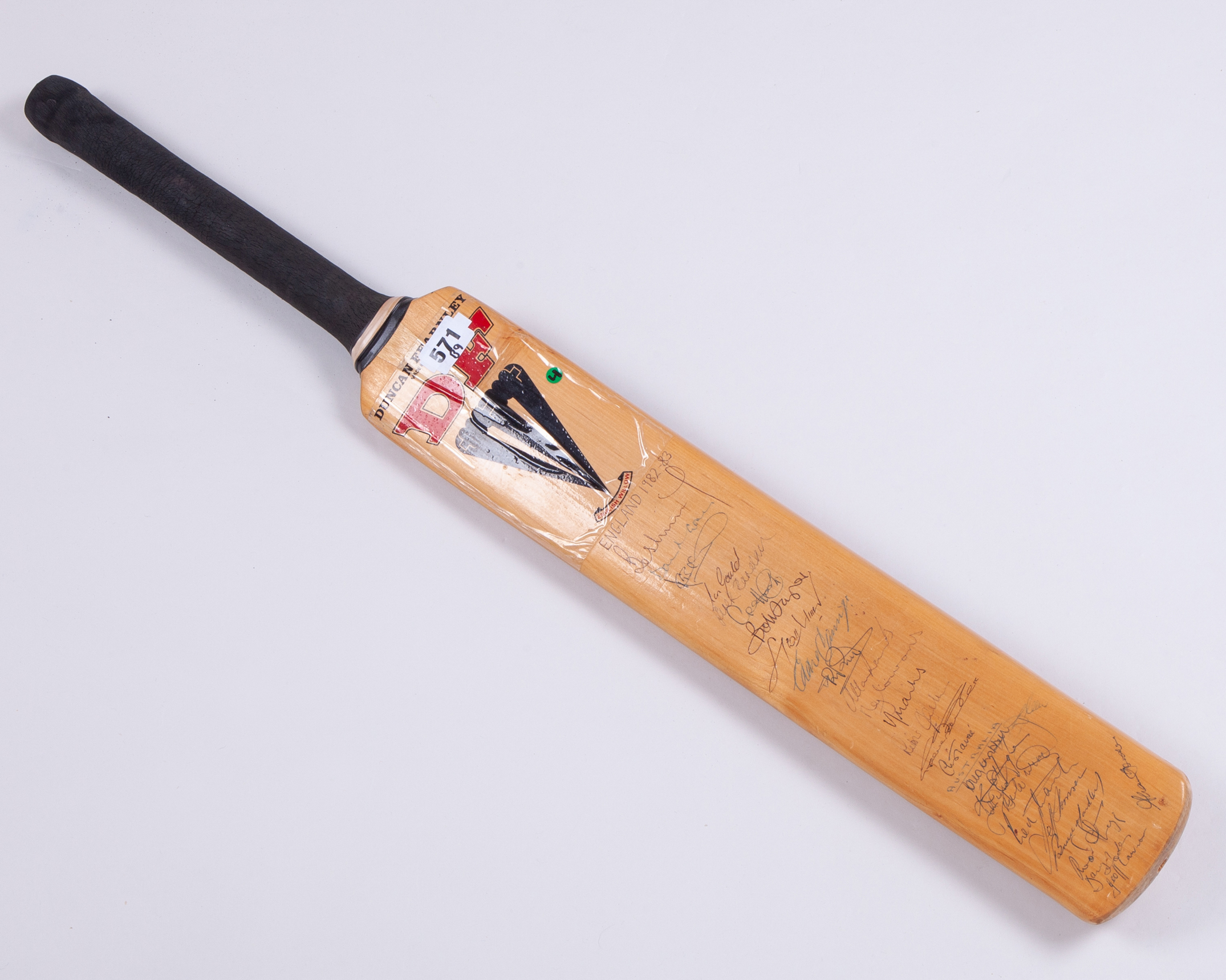 England v. Australia 1982-83 Tour autographed Duncan Fearnley cricket bat, with twenty-eight autographs including Allan Lamb, Ian Gould, Allan Border and Kim Hughes etc.
