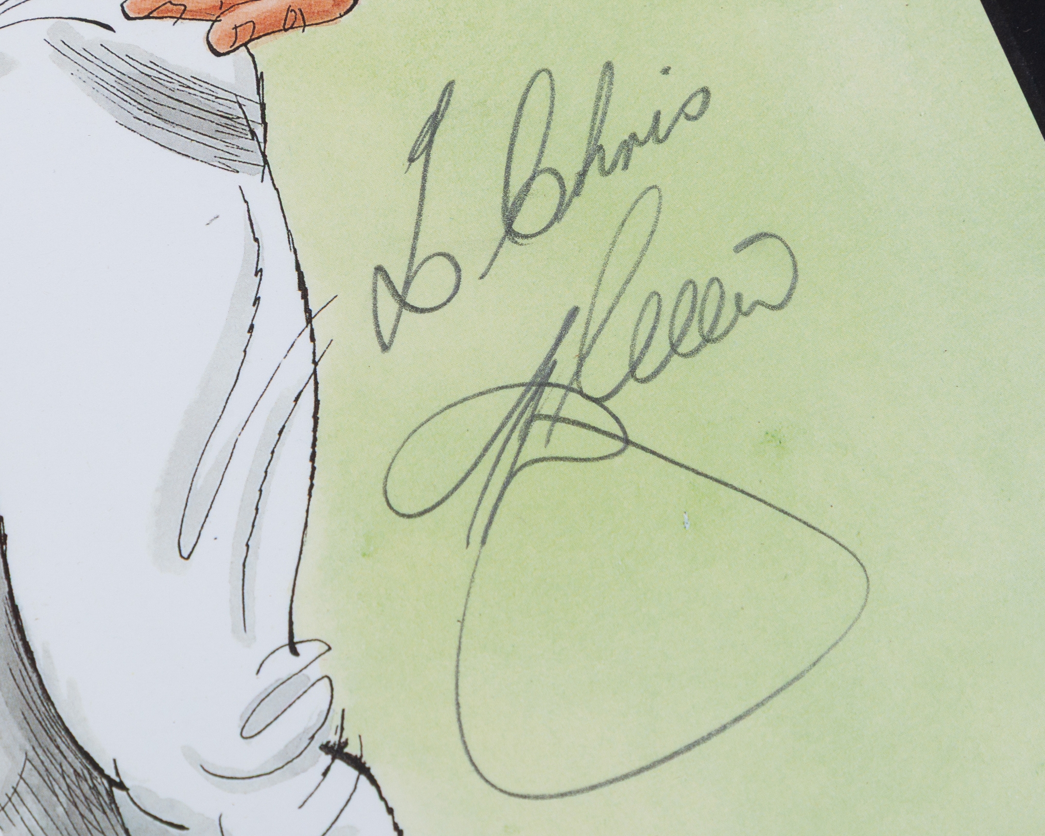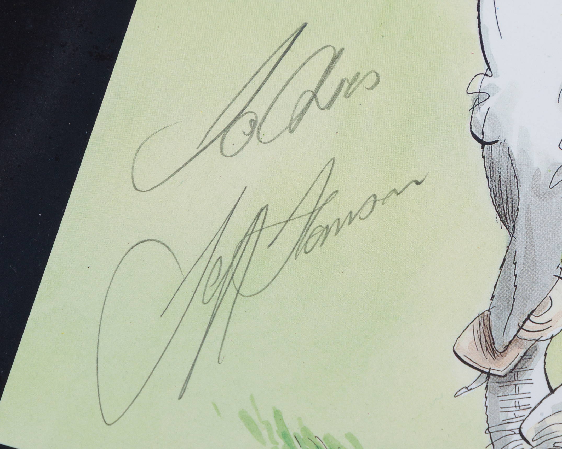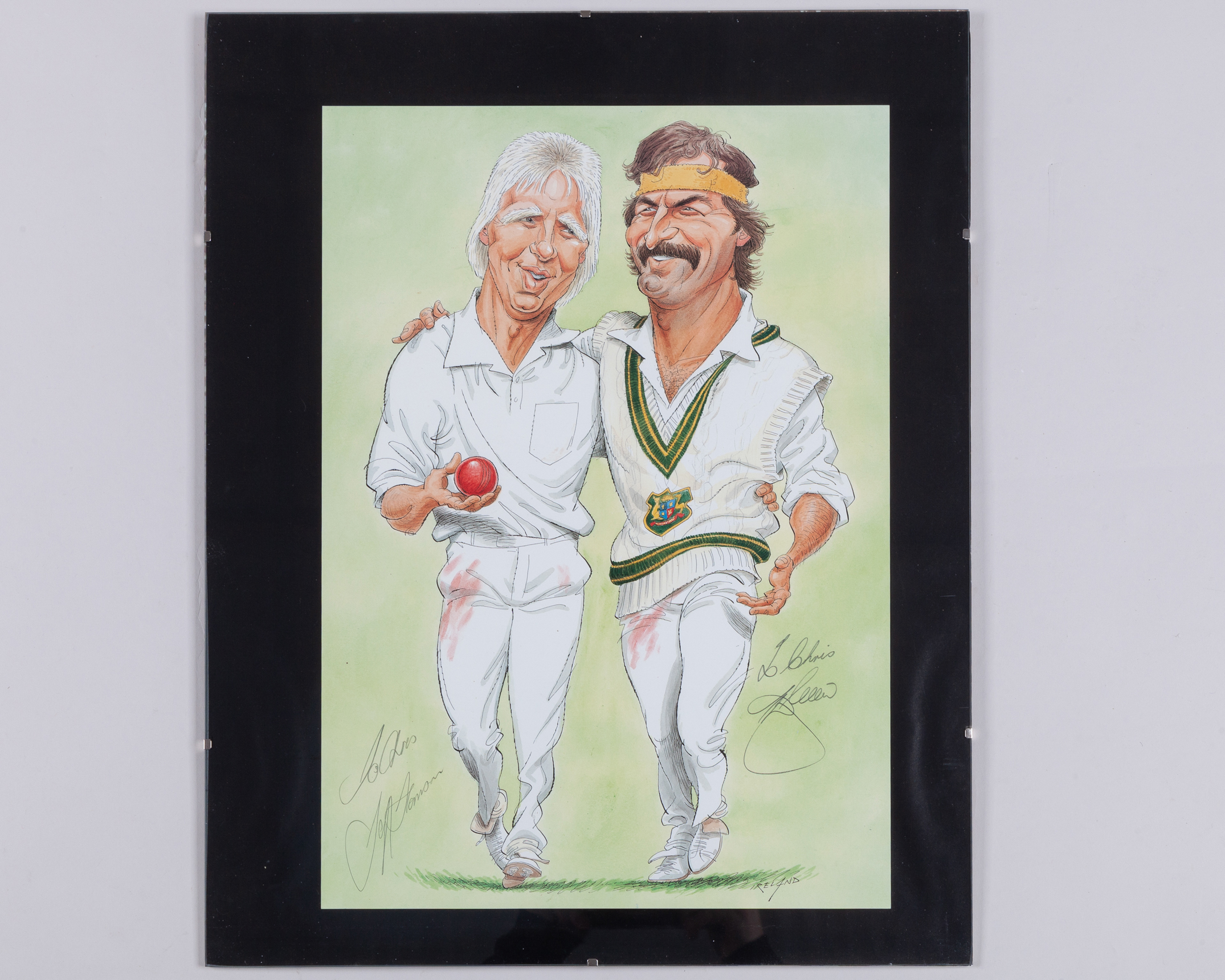 An autographed caricature print of Jeff Thomson and Dennis Lillee