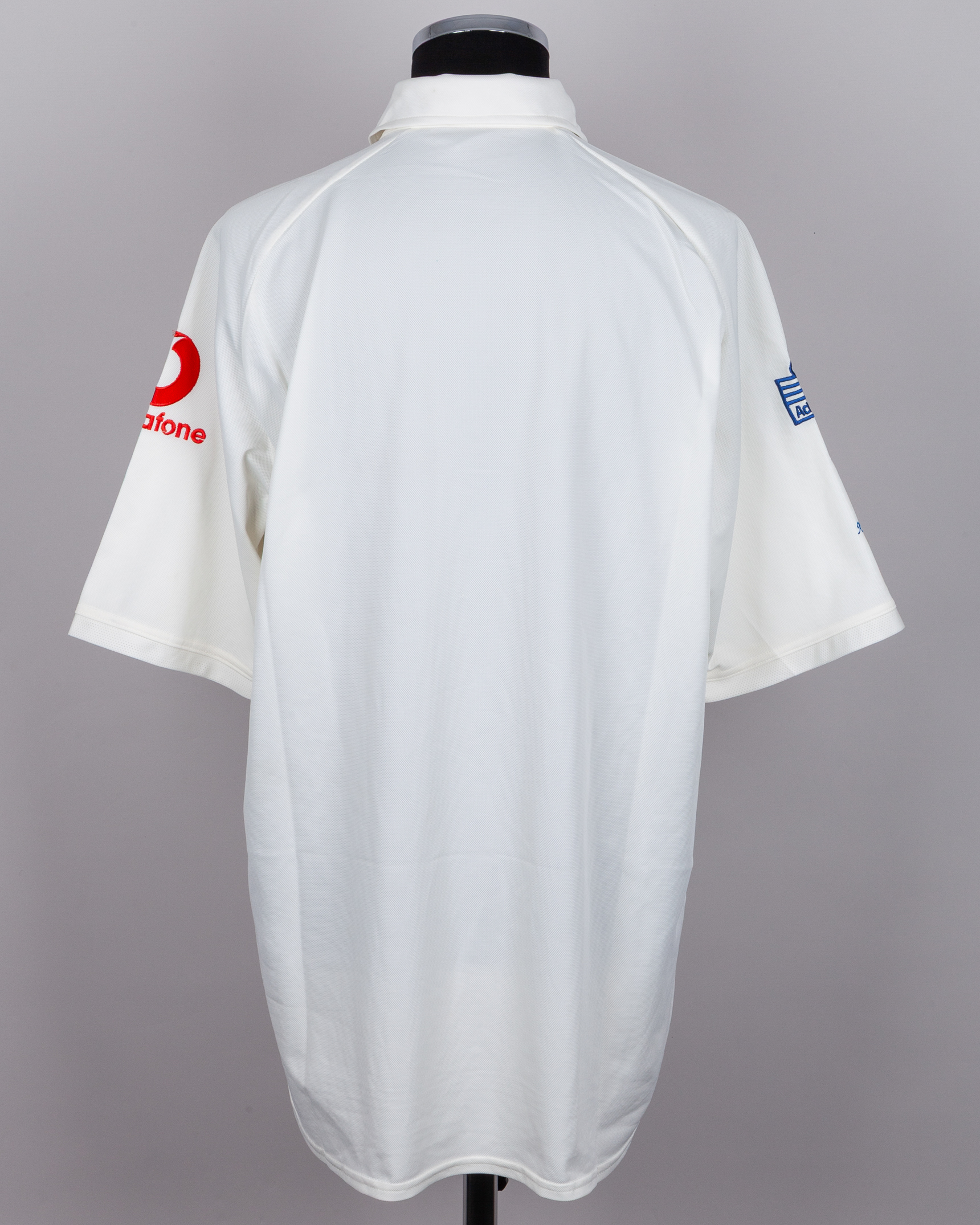 Alec Stewart England v. India Test series cricket white short-sleeved shirt, 2002