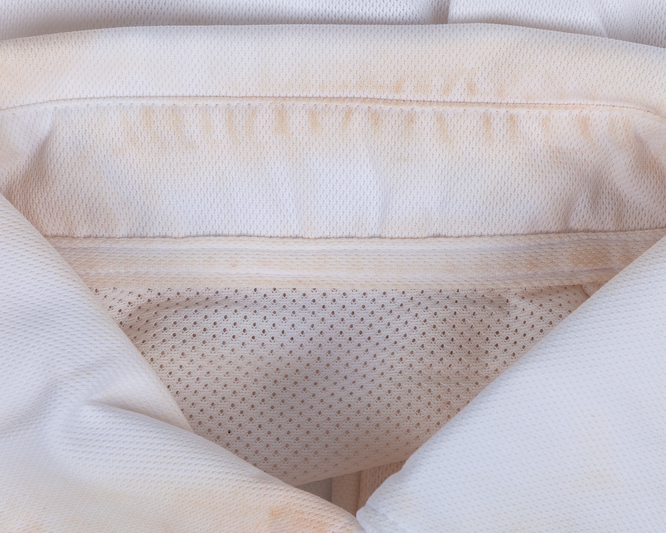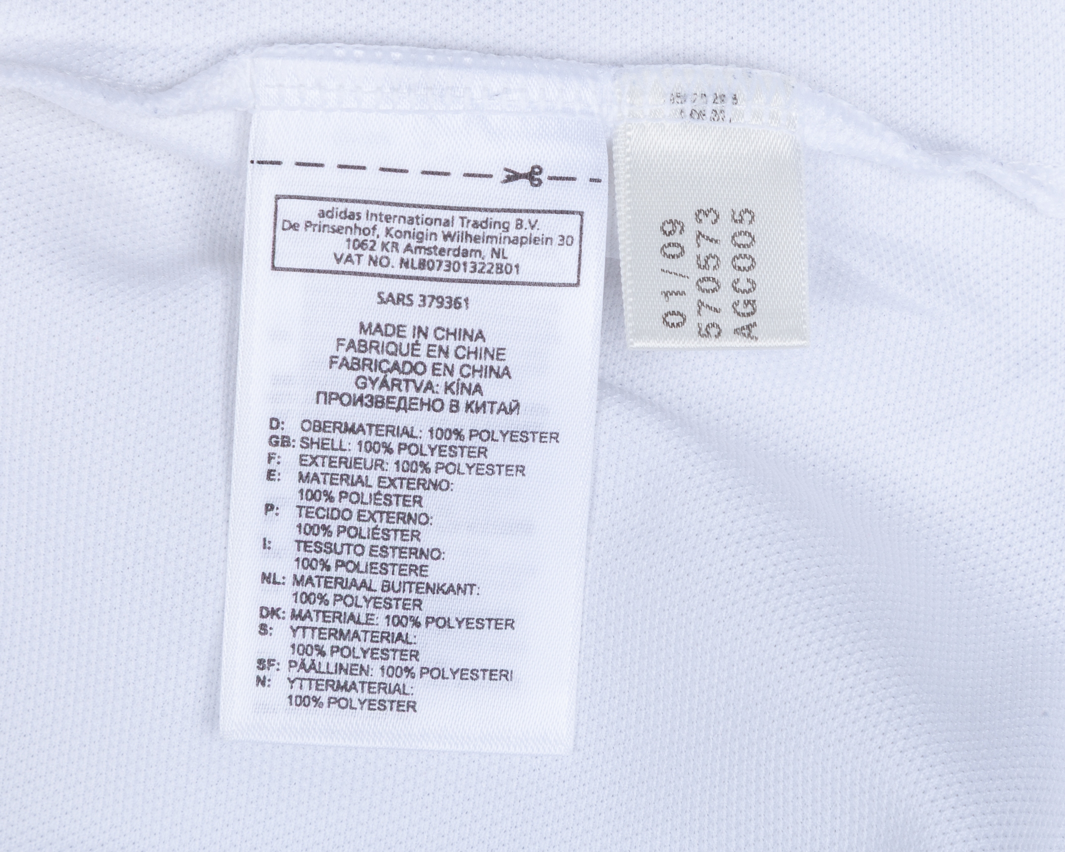 Paul Collingwood England v. West Indies Test series match worn autographed cricket white short-sleeved shirt, 2009, Adidas, 40/42, with button-up collar and embroidered badge inscribed 622, the right sleeve embroidered PC, autographed on the front, with staining and discolouration