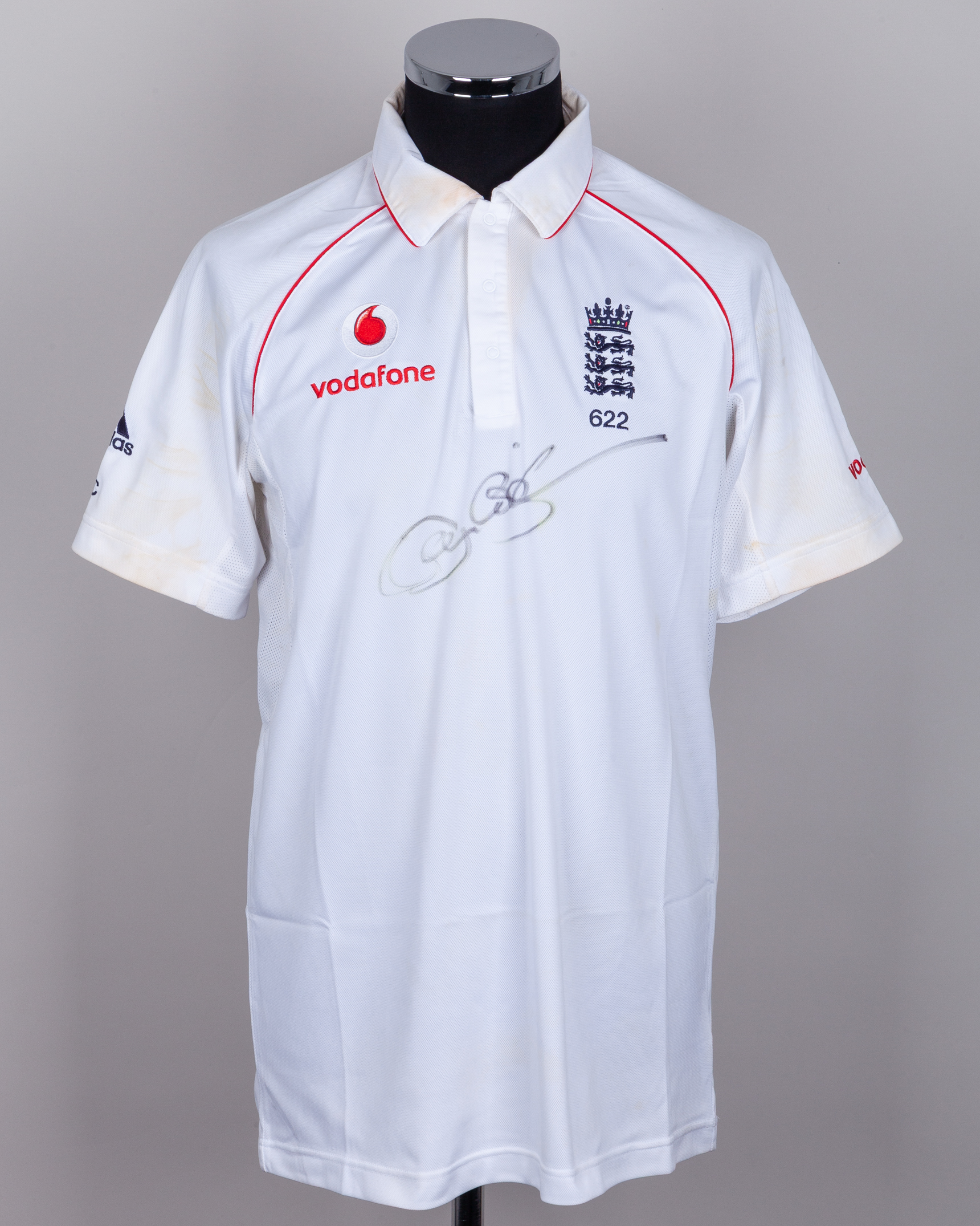 Paul Collingwood England v. West Indies Test series match worn autographed shirt, 2009