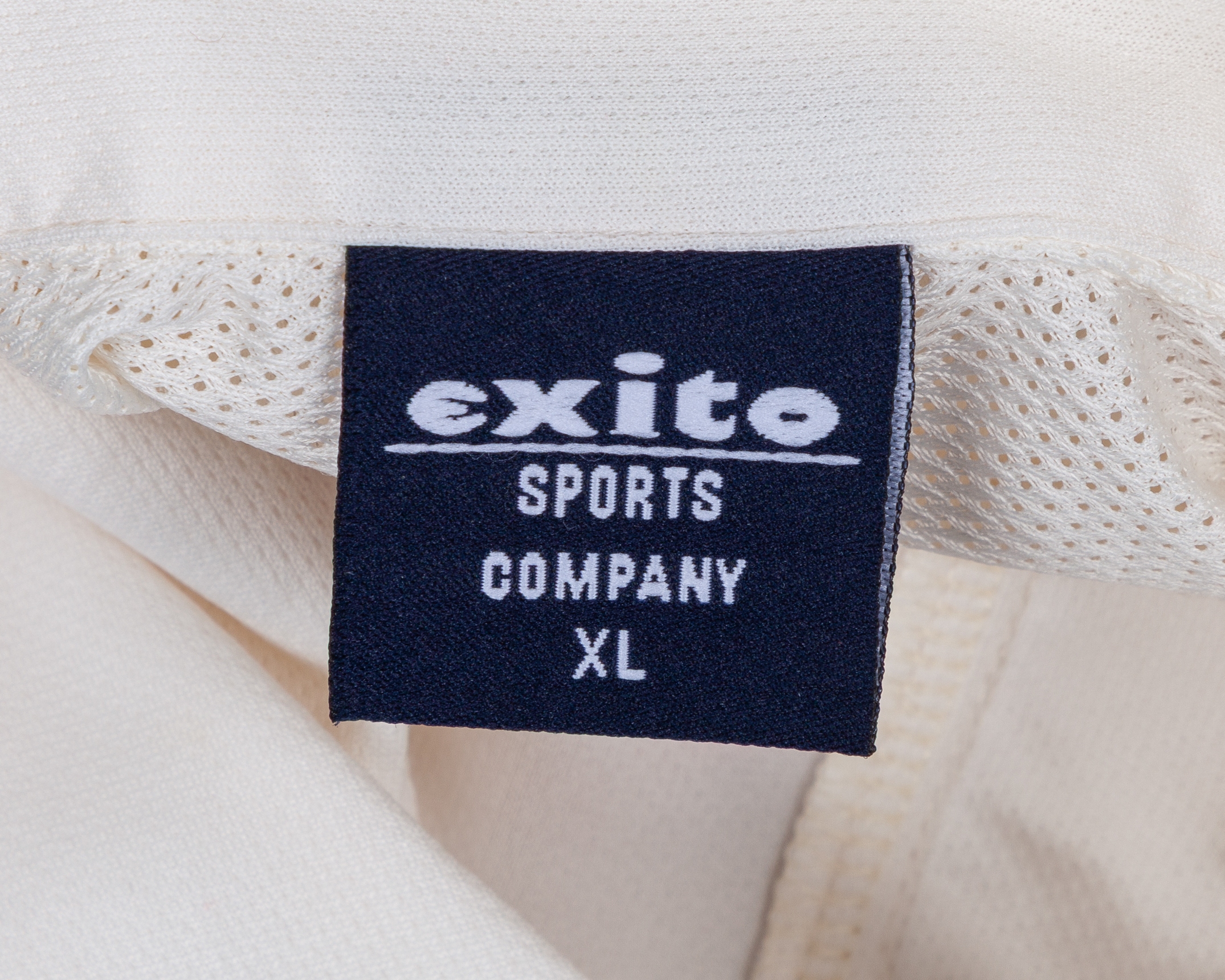 VVS Laxman off-white No.26 Lancashire county cricket long-sleeved shirt, 2007, Exito, XL, with button-up collar and embroidered badge, the reverse lettered LAXMAN