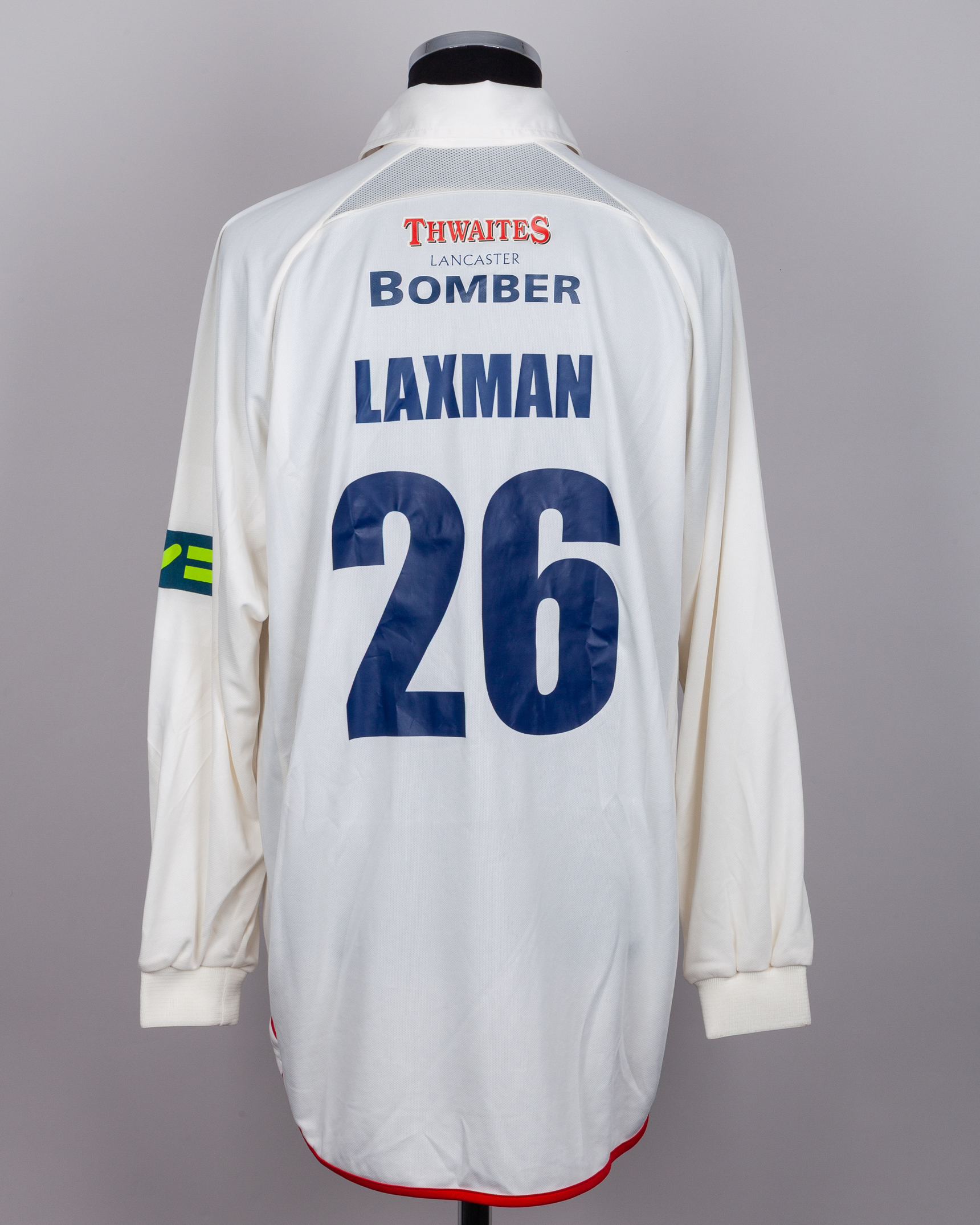 VVS Laxman off-white No.26 Lancashire county cricket long-sleeved shirt, 2007