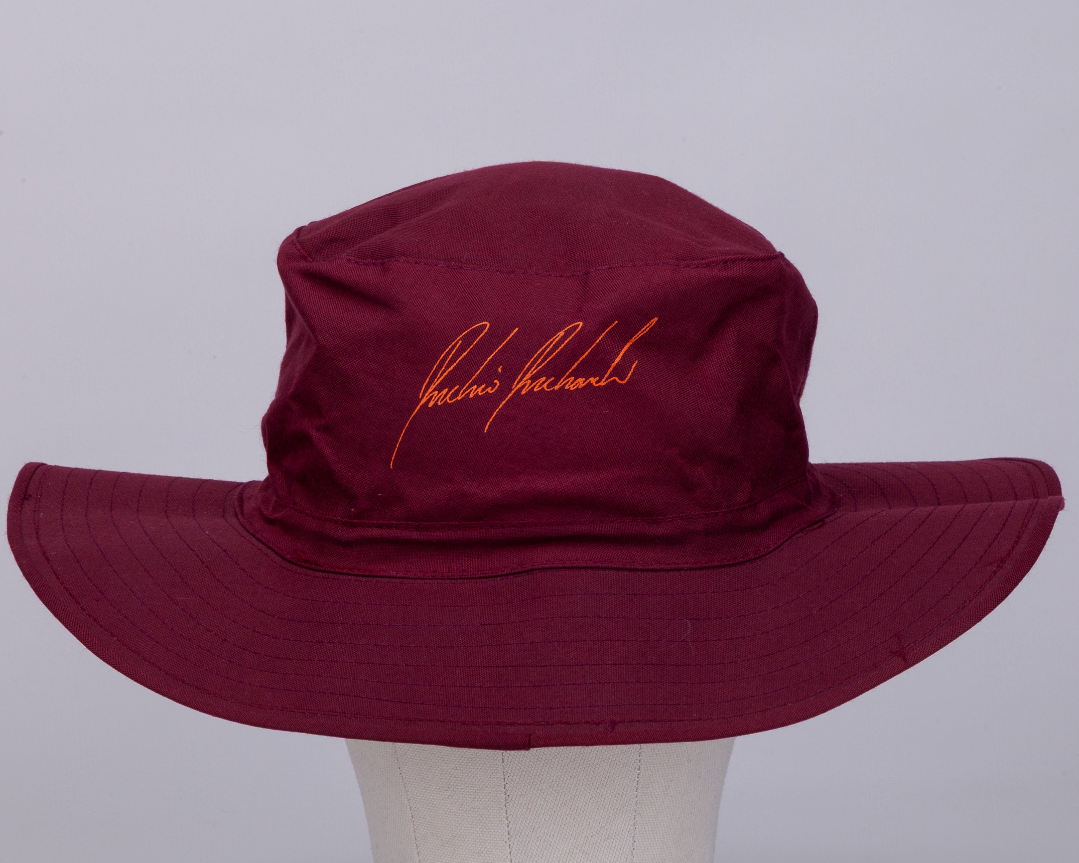 Richie Richard autographed maroon sun hat, Stuart Sturridge, L, autographed on the inside