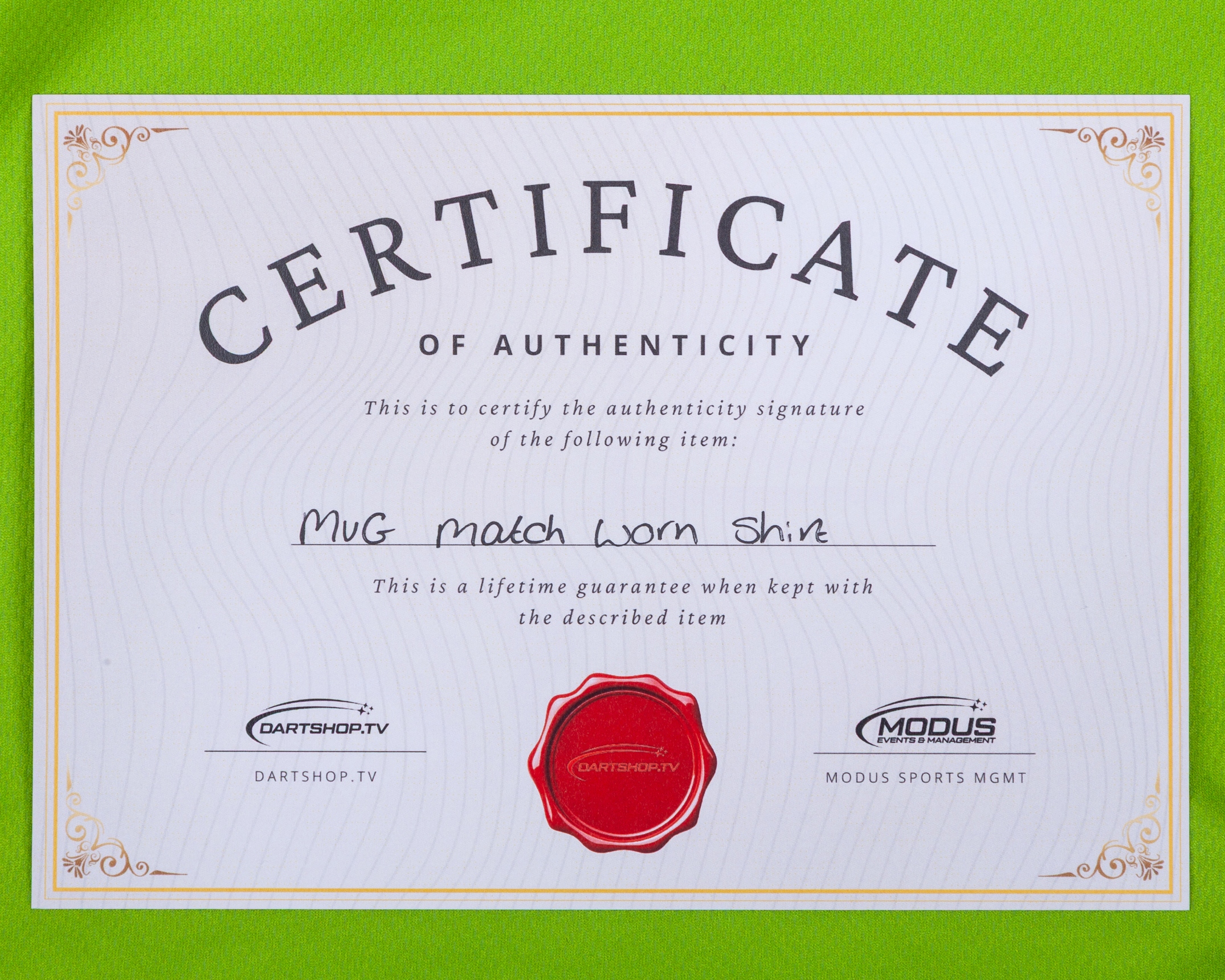 Worn by one of darts’ greatest ever players during a top-level Premier League match, this shirt carries the marks and stories of high-stakes competition. Full provenance is included, making it an authentic piece of modern darts history.