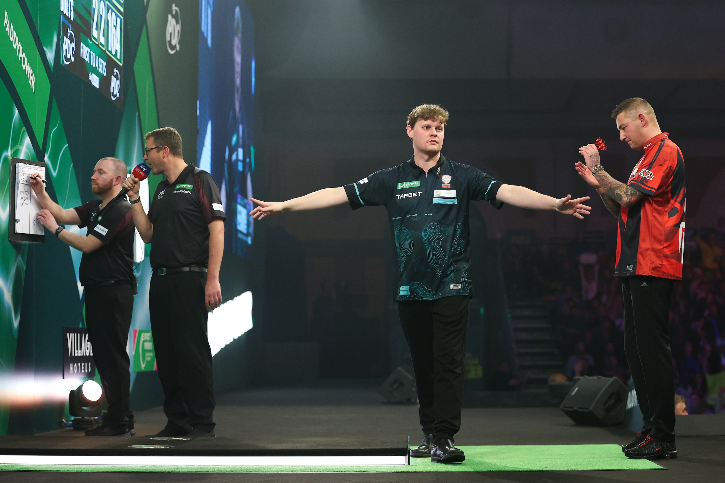 In the penultimate match of Round Three, Doets defied the odds with a thrilling 4–3 victory over Aspinall. Producing an outstanding 97 match average, Doets delivered a match-defining three ton-plus finishes across the final six legs in the deciding set.
