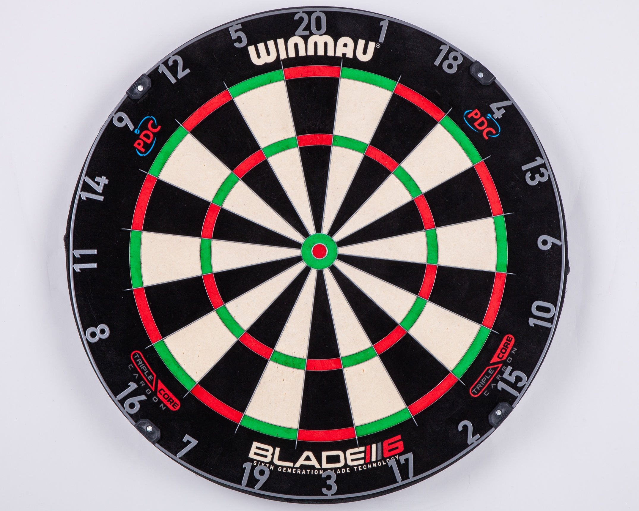 This is the official Winmau match-used dartboard from the Round Four fixture between reigning World Champion “Cool Hand” Luke Humphries and Kevin Doets at the 2025/26 PDC World Darts Championship.