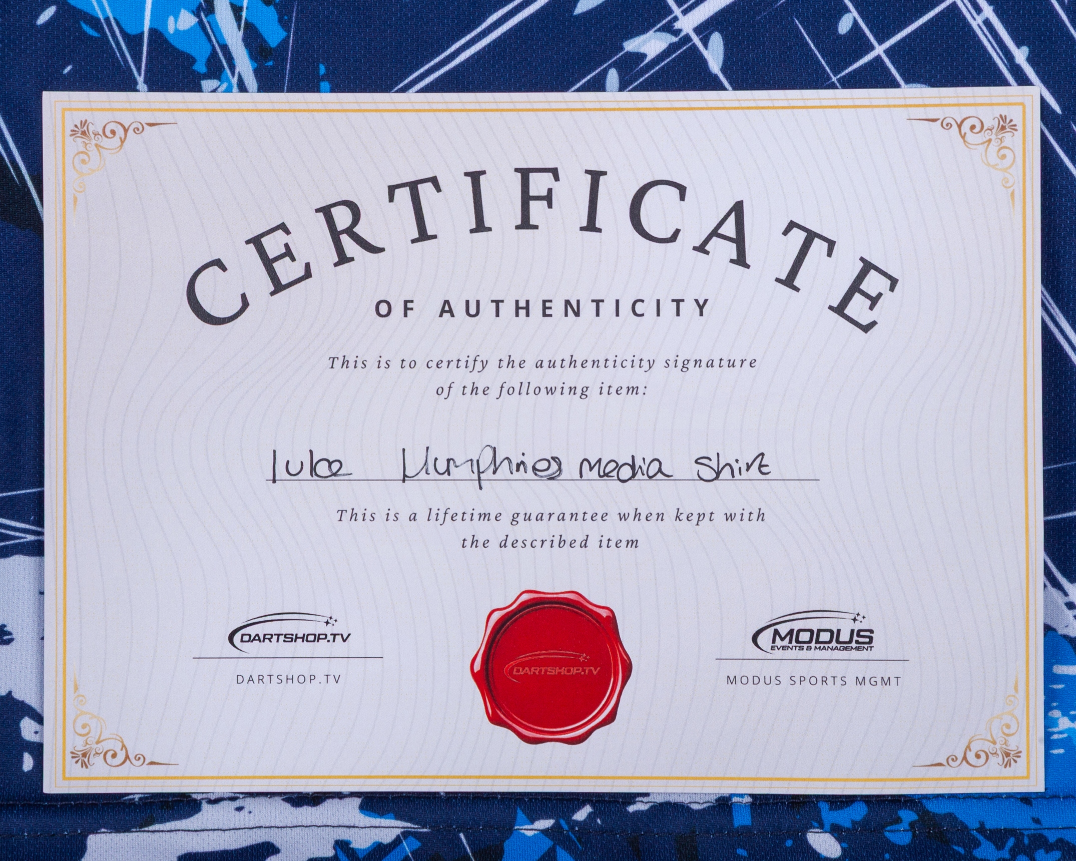 This shirt embodies the excitement, intensity and prestige of a season in which Humphries reaffirmed his status as one of the sport’s dominant forces. Personally signed by Luke, it offers an exceptional and highly sought-after collectible from the newly crowned Premier League winner.