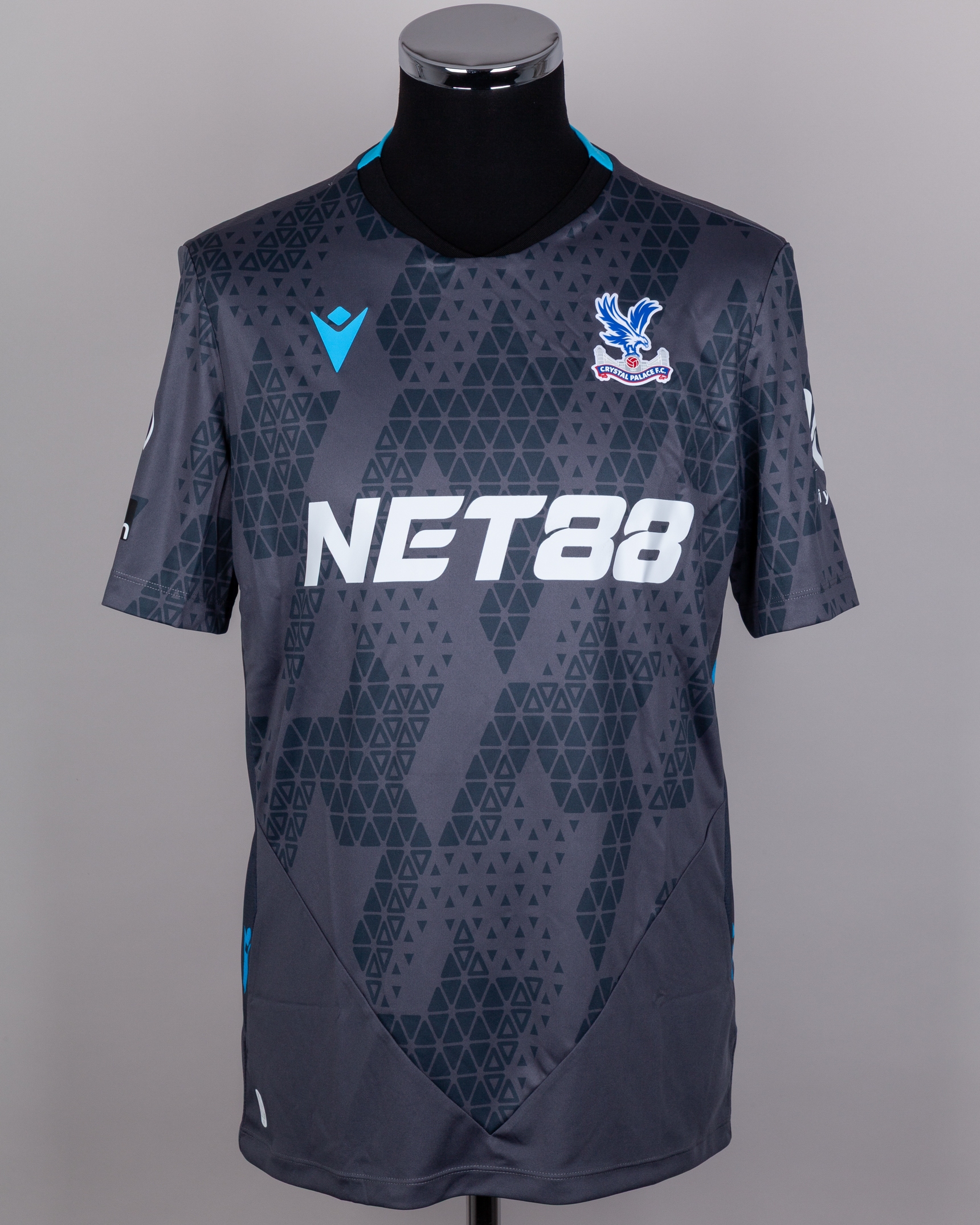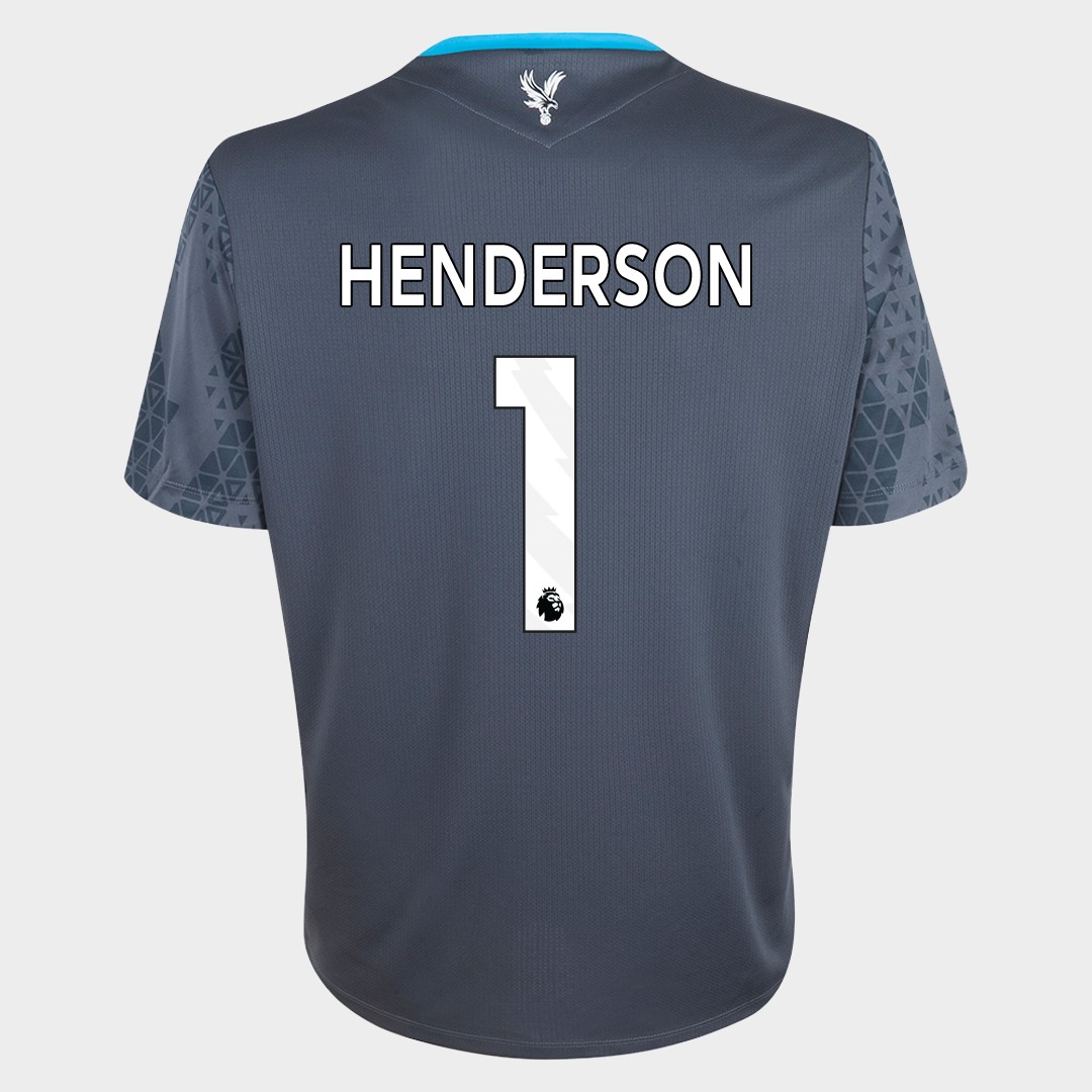 Dean Henderson No.1 Crystal Palace v. Nottingham Forest (Away) match issued short-sleeved signed shirt, Premier League 2026, Macron, with crew-neck collar and printed badge, the reverse lettered HENDERSON, the right sleeve with Premier League logo