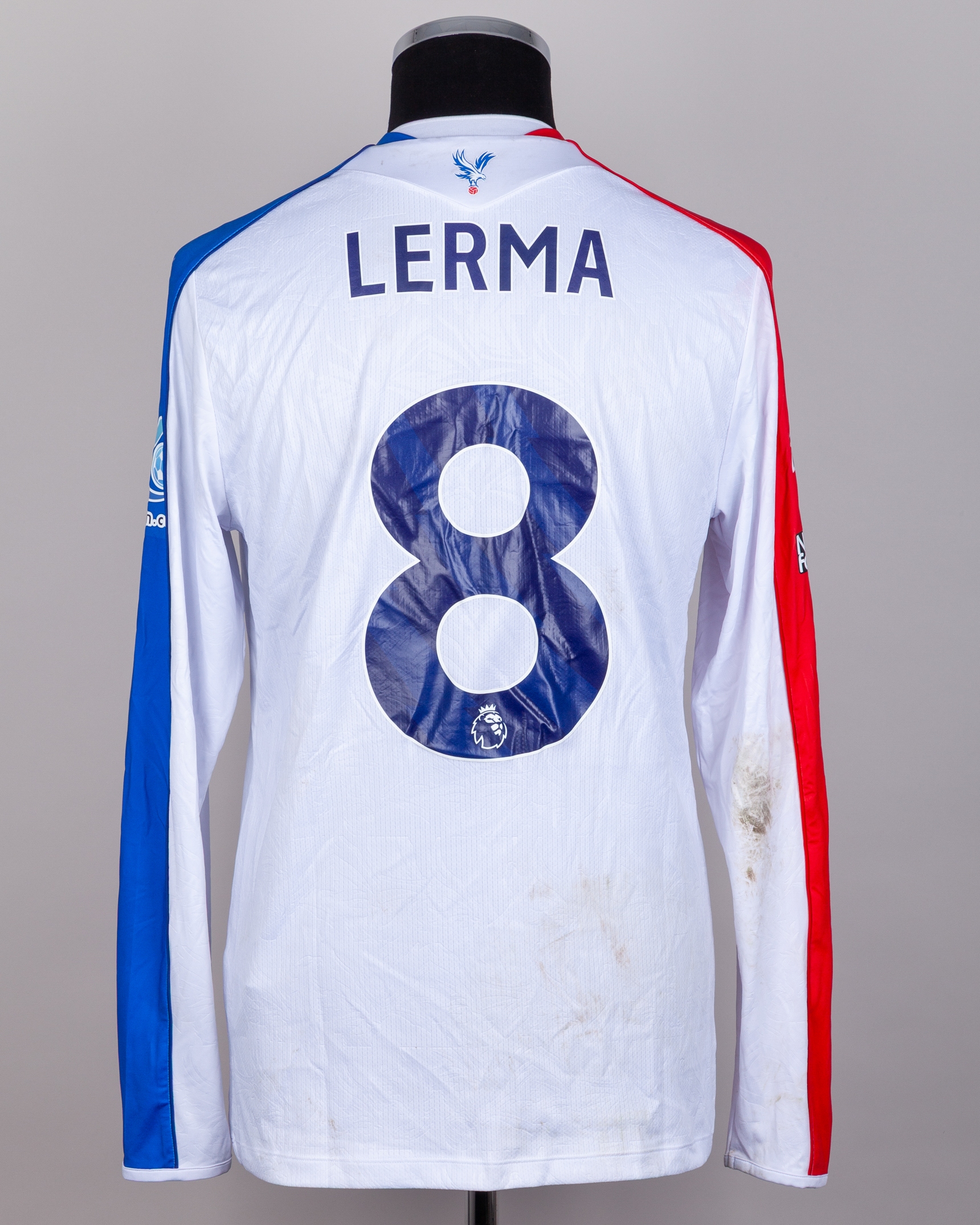 Jefferson Lerma No.8 Crystal Palace v. Nottingham Forest (Away) match worn long-sleeved shirt, Premier League 2026, Macron, with crew-neck collar and printed badge, the reverse lettered LERMA, the right sleeve with Premier League logo