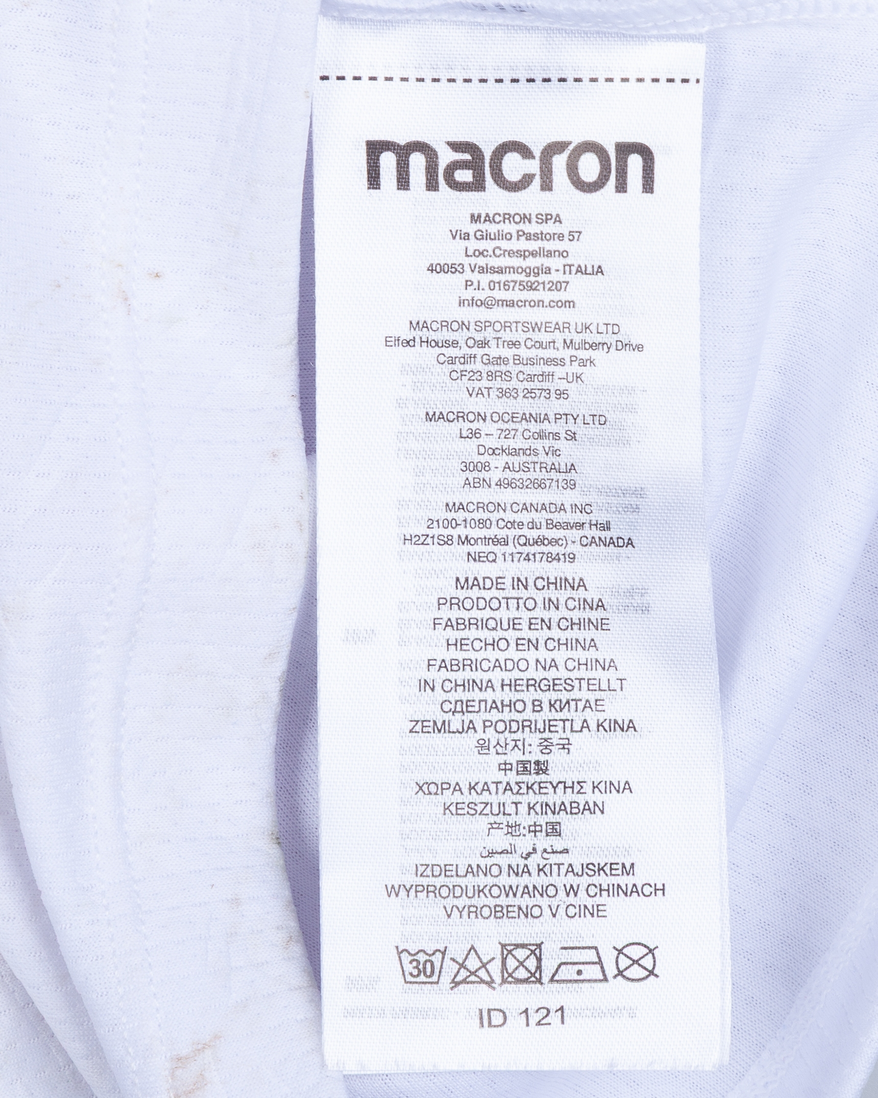 The shirt is match worn and unwashed with slight staining on the rear