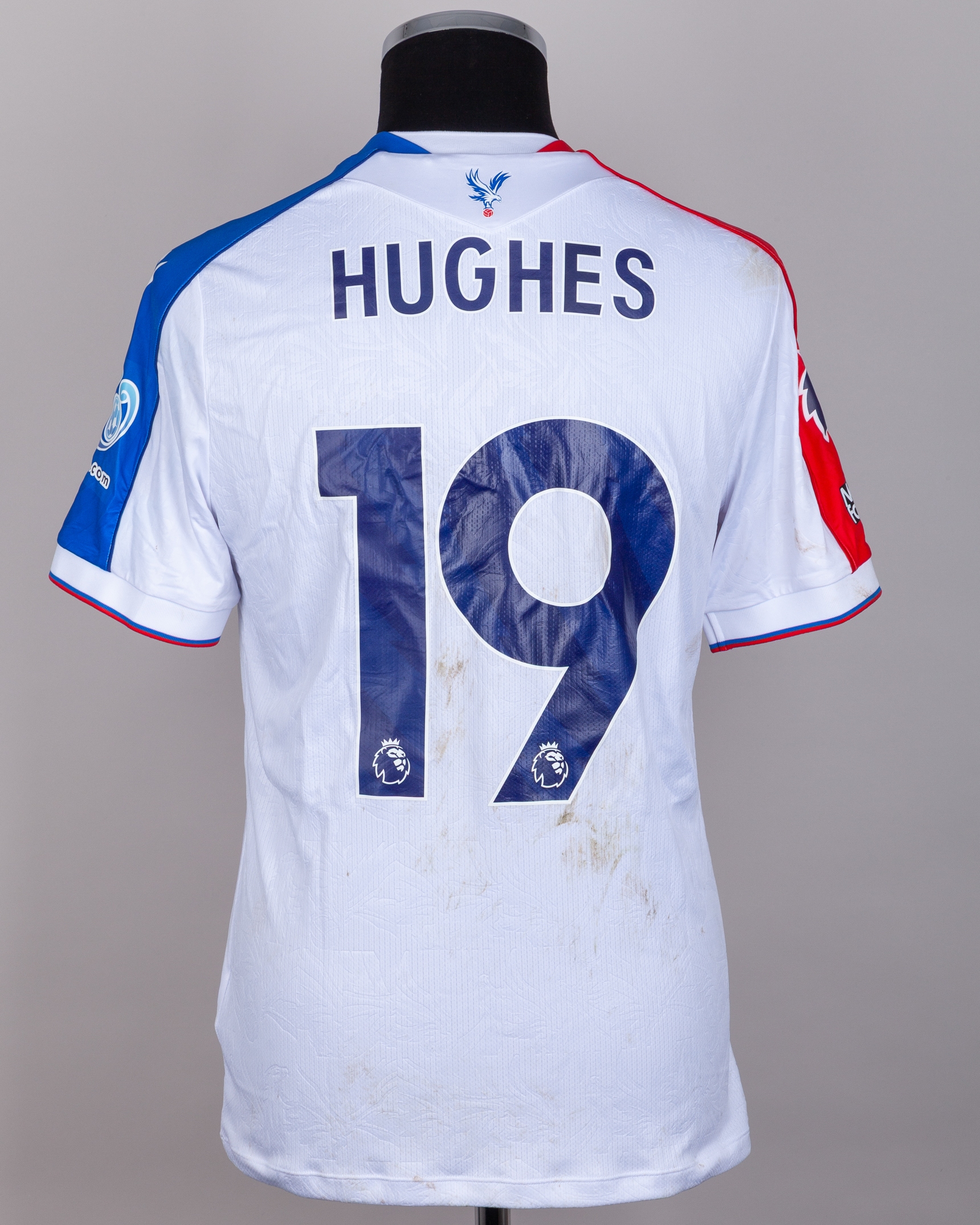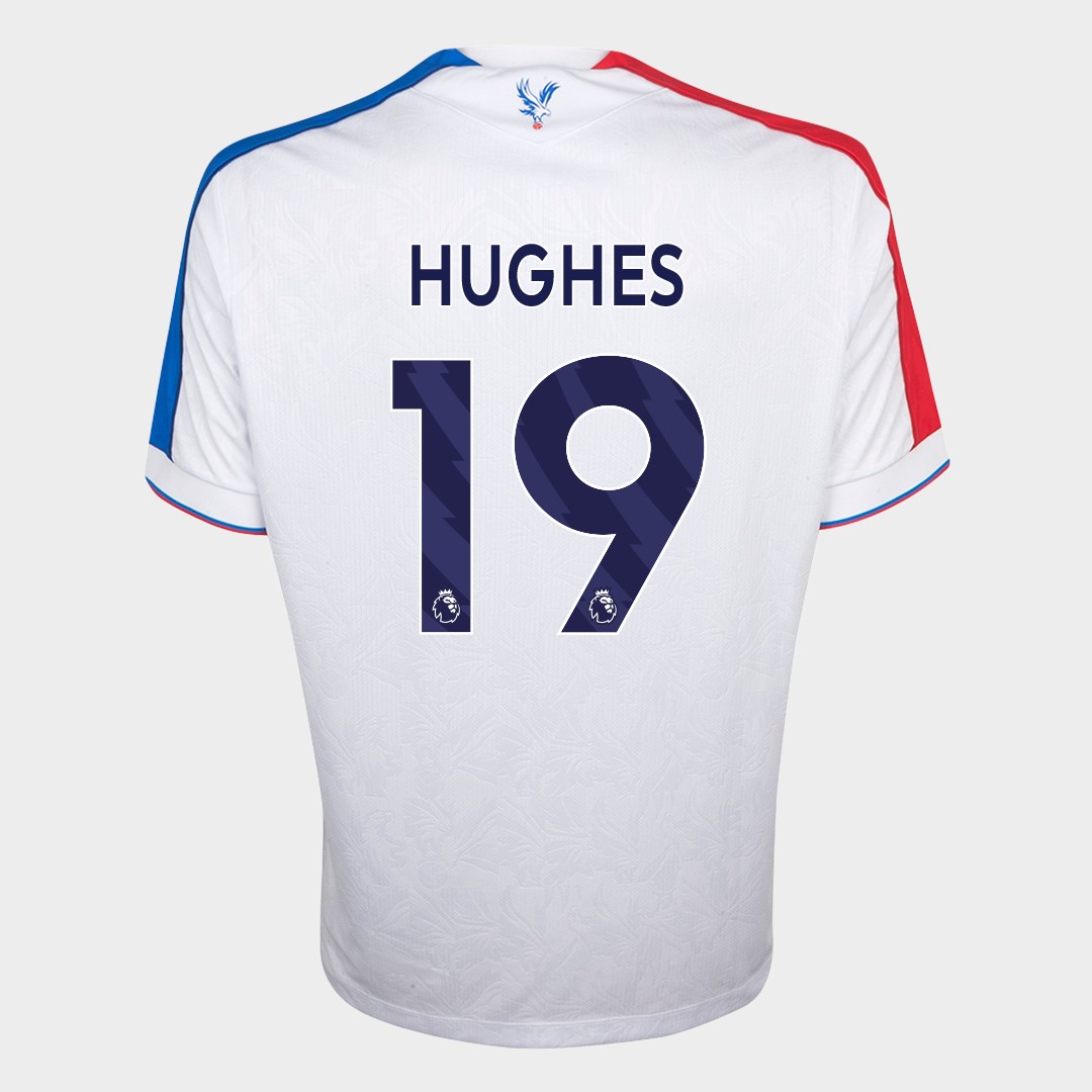 Will Hughes No.19 Crystal Palace v. Nottingham Forest (Away) match worn short-sleeved shirt, Premier League 2026, Macron, with crew-neck collar and printed badge, the reverse lettered HUGHES the right sleeve with Premier League logo