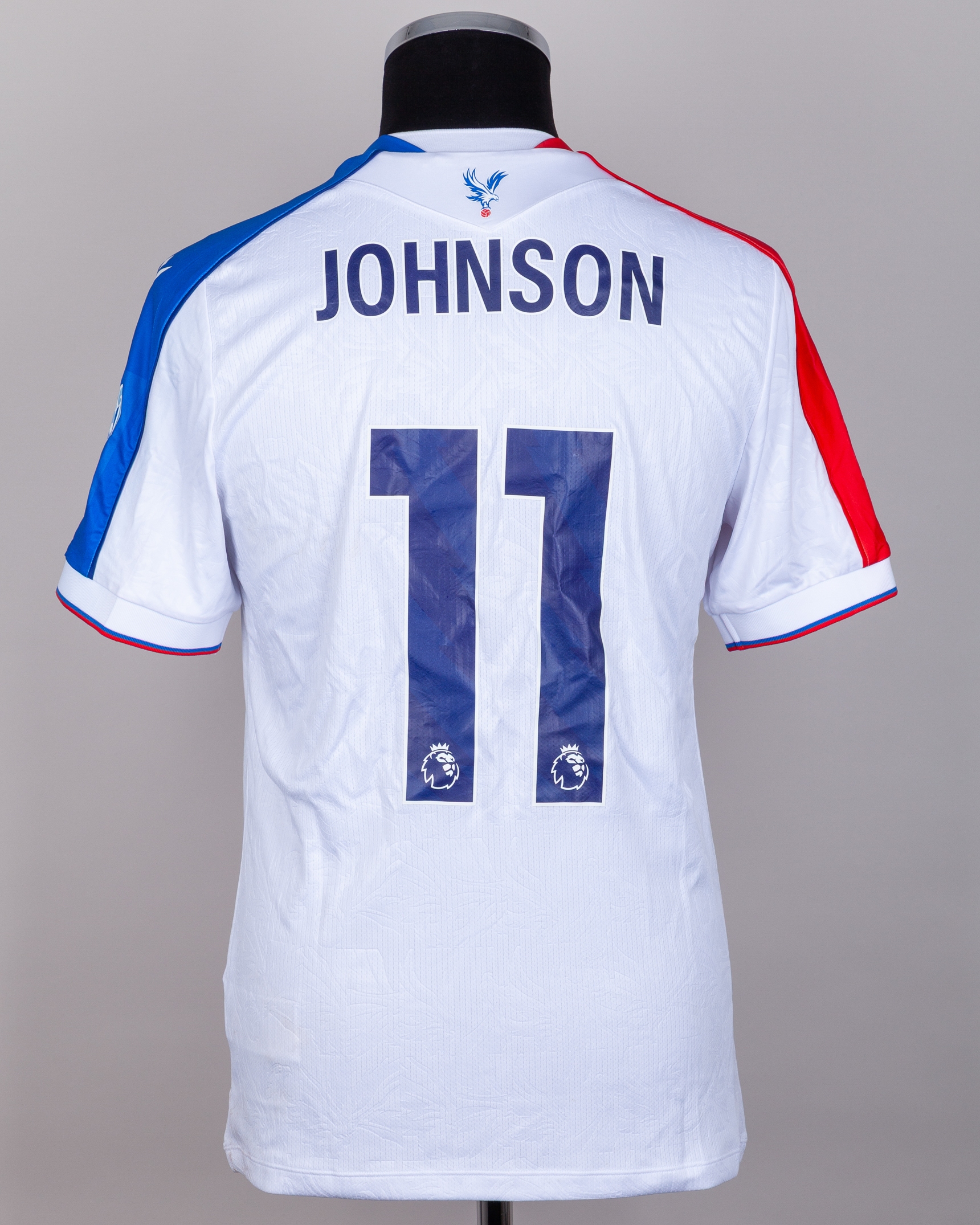 Brennan Johnson No.11 Crystal Palace v. Nottingham Forest (Away) match worn short-sleeved shirt, Premier League 2026, Macron, with crew-neck collar and printed badge, the reverse lettered JOHNSON, the right sleeve with Premier League logo