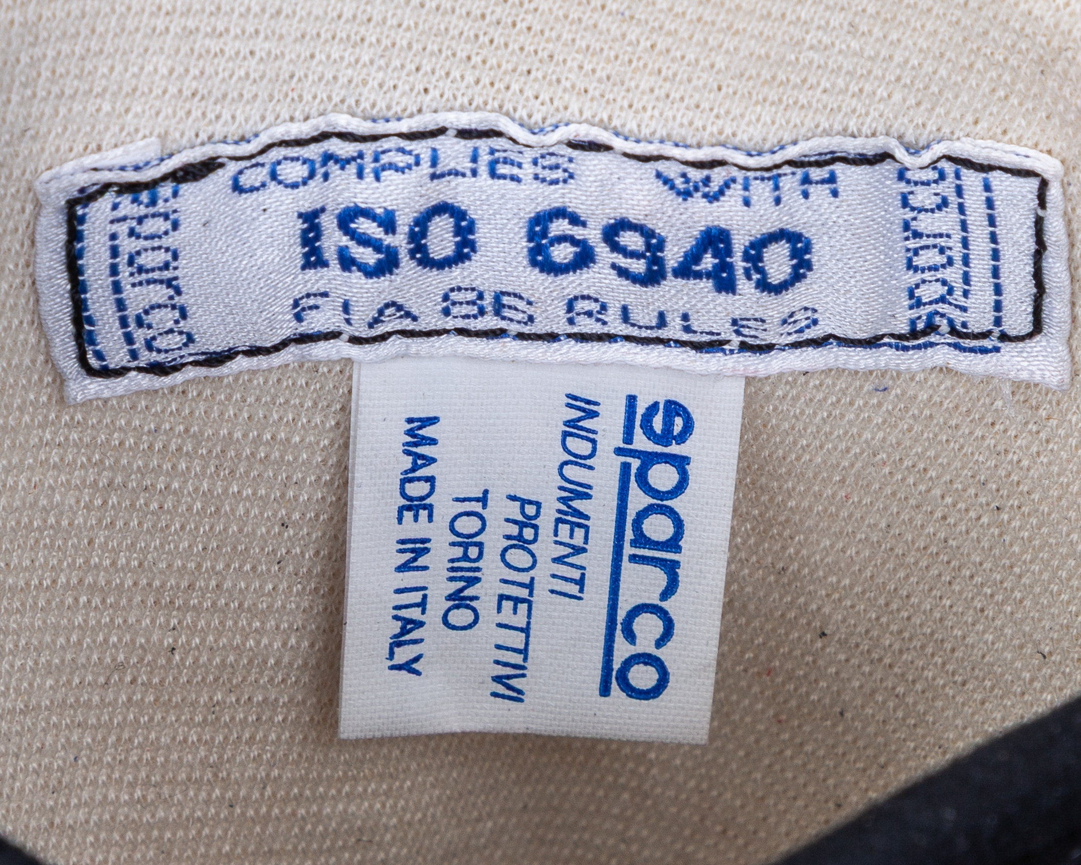 The Sparco label on each boot reads: Complies with IS0 6940 / FIA 86 Rules.
