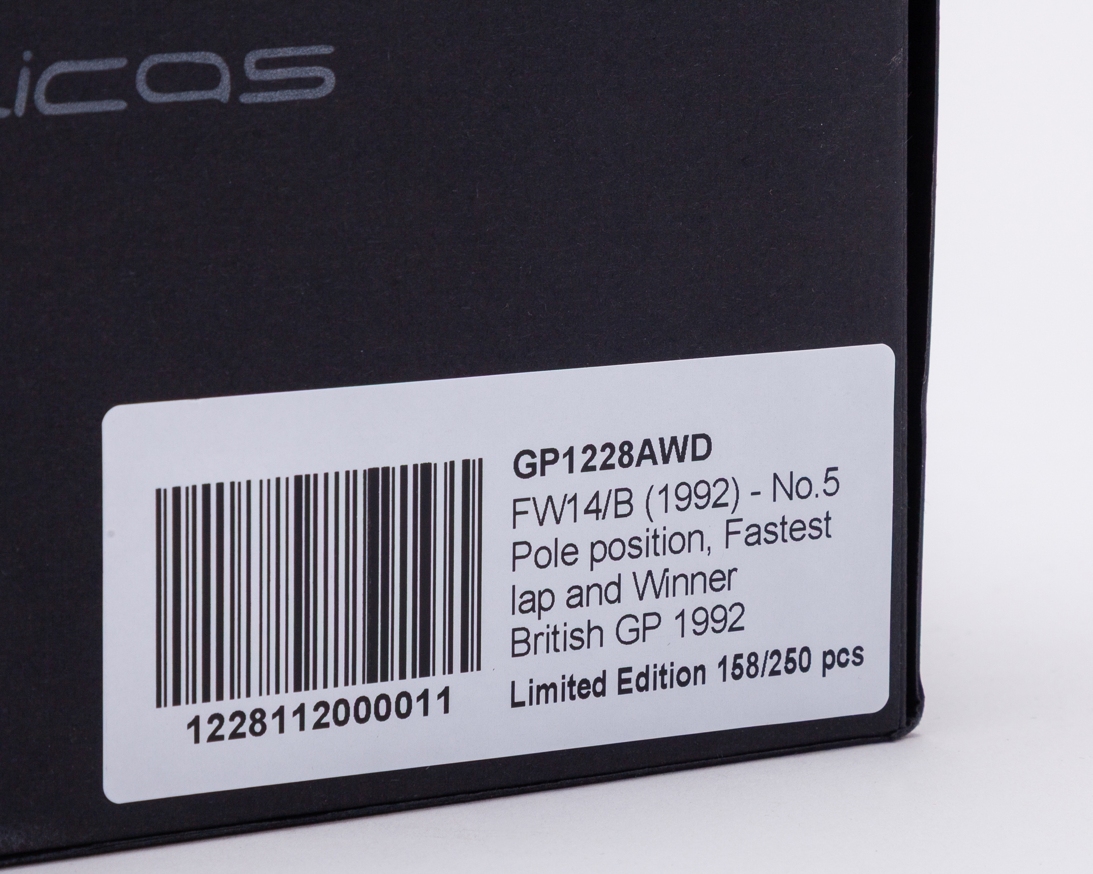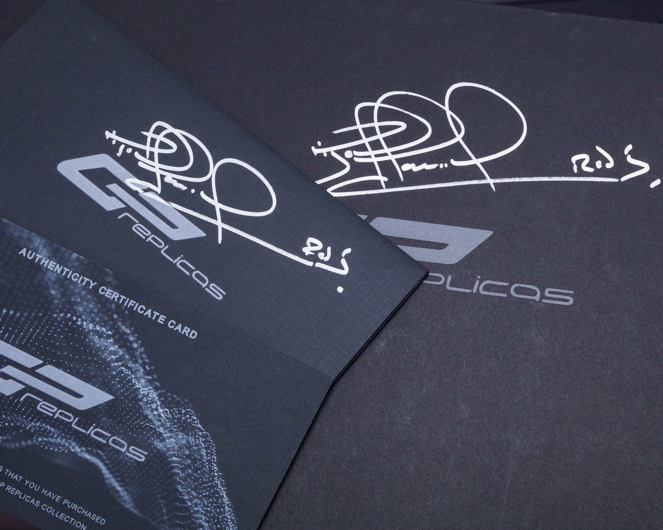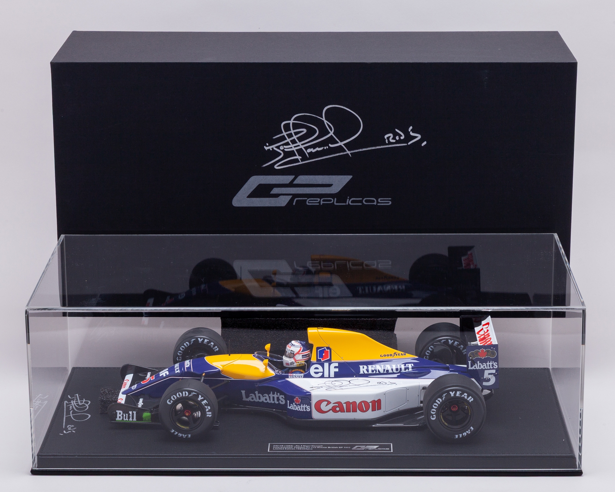 Nigel has personally signed the model car, the GP Replicas certificate, and the outer box.