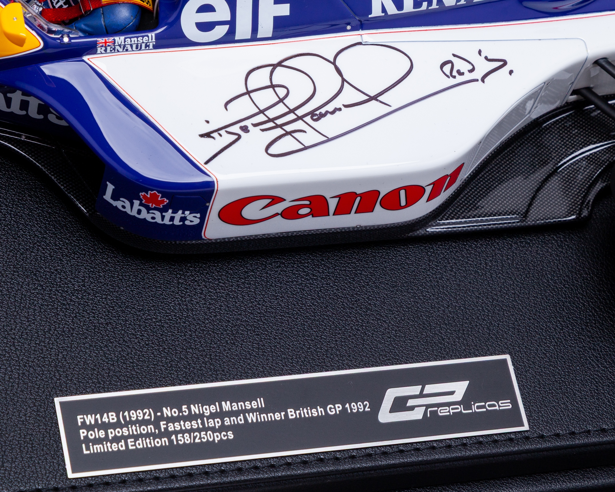 The model car represents Nigel's iconic Williams Renault FW14B from the 1992 British Grand Prix. Nigel claimed the race victory, pole position, and the fastest lap.