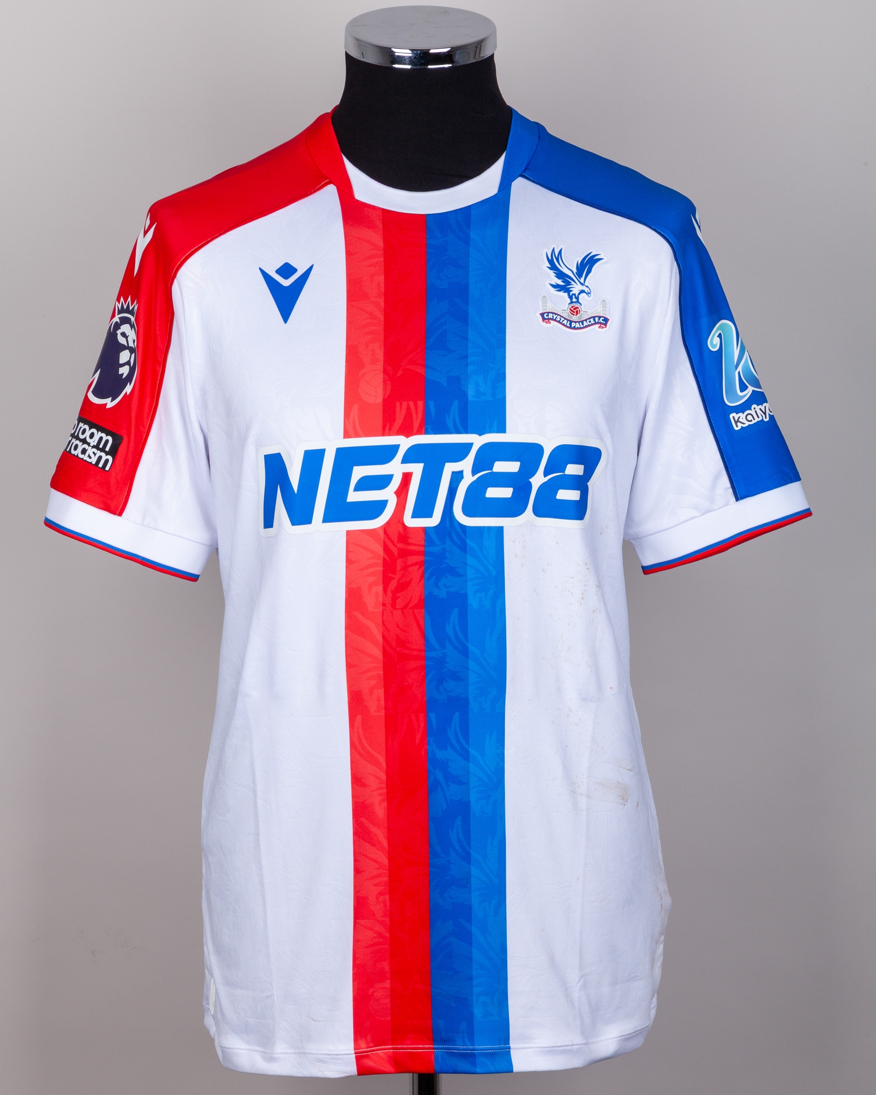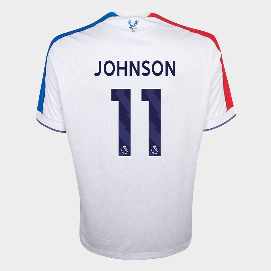 Brennan Johnson No.11 Crystal Palace v. Manchester United (Away) match-worn short-sleeved Premier League shirt 2026, Macron, with crew-neck collar and printed badge, the reverse lettered JOHNSON, the right sleeve with Premier League logo