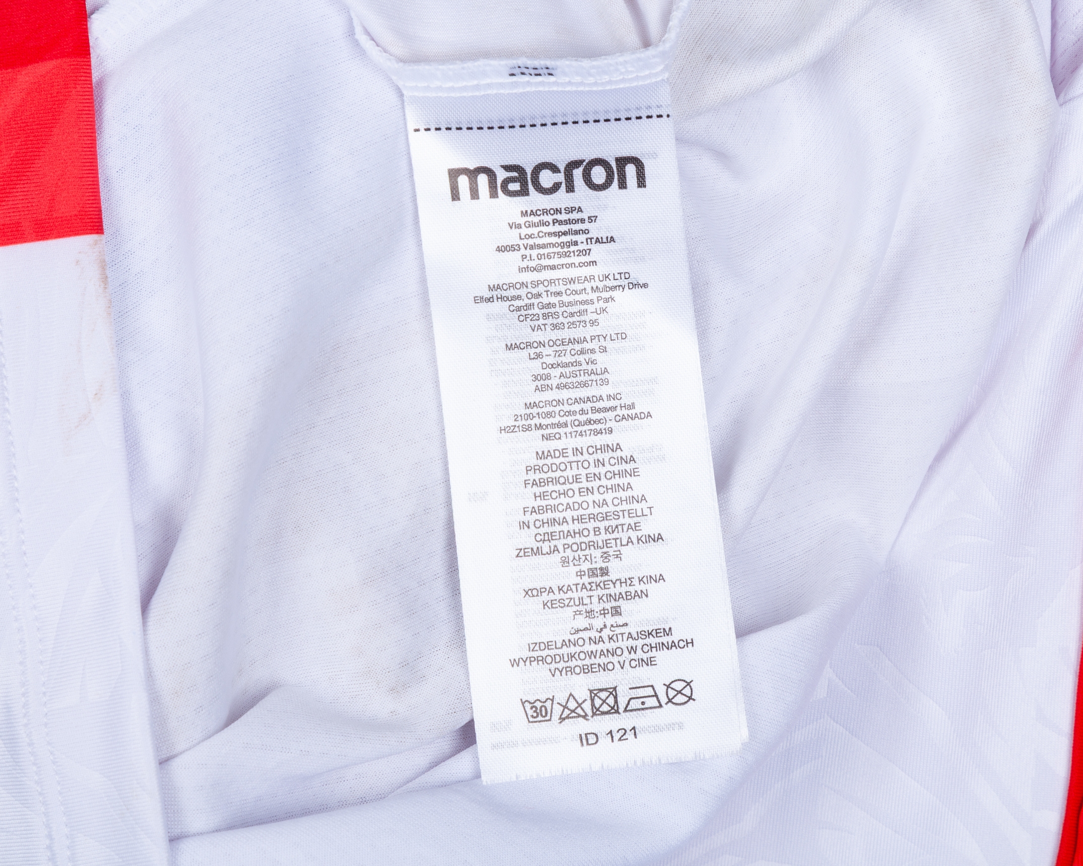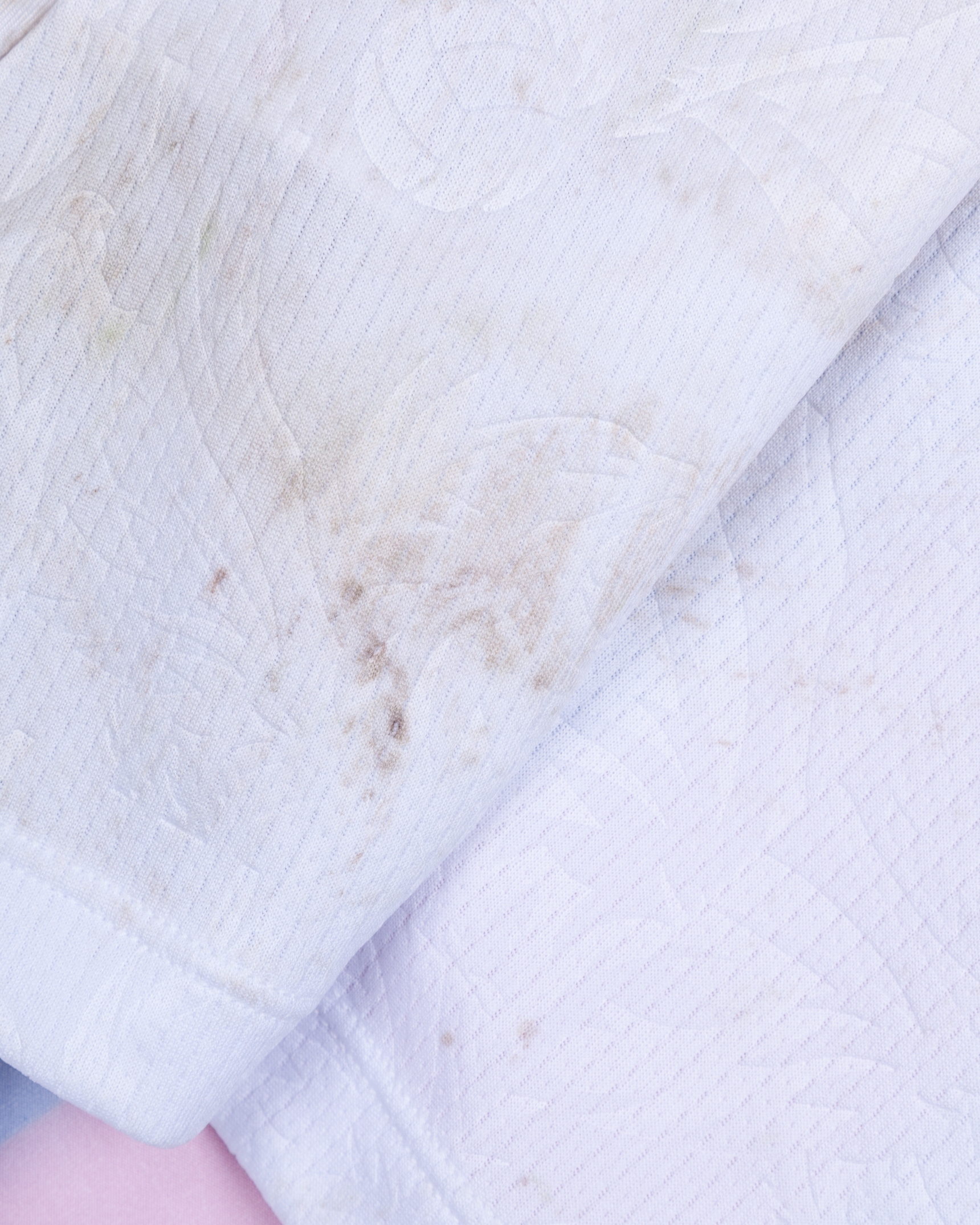 The shirt is match-worn and unwashed with some staining on rear of shirt