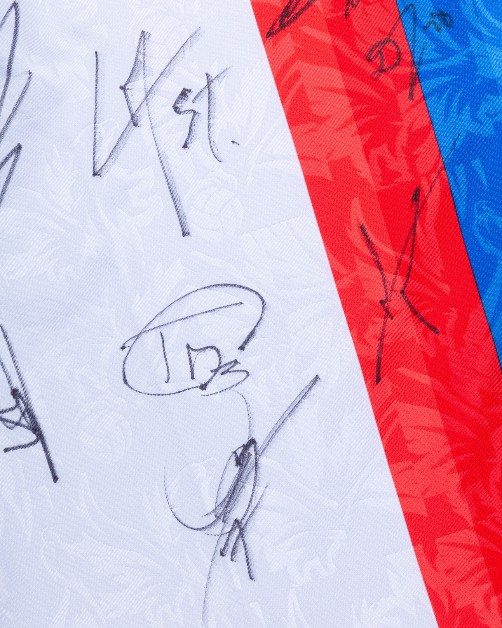 Crystal Palace v. Manchester United (Away) match issued, squad signed Premier League shirt 2026, Macron, with crew-neck collar and printed badge, the right sleeve with Premier League logo
