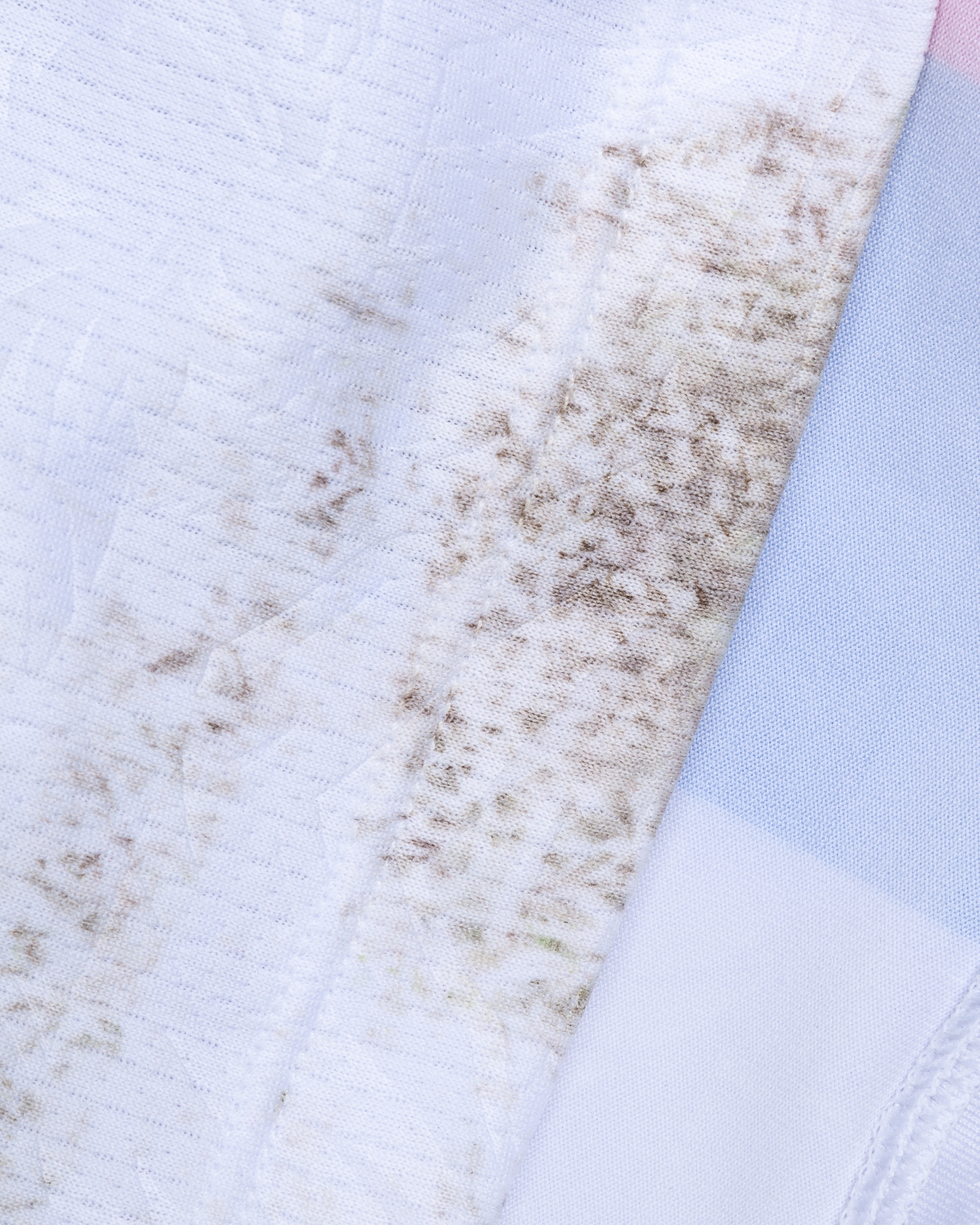The shirt is match-worn and unwashed with staining on rear of shirt