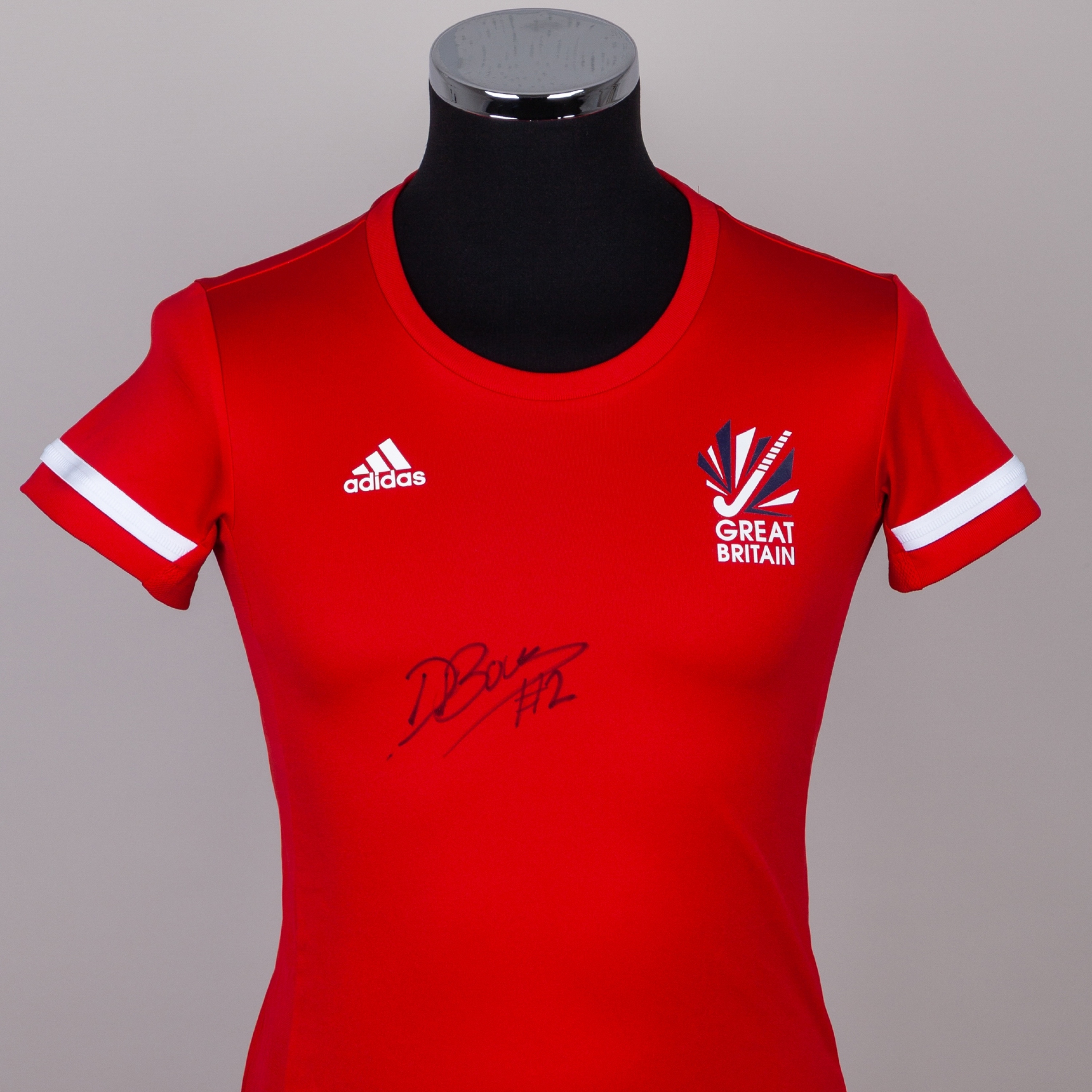 A fantastic, authentic GB Hockey squad-issued training t-shirt, kindly donated by Darcy Bourne, who has personally signed and inscribed it with her GB squad number 2.