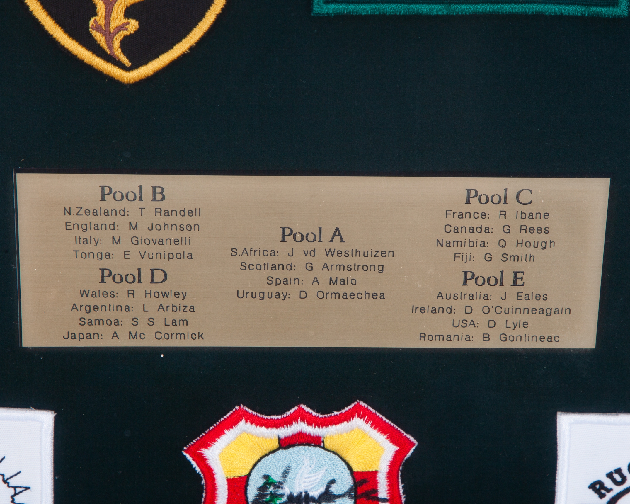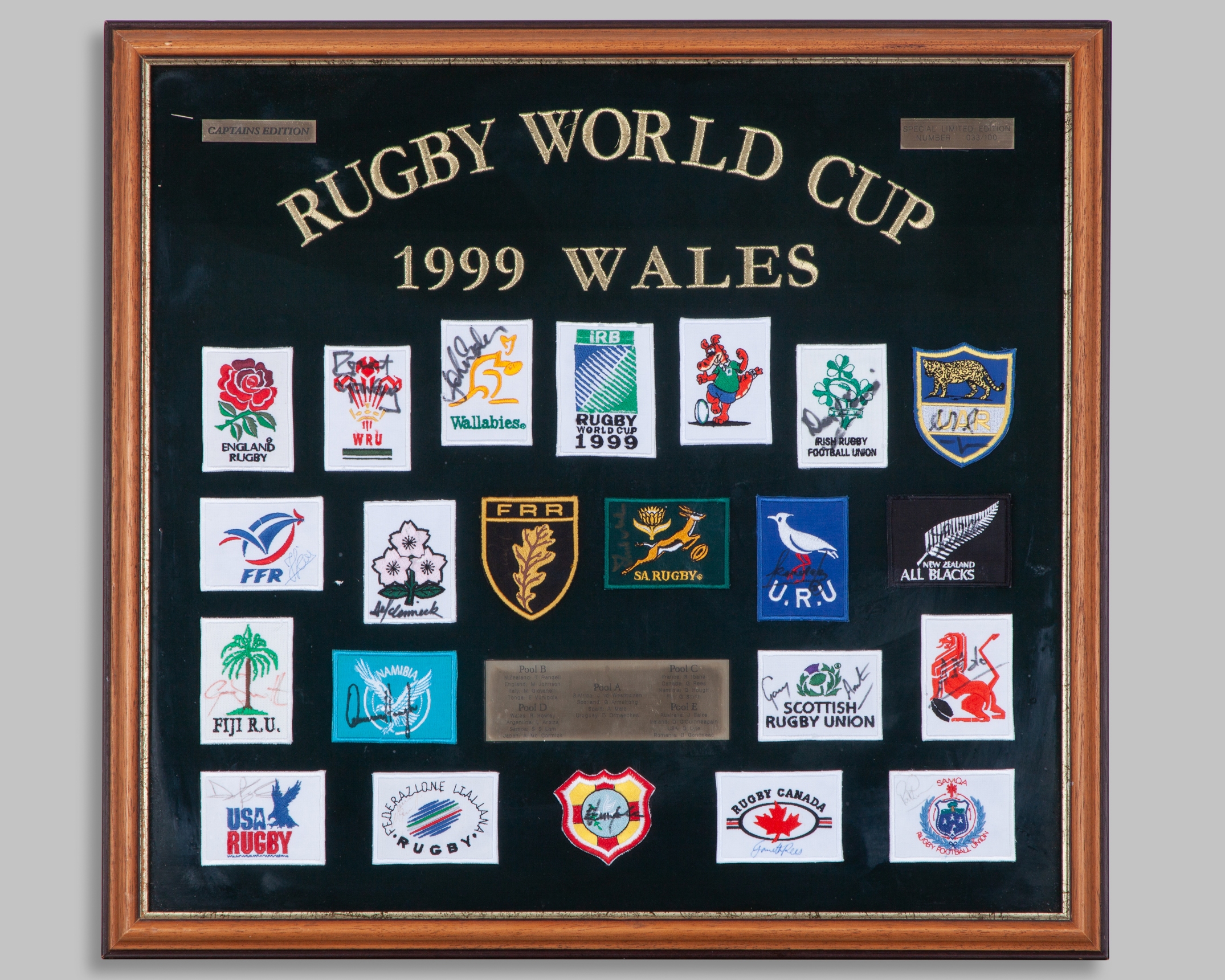 Rugby World Cup 1999 limited edition autographed nations embroidered cloth badges display