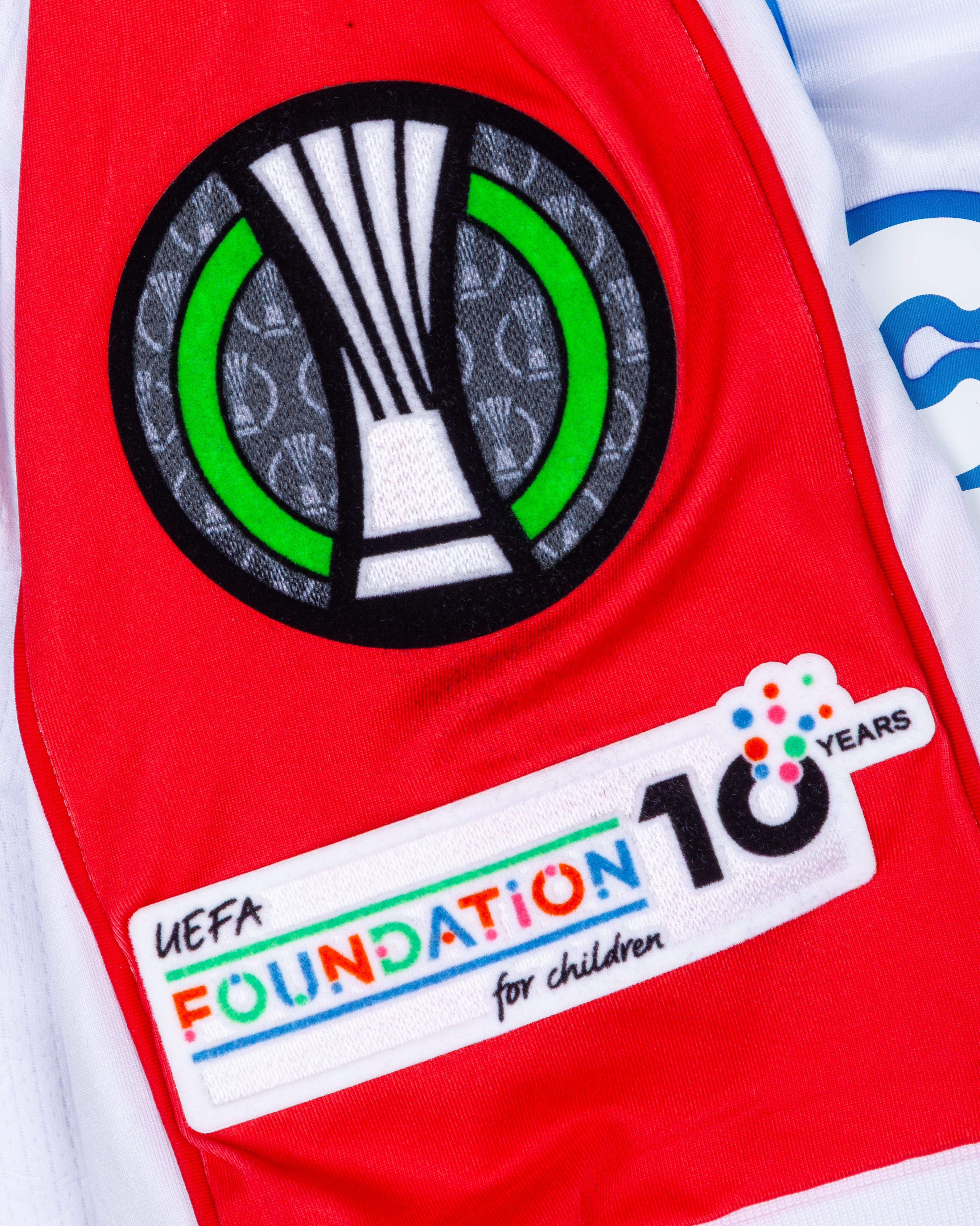 Chris Richards No.26 AEK Larnaca v. Crystal Palace match worn short-sleeved shirt, UEFA Conference League - Last 16, 2026, Macron, with crew-neck collar and printed badge, the reverse lettered RICHARDS , the right sleeve with UEFA flash