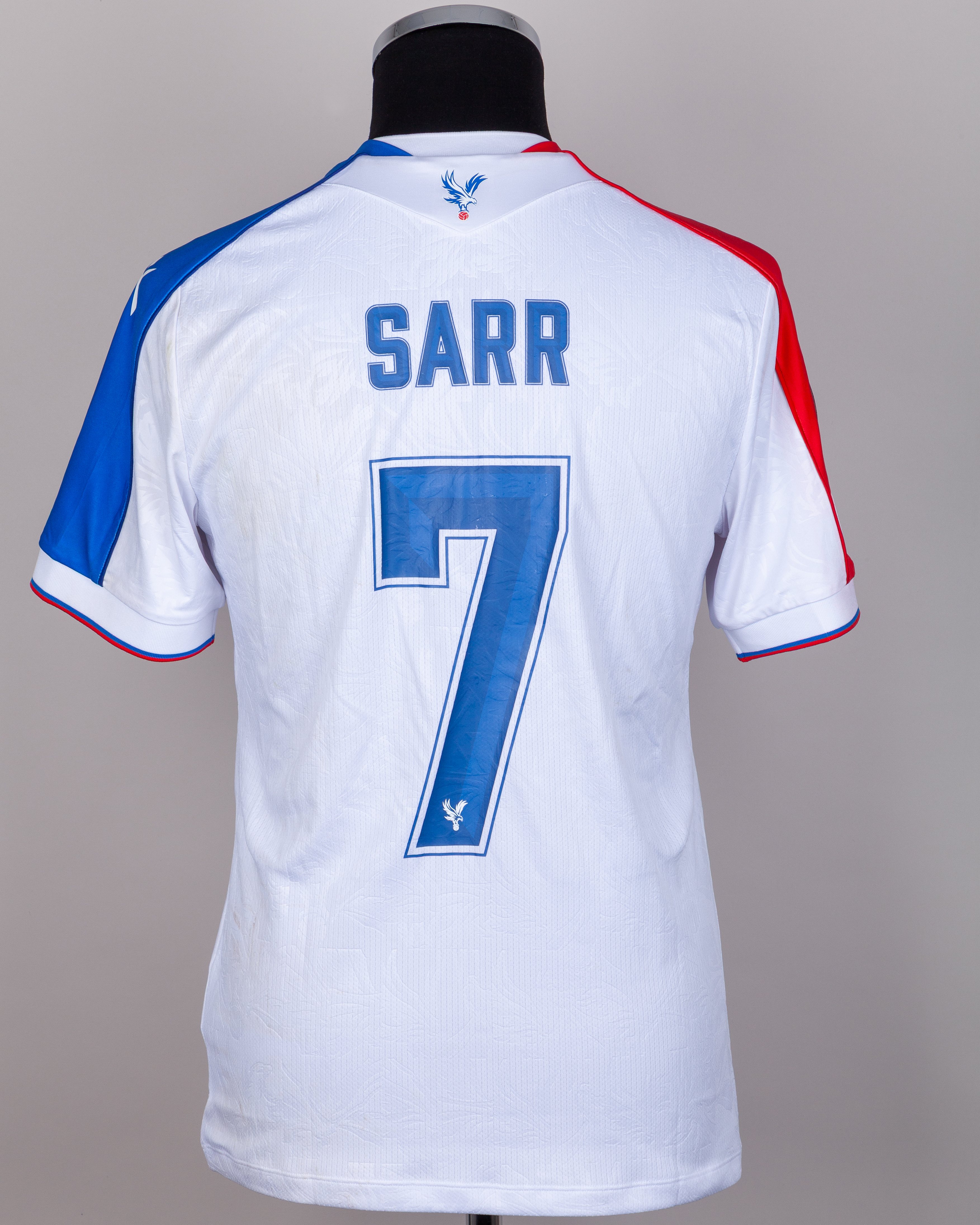 Ismaïla Sarr No.7 AEK Larnaca v. Crystal Palace match worn short-sleeved shirt, UEFA Conference League - Last 16, 2026, Macron, with crew-neck collar and printed badge, the reverse lettered SARR , the right sleeve with UEFA flash