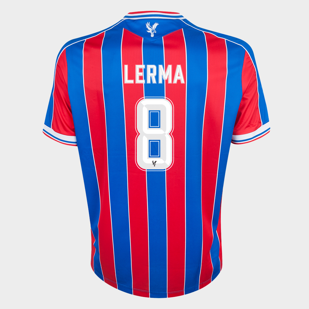 Jefferson Lerma No.8 Crystal Palace v. Fiorentina match worn shirt, UEFA Conference League - Quarter Final 2026, Macron, with crew-neck collar and printed badge, the reverse lettered LERMA, the right sleeve with UEFA flash