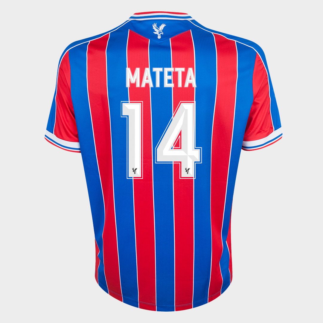 Jean-Philippe Mateta No.14 Crystal Palace v. Fiorentina match worn shirt, UEFA Conference League - Quarter Final 2026, Macron, with crew-neck collar and printed badge, the reverse lettered MATETA, the right sleeve with UEFA flash