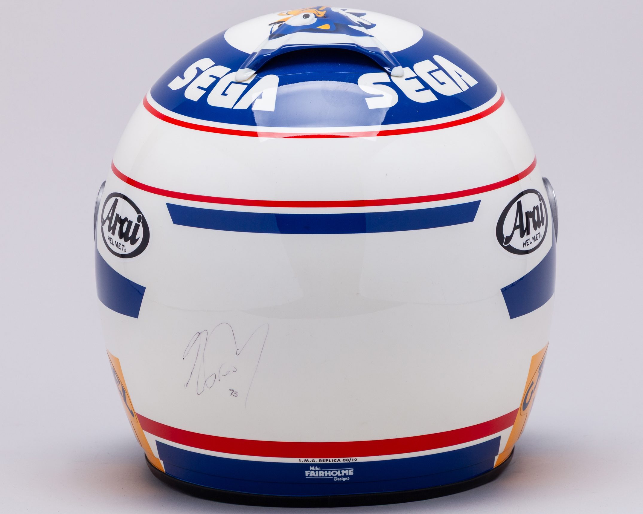 Limited edition number 8 / 12, with I.M.G. Replica and Mike Fairholme Designs on the back of the helmet.