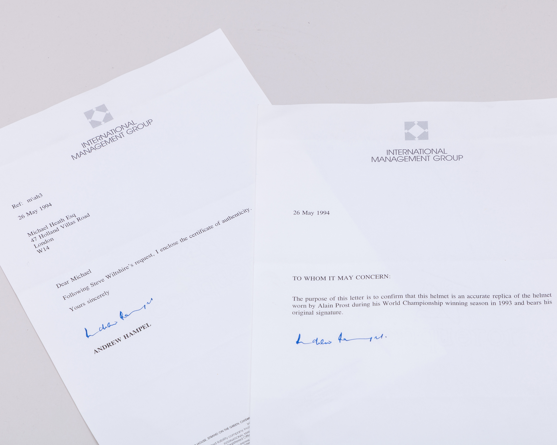 The helmet was previously purchased from a Sotheby's auction on 24th September 1997. Includes an Arai helmet bag and box.