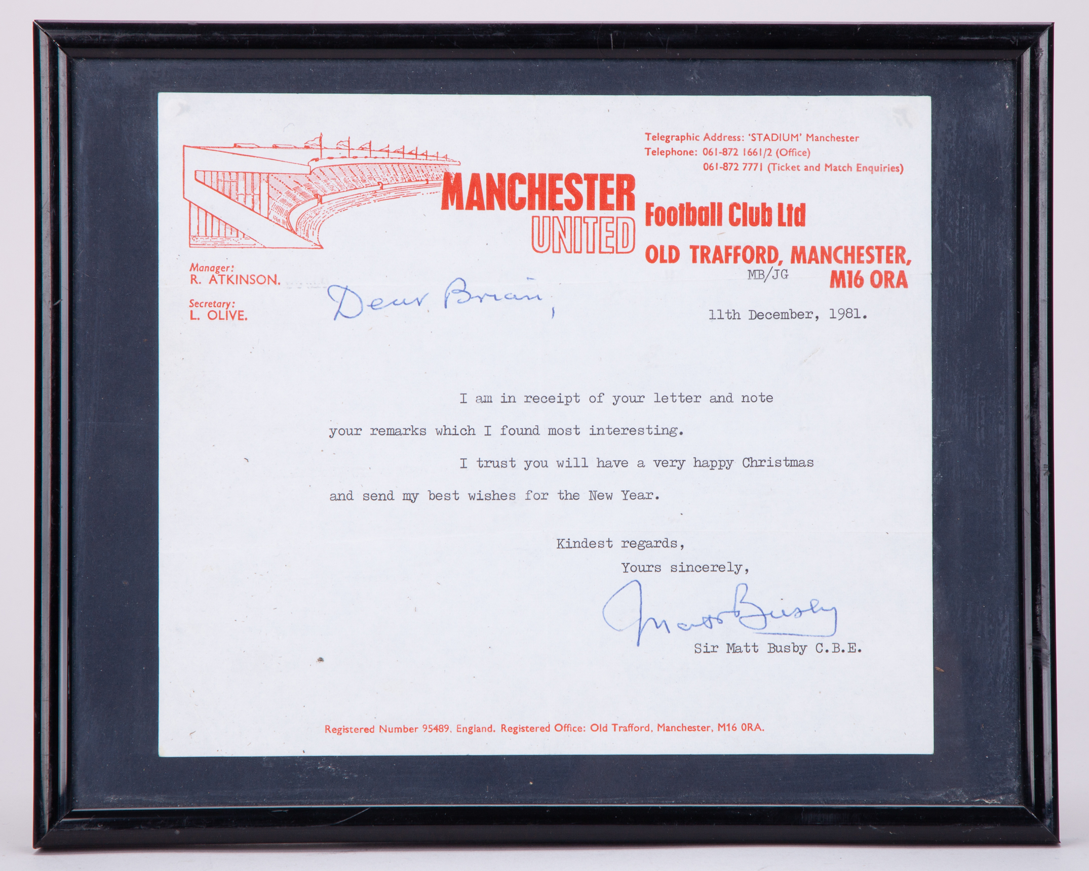 Matt Busby signed and typed Manchester United headed letter, 11th December 1981