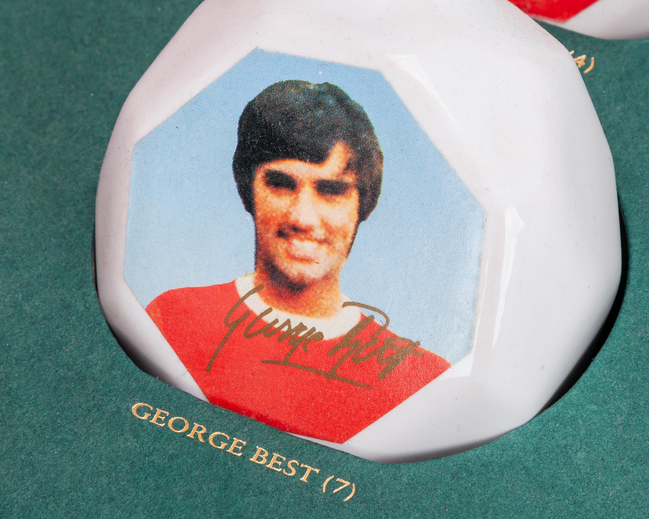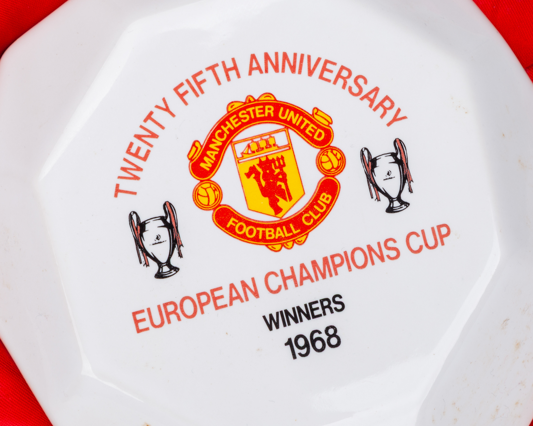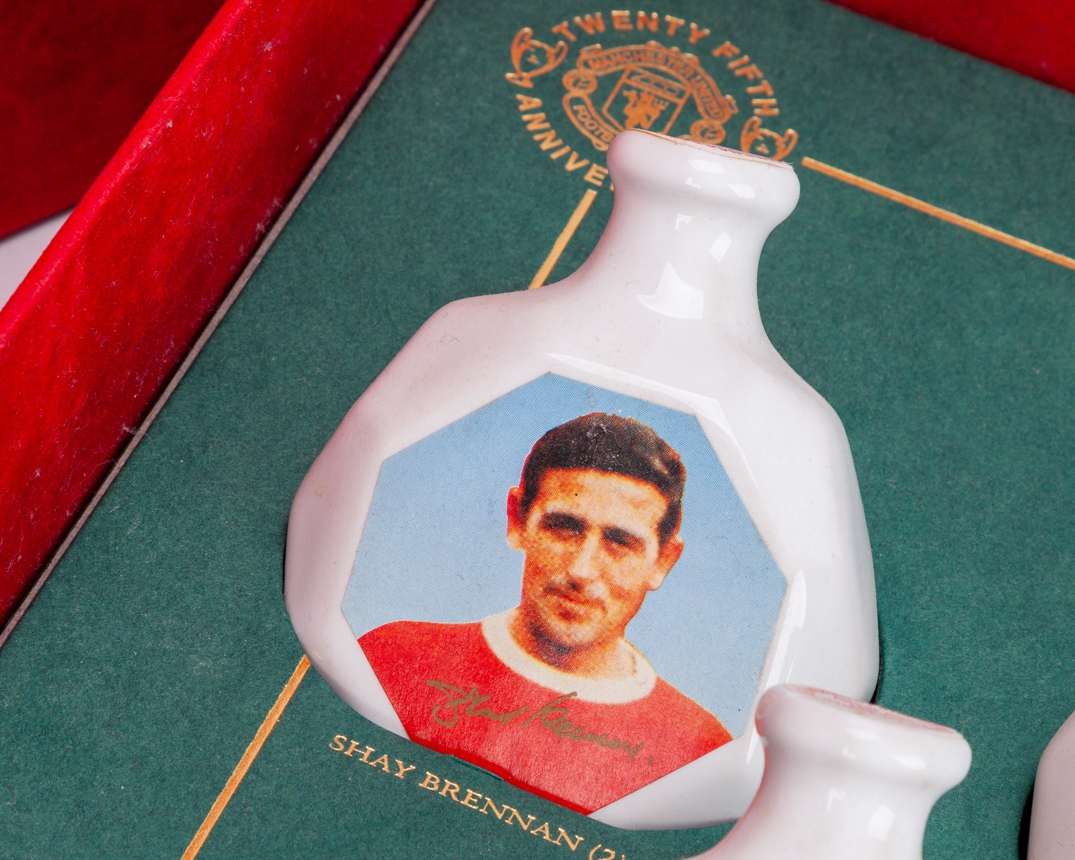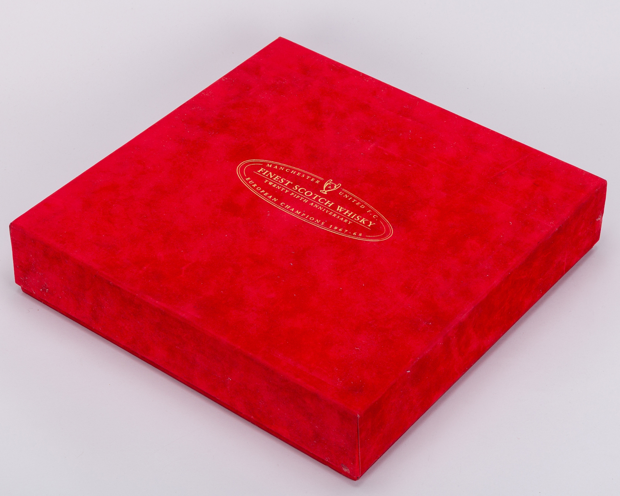 Manchester United case set of whiskey miniatures, to commemorate the 25th anniversary of winning the 1968 European Cup in original case, all with liquid present apart from seemingly Brian Kidd, case with minor marks and dirty, the similar whiskery decanter, full, No.053 of limited edition