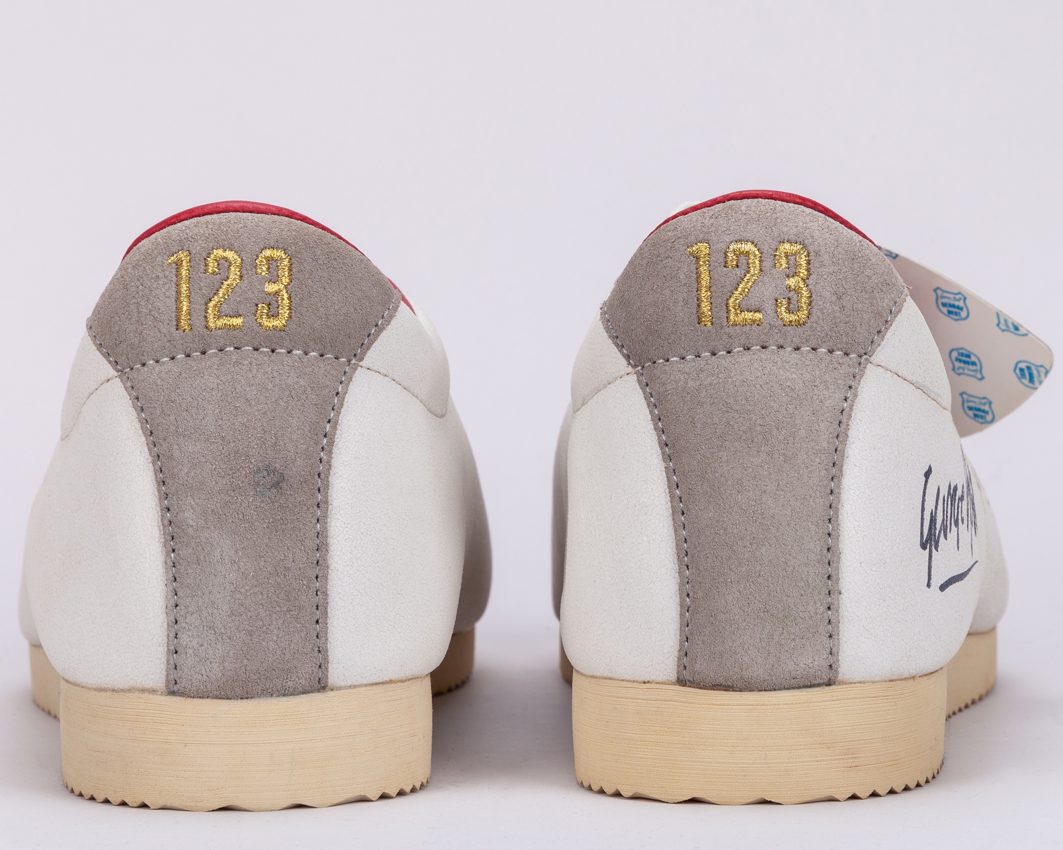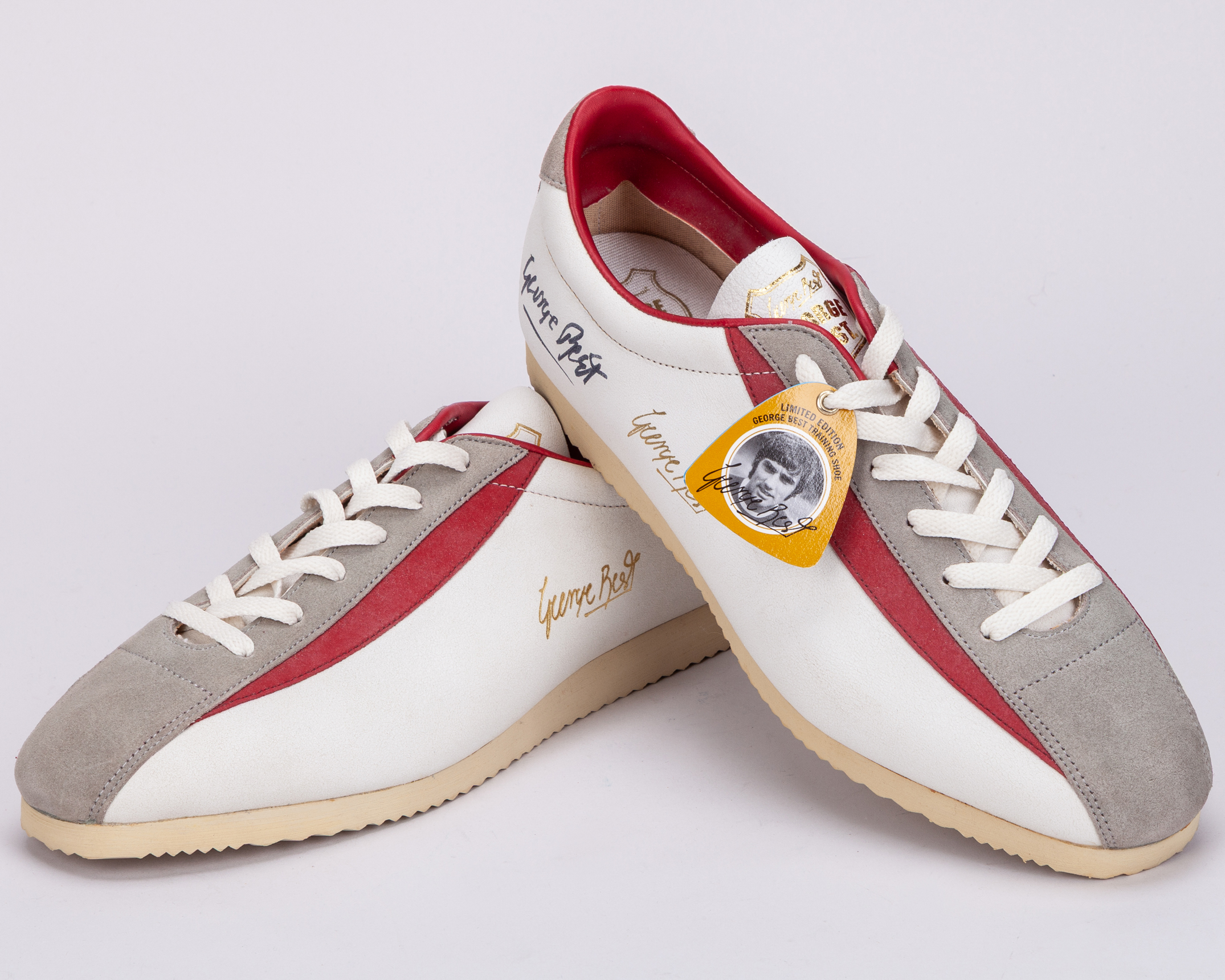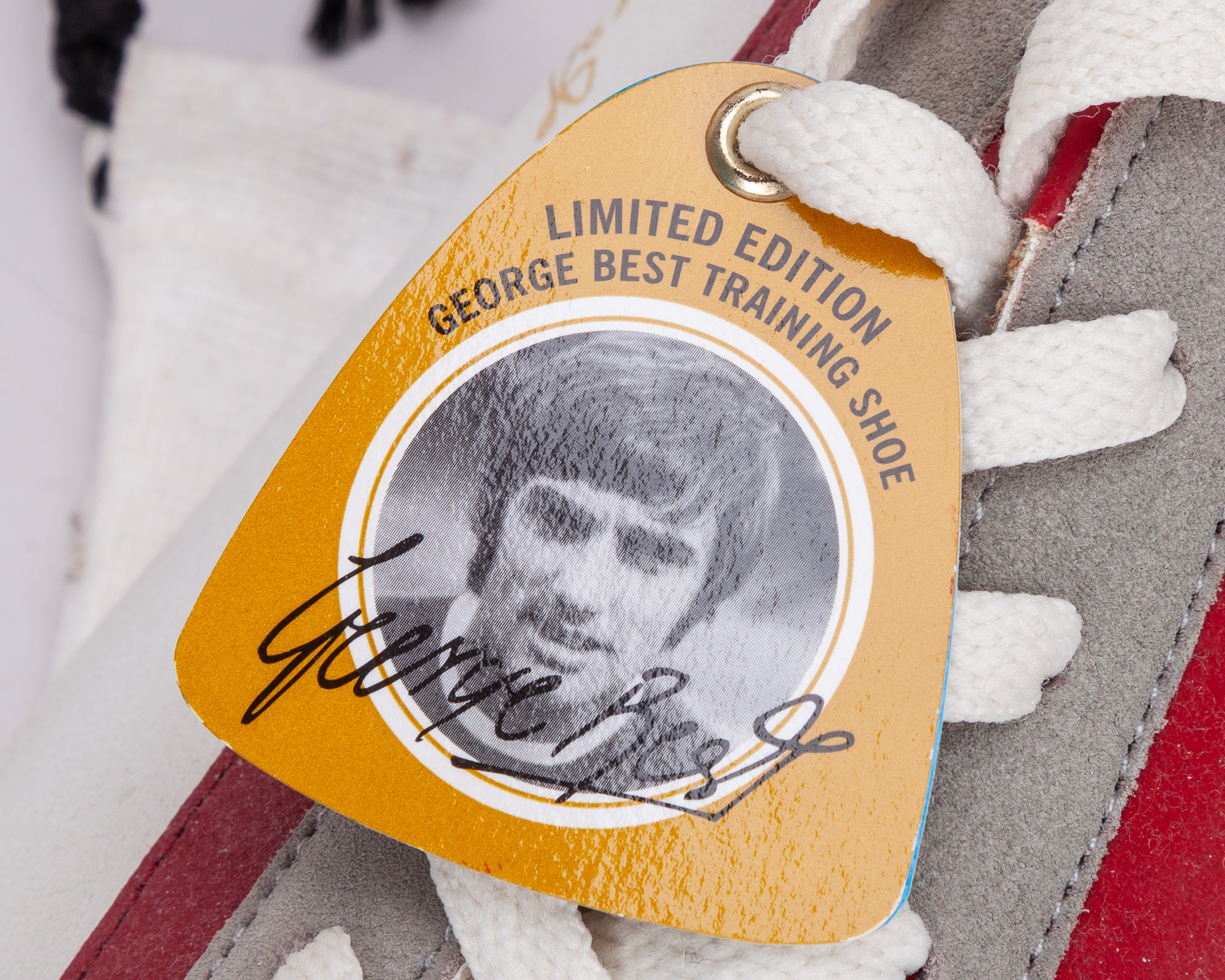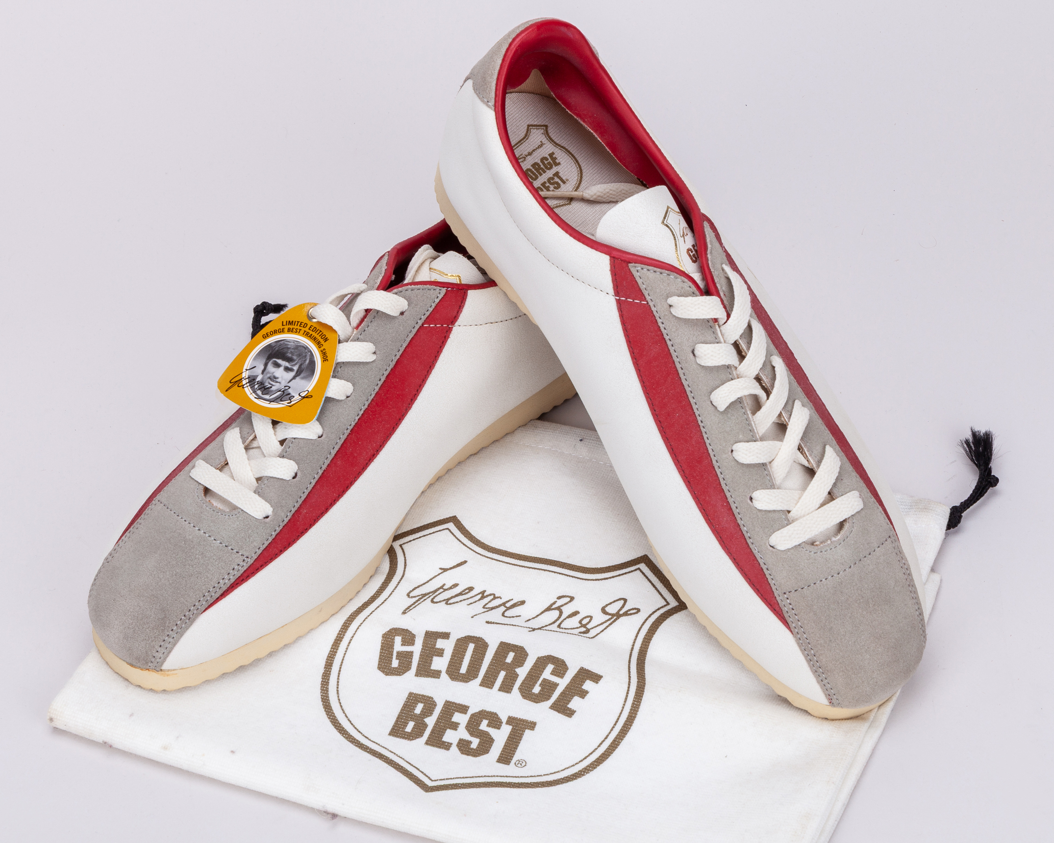 George Best autographed white, grey and red Ben Sherman George Best trainers