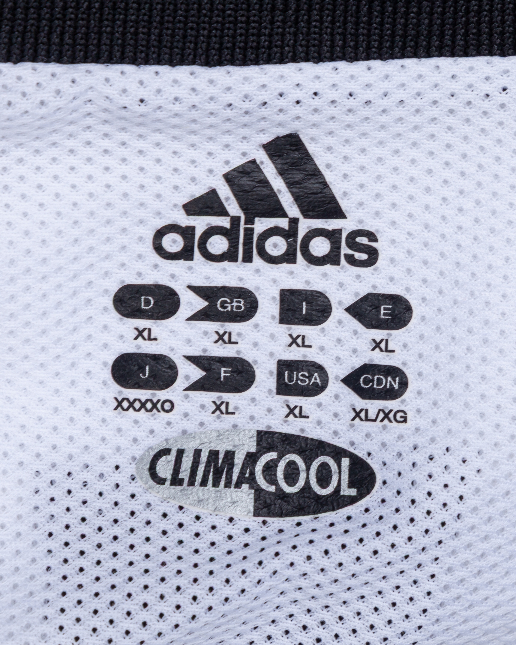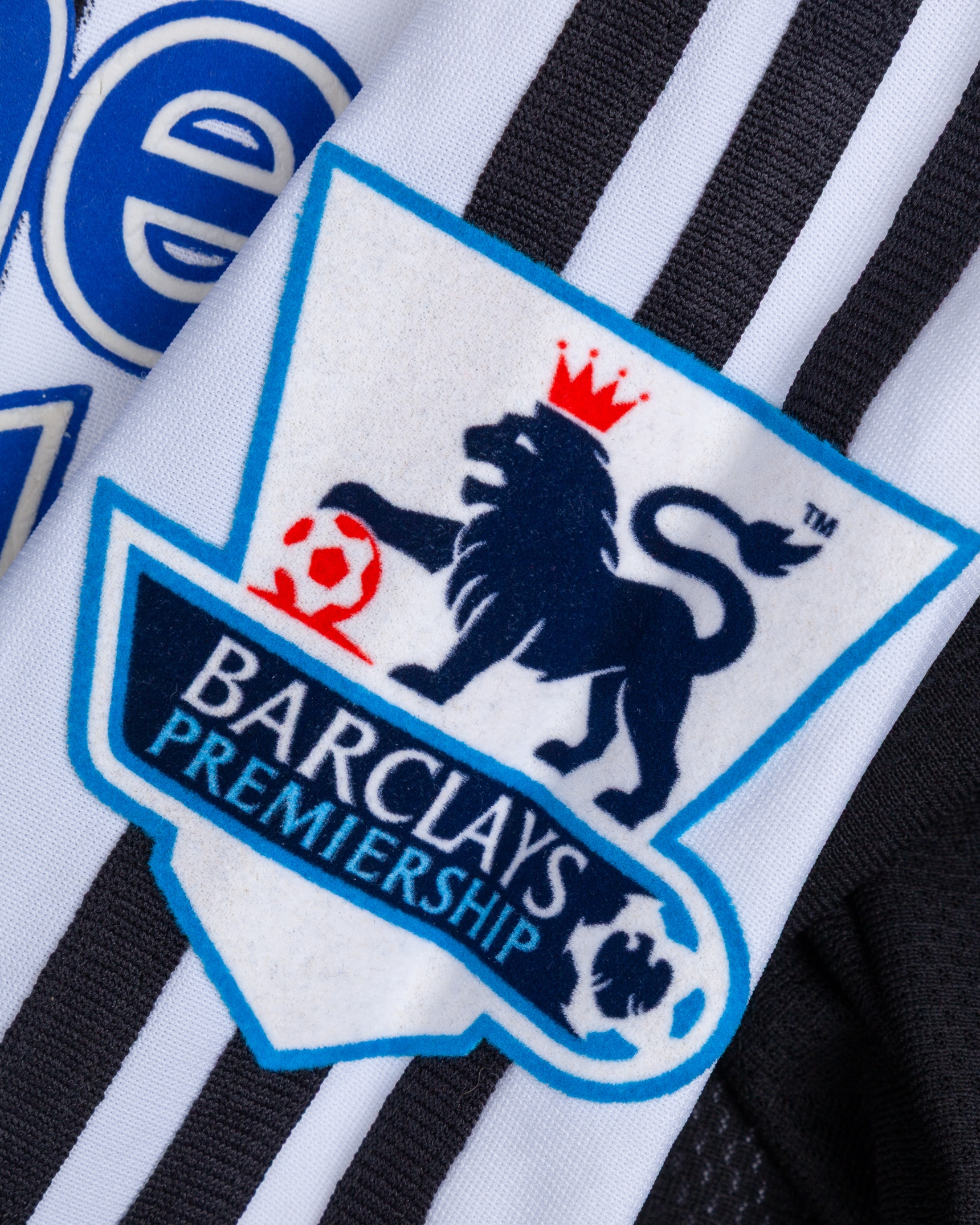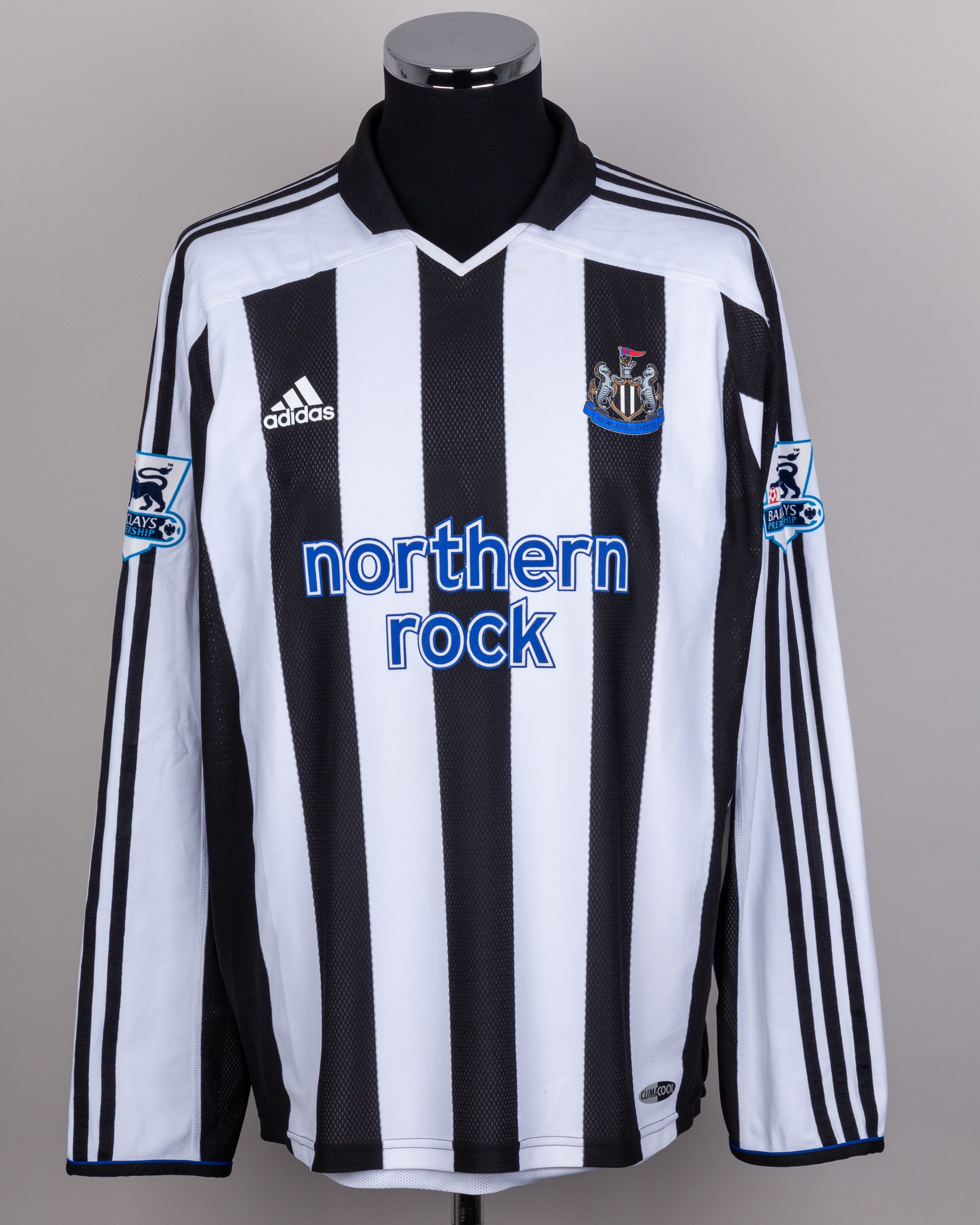 Shola Ameobi black and white No.23 Newcastle United v. Manchester United long-sleeved shirt, 2003-05, Adidas, XL, with v-neck collar and printed badge, the reverse lettered AMEOBI, the sleeves with Barclays Premiership flashes, with COA from Cult Kits and signed letter from Tony Heywood