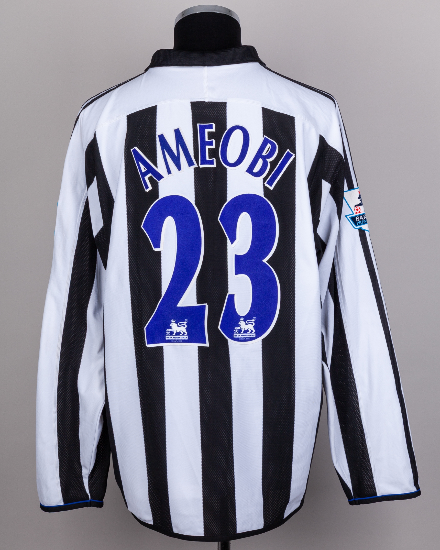 Shola Ameobi black and white No.23 Newcastle United v. Manchester United shirt, 2003-05