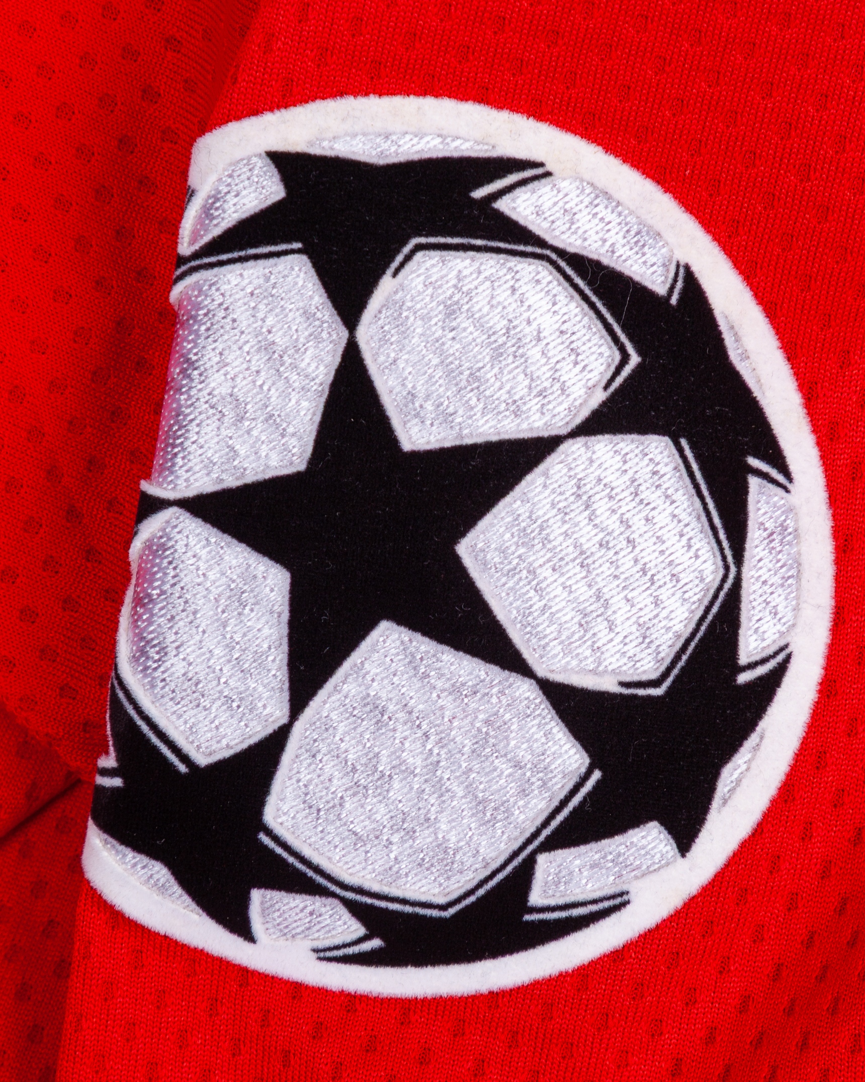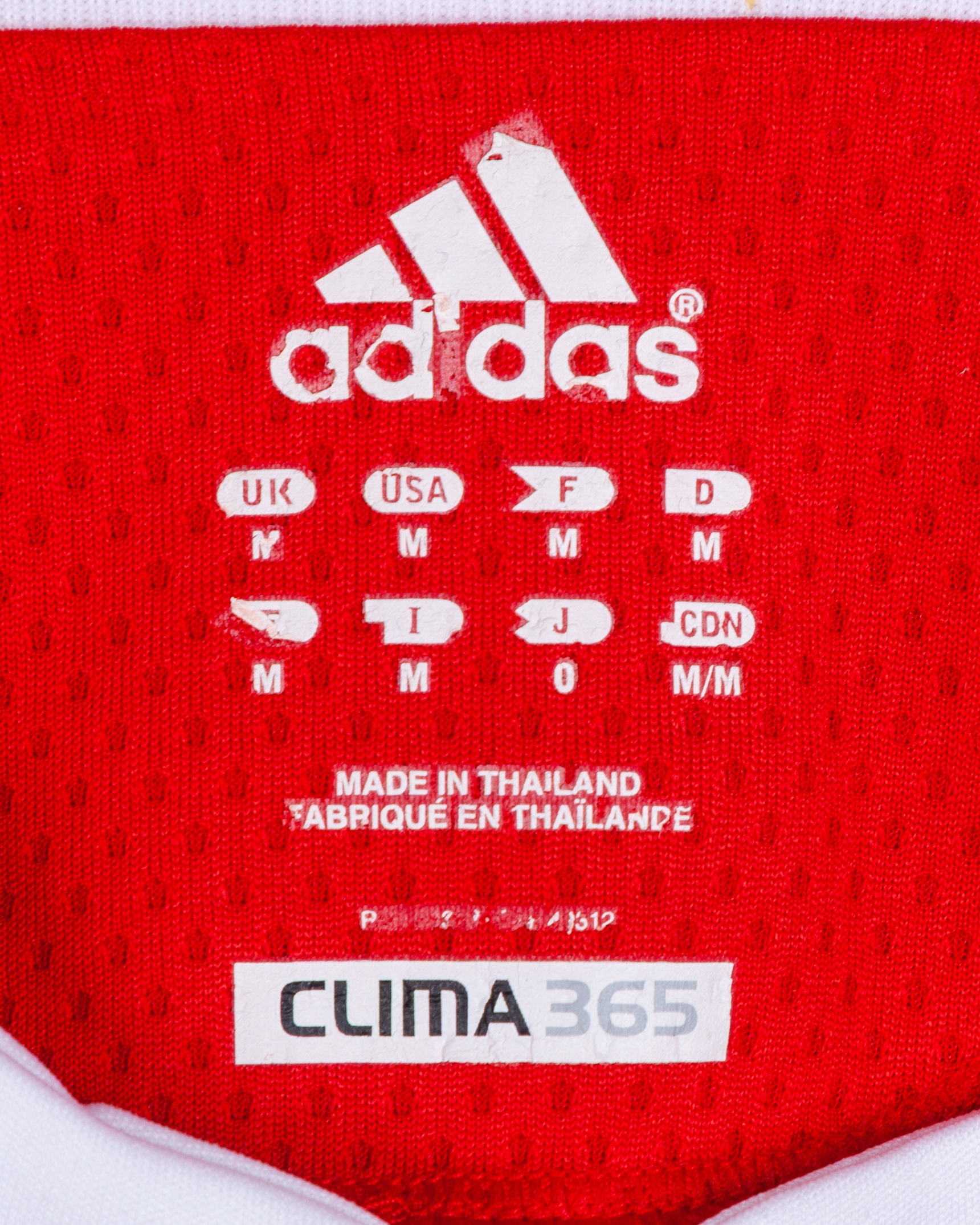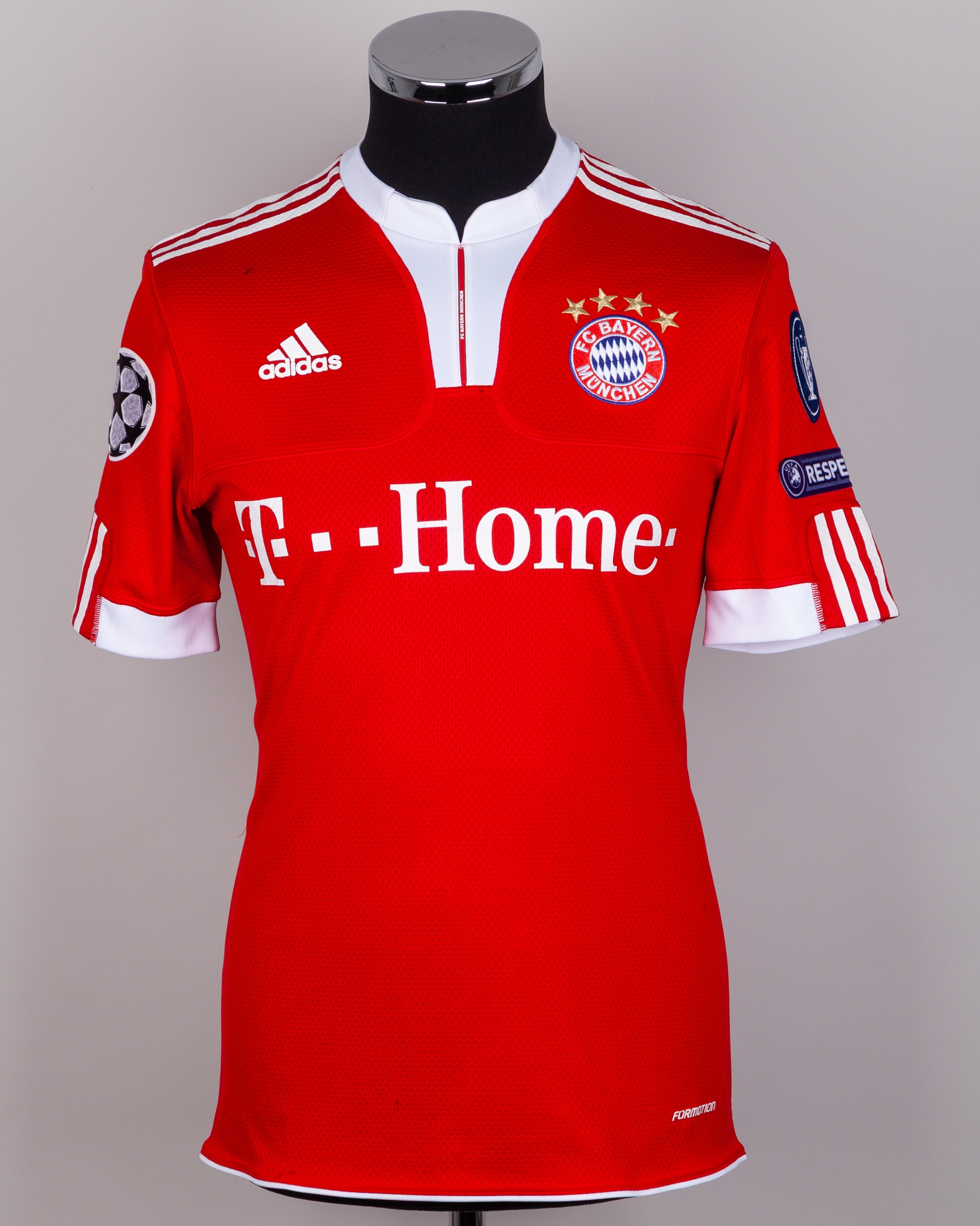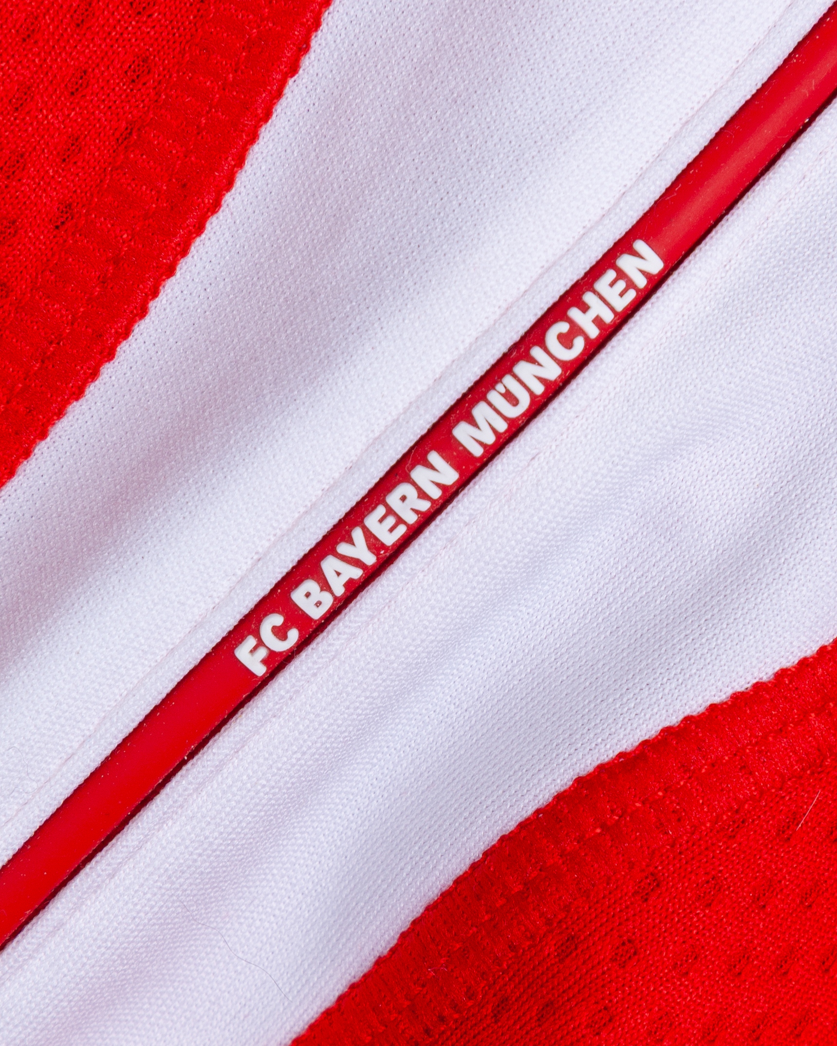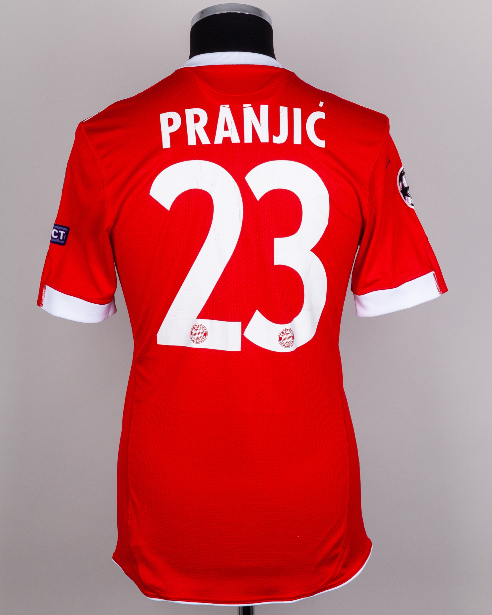 Danijel Pranjic red and white No.23 Bayern Munich v. Manchester United match issued short-sleeved shirt, 2010, Adidas, M, with crew-neck collar and embroidered cloth badge inscribed FC BAYERN MUNCHEN, the reverse lettered PRANJIC, the right sleeve with Champions League flash, the other with European Cup 4 and UEFA Respect flashes, with COA from Cult Kits and signed letter from Tony Heywood.
