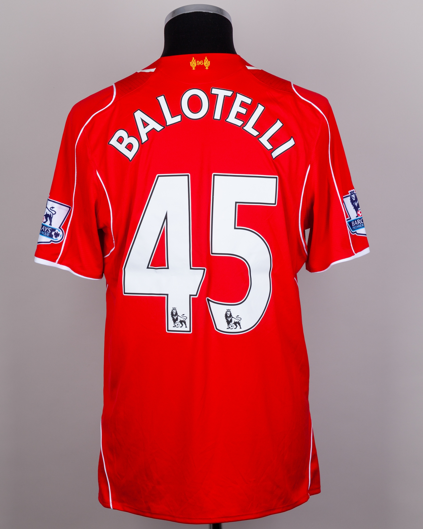 Mario Balotelli red No.45 Liverpool v. Manchester United match worn short-sleeved shirt, 2015