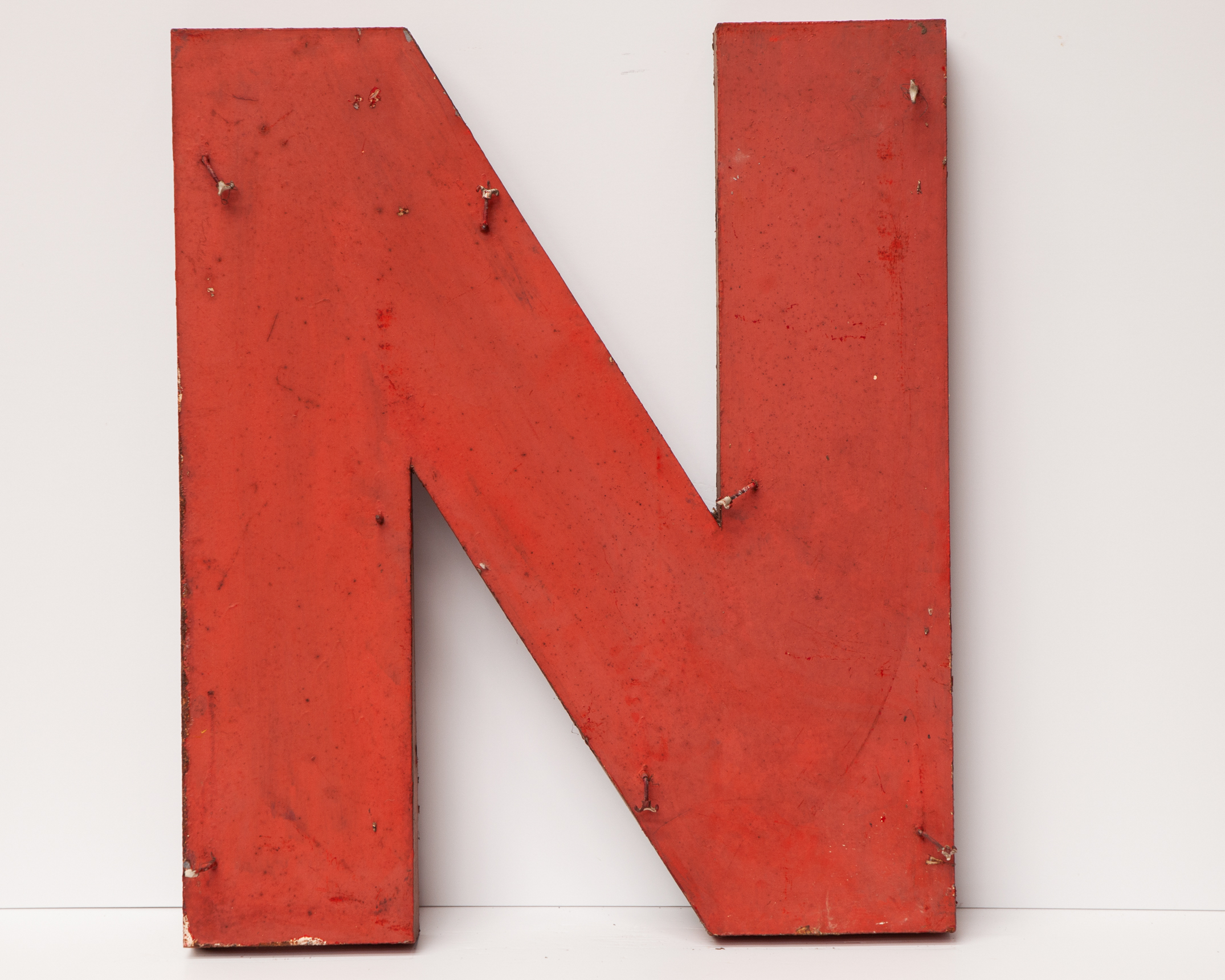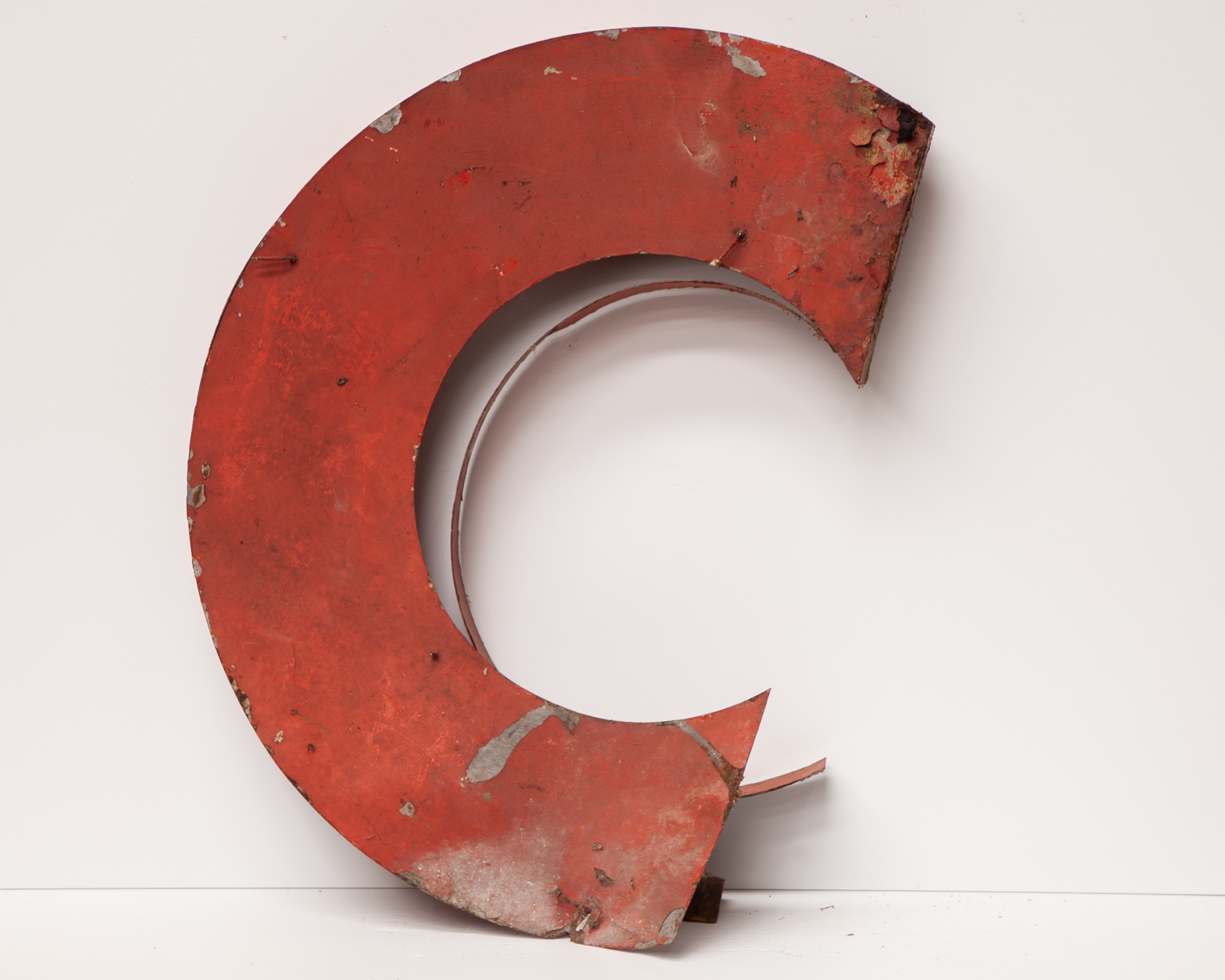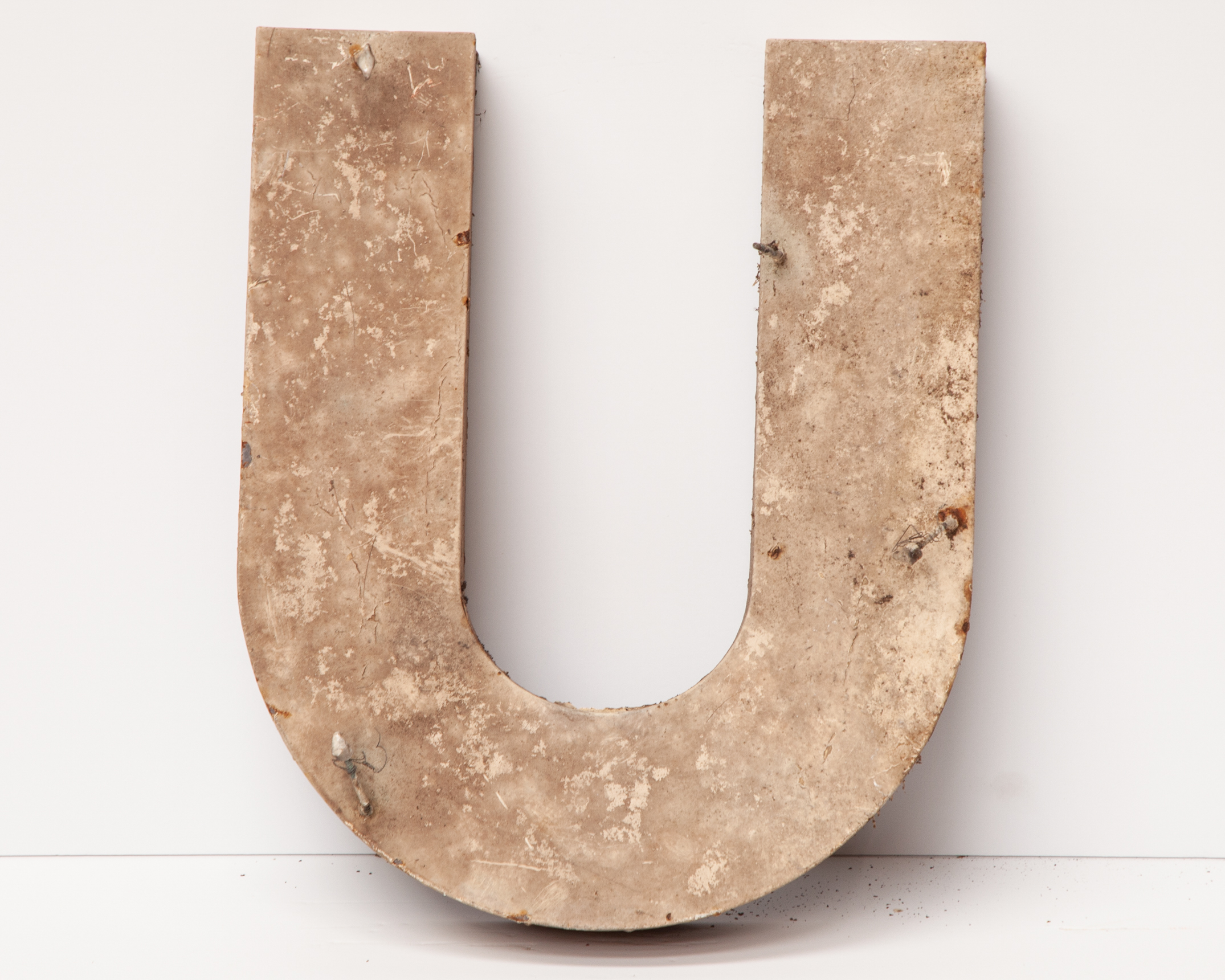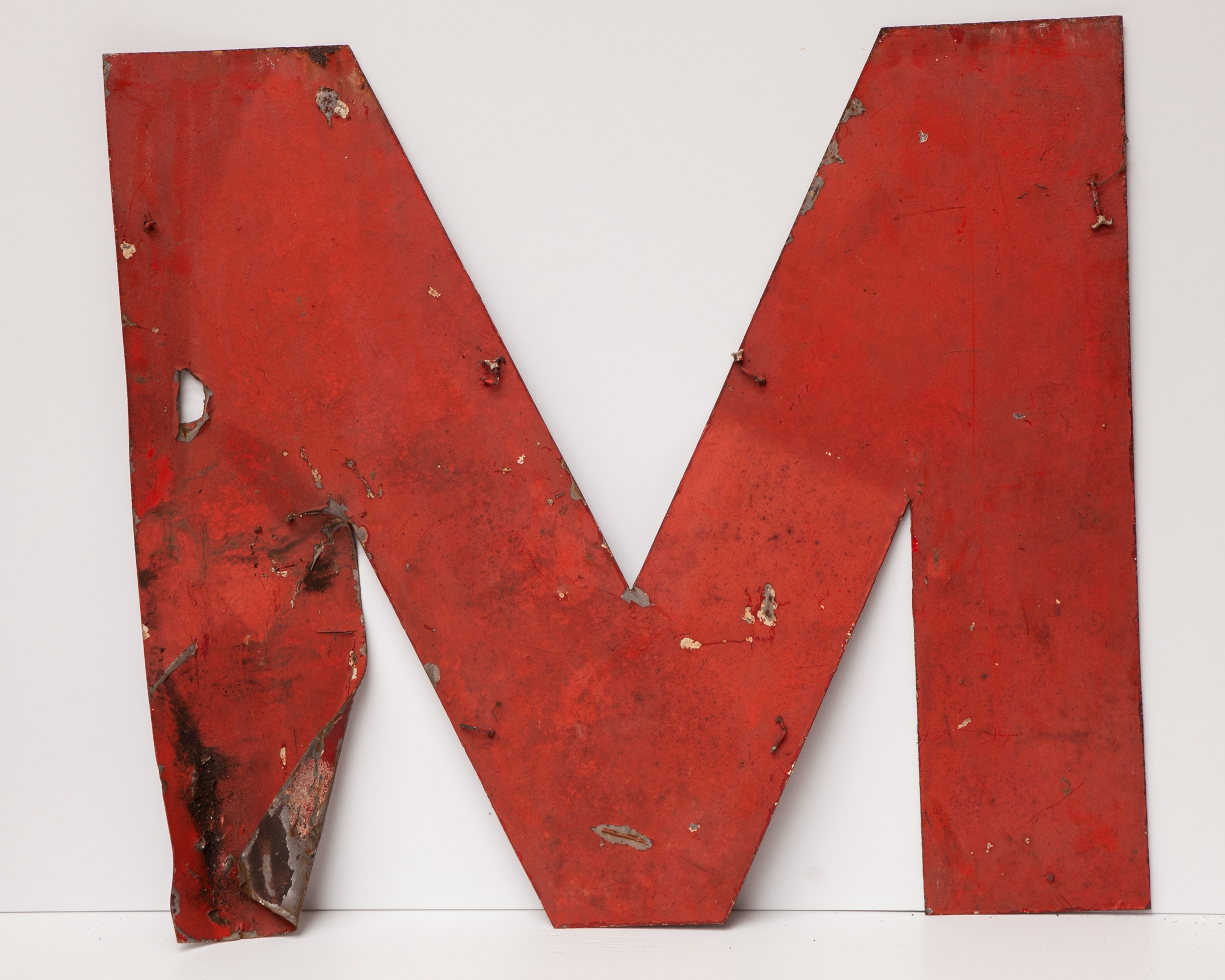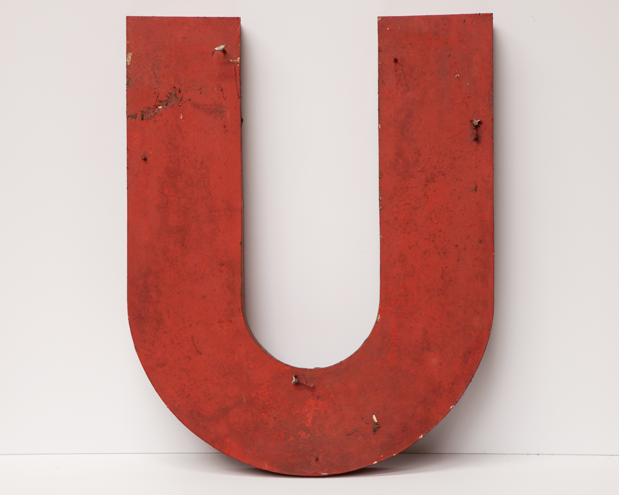 This unique sign consisting of sixteen 36in high red letters spelling our Manchester United and twelve 18in high white letters spelling out Football Club, the letters lacking the neon tubes and in various states of condition