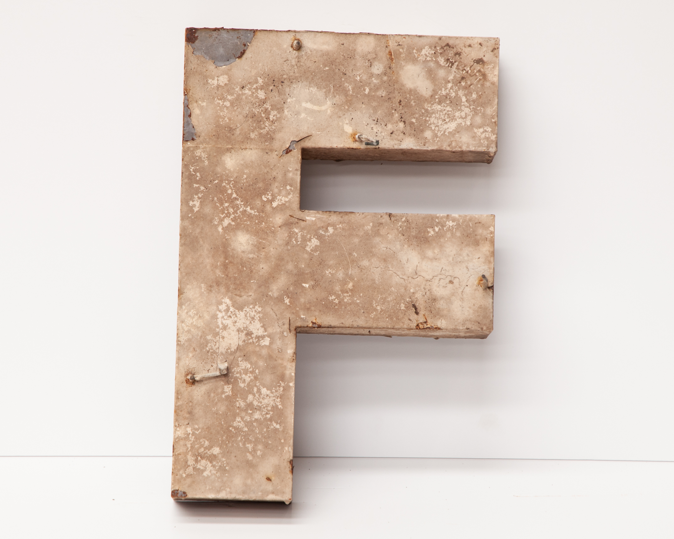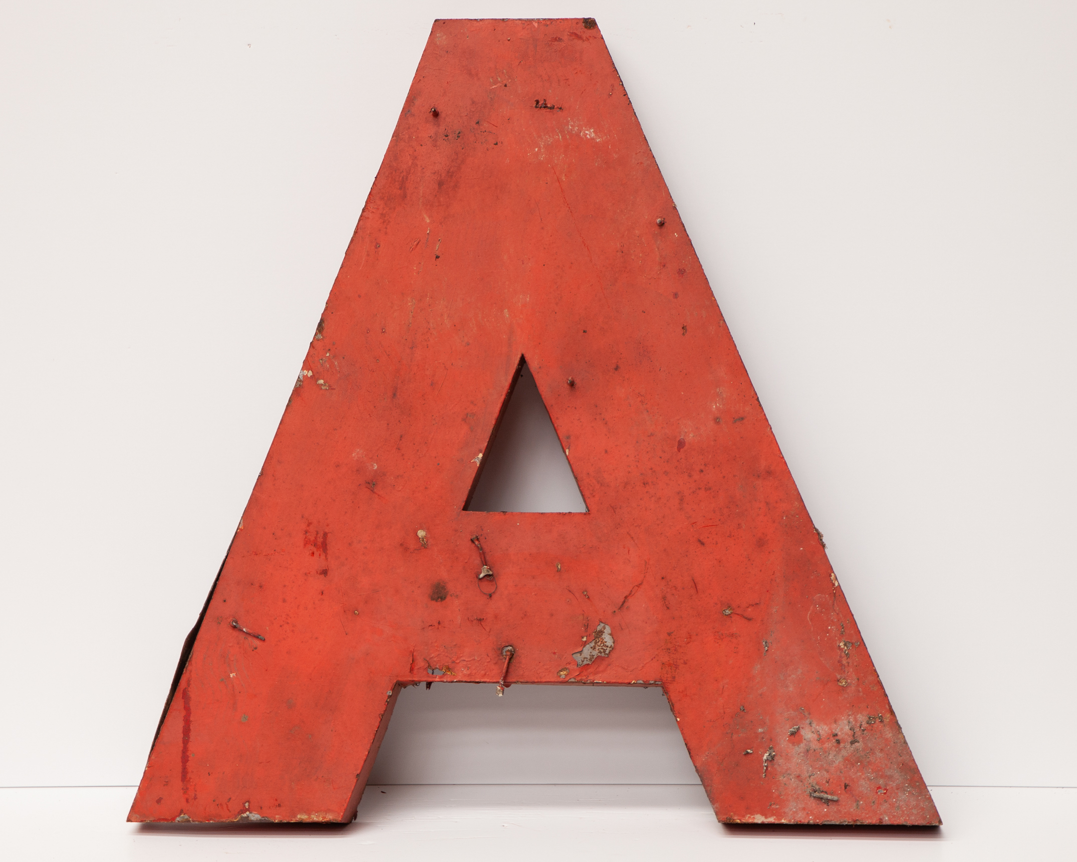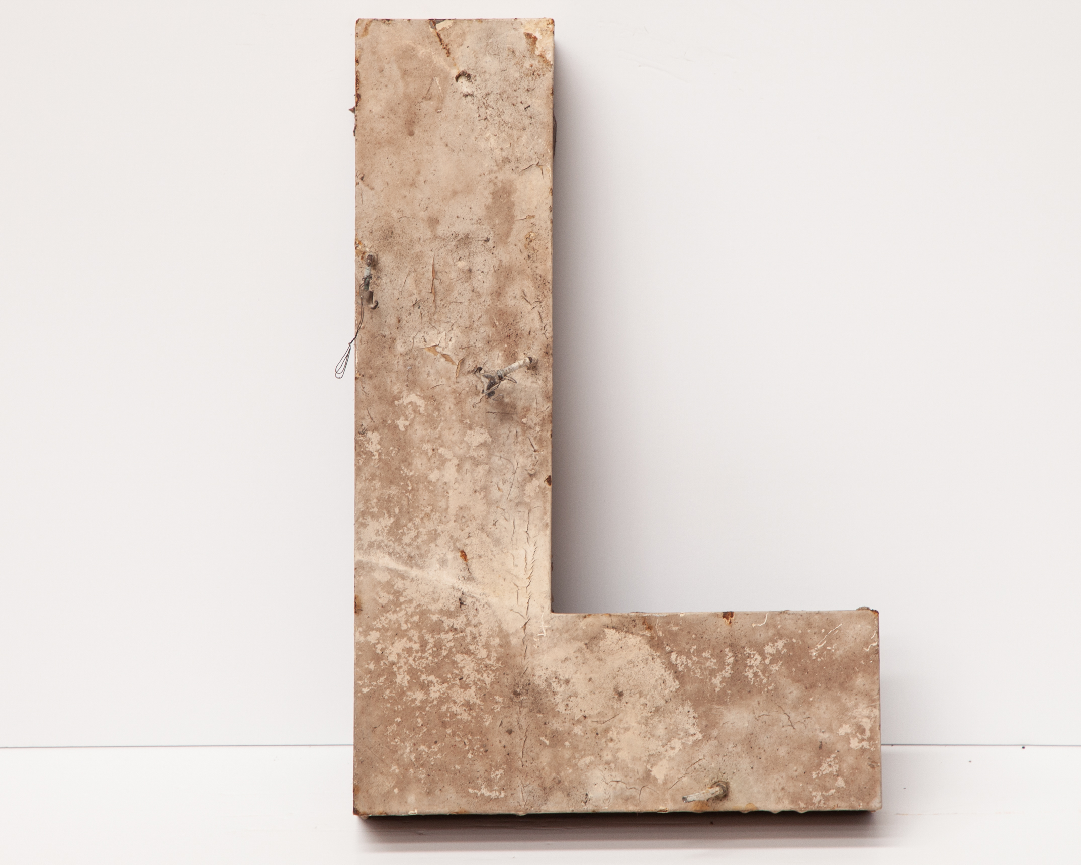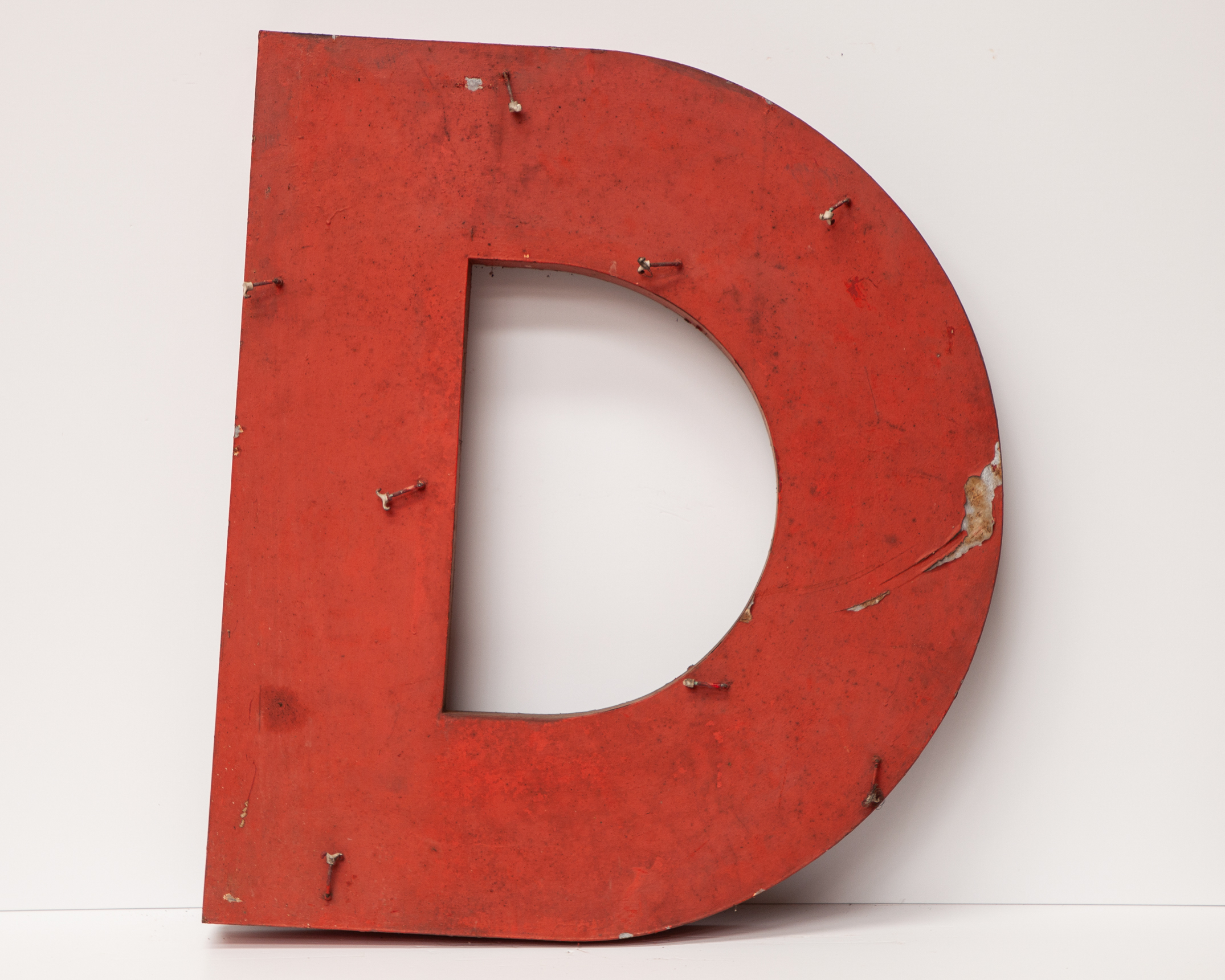 This unique sign consisting of sixteen 36in high red letters spelling our Manchester United and twelve 18in high white letters spelling out Football Club, the letters lacking the neon tubes and in various states of condition
