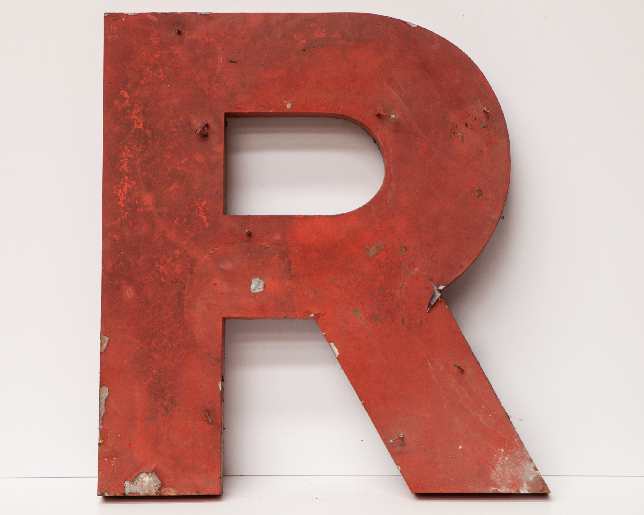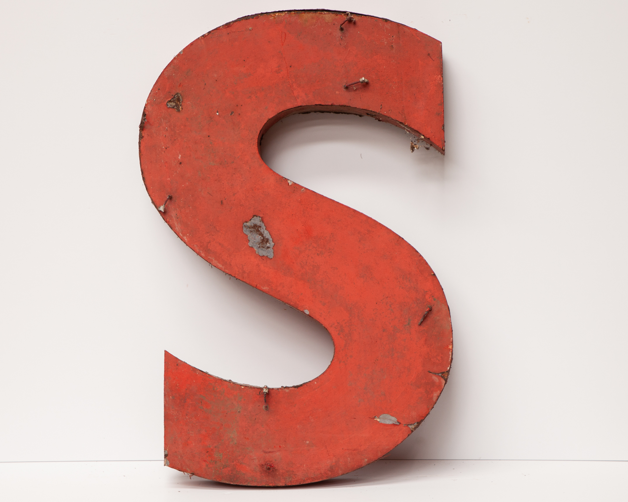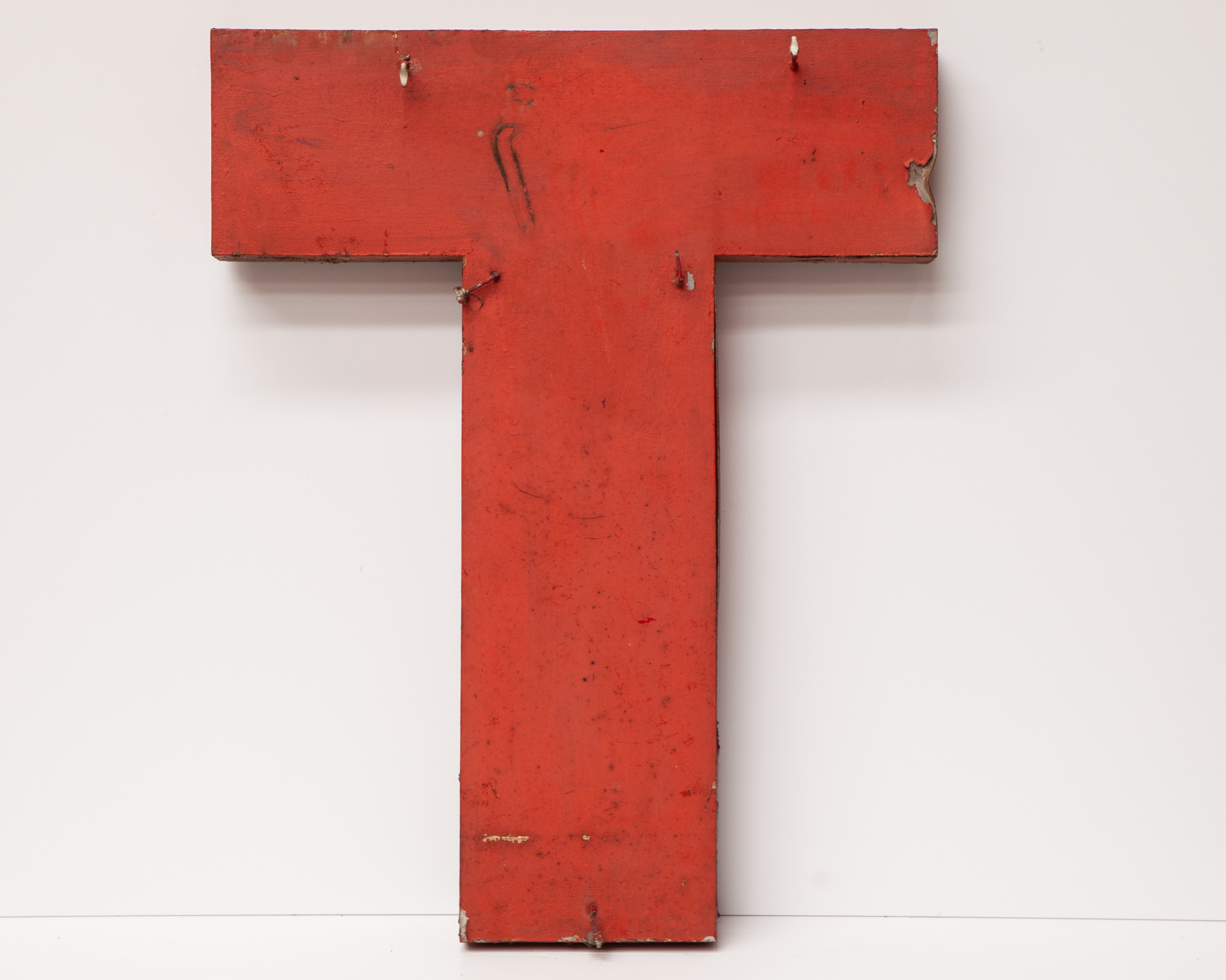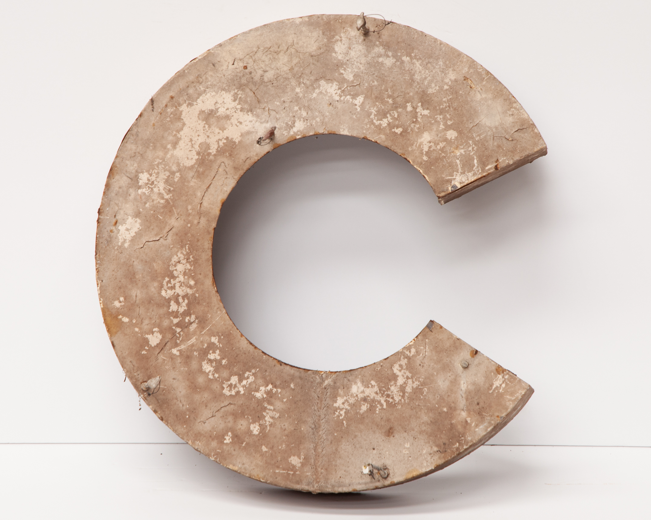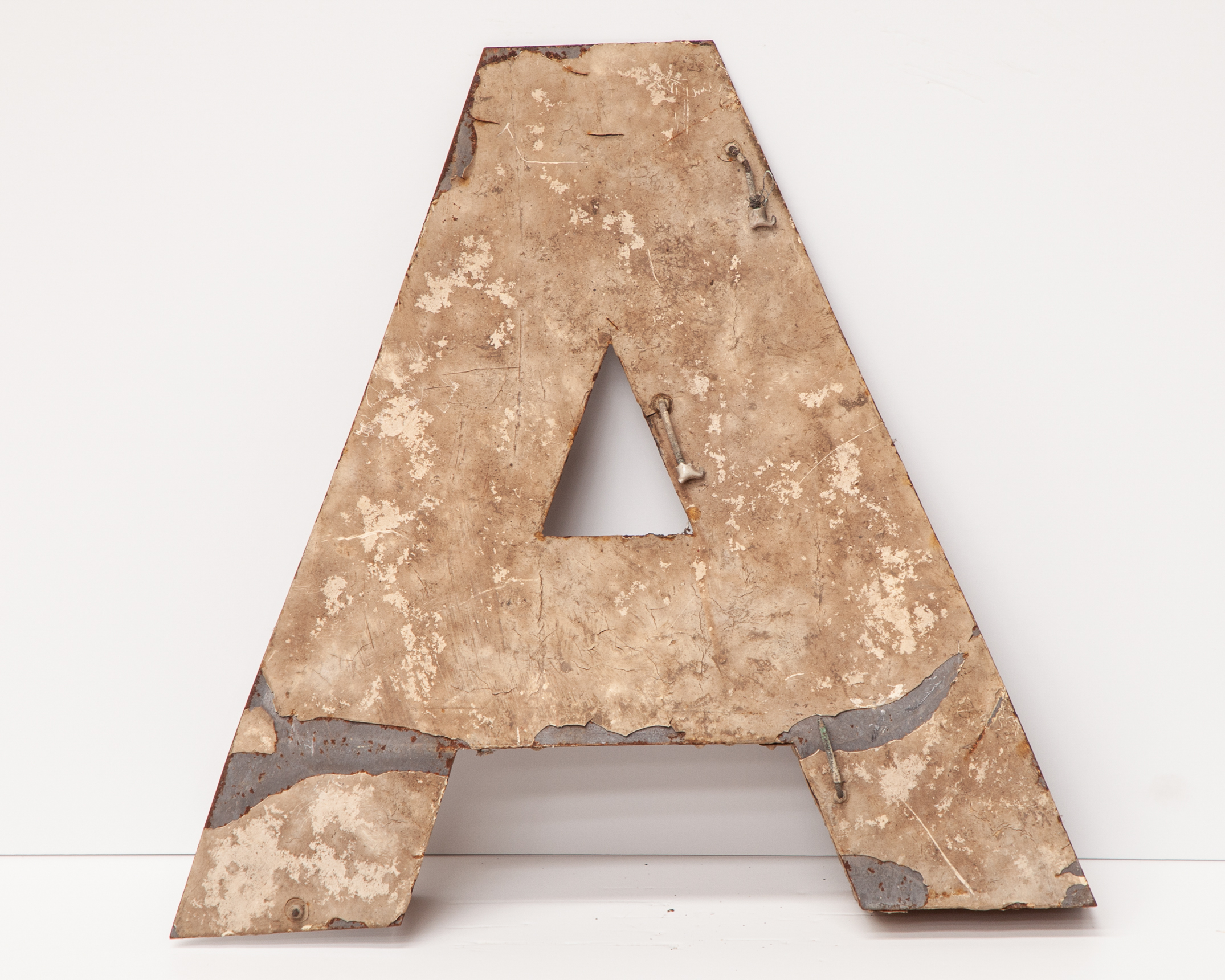 This unique sign consisting of sixteen 36in high red letters spelling our Manchester United and twelve 18in high white letters spelling out Football Club, the letters lacking the neon tubes and in various states of condition