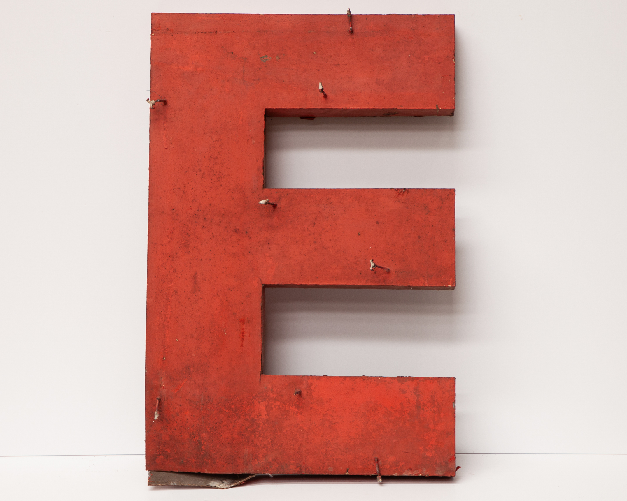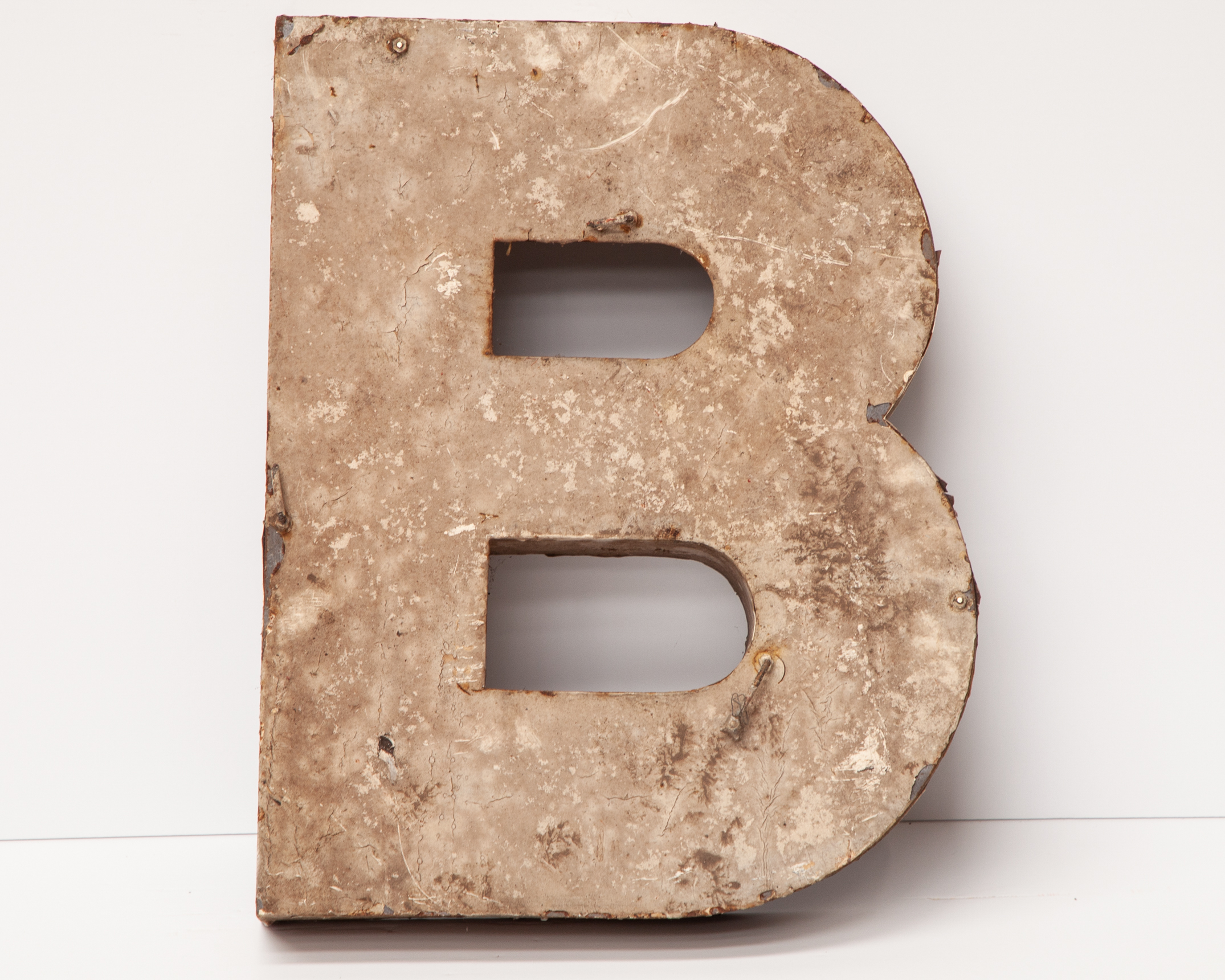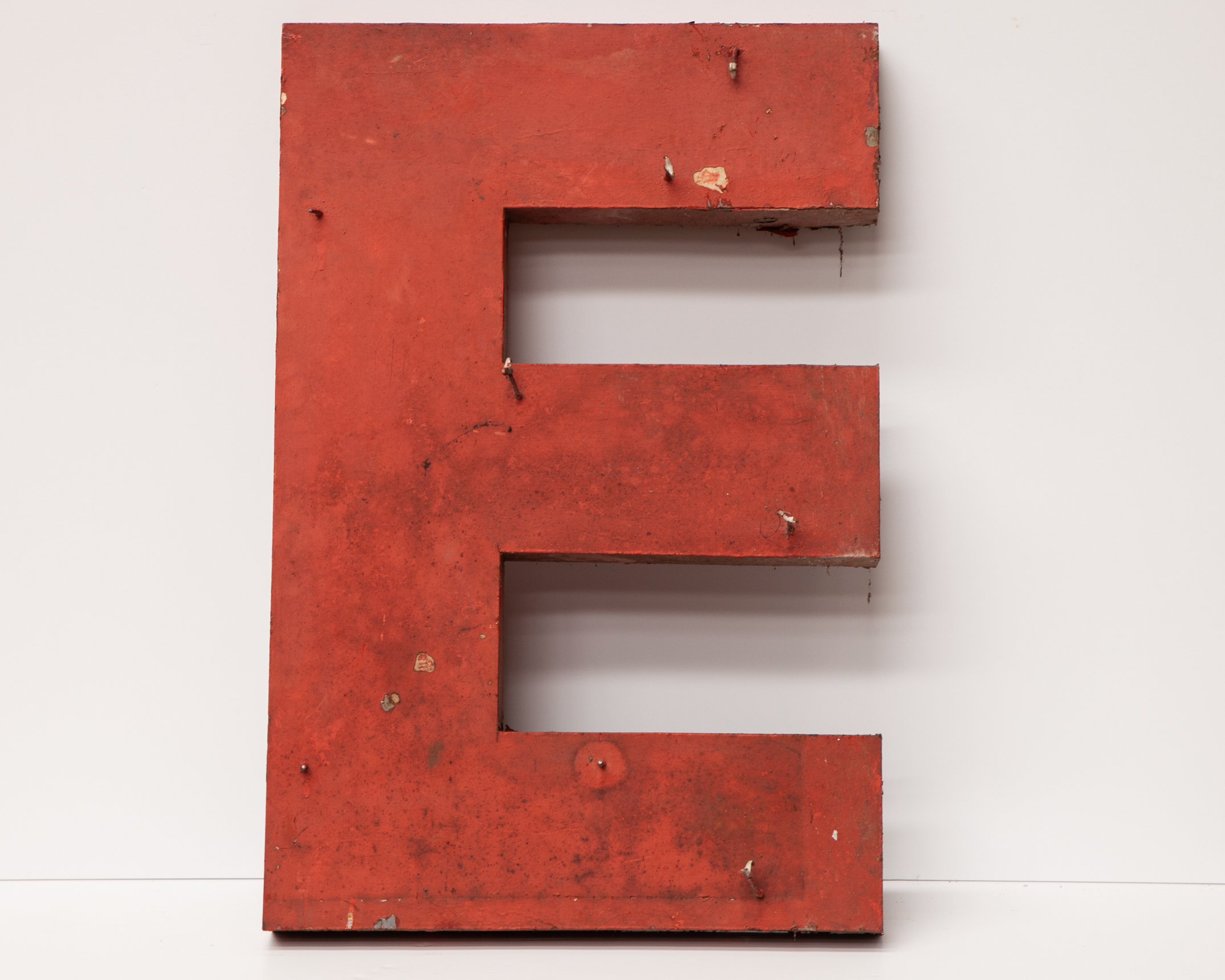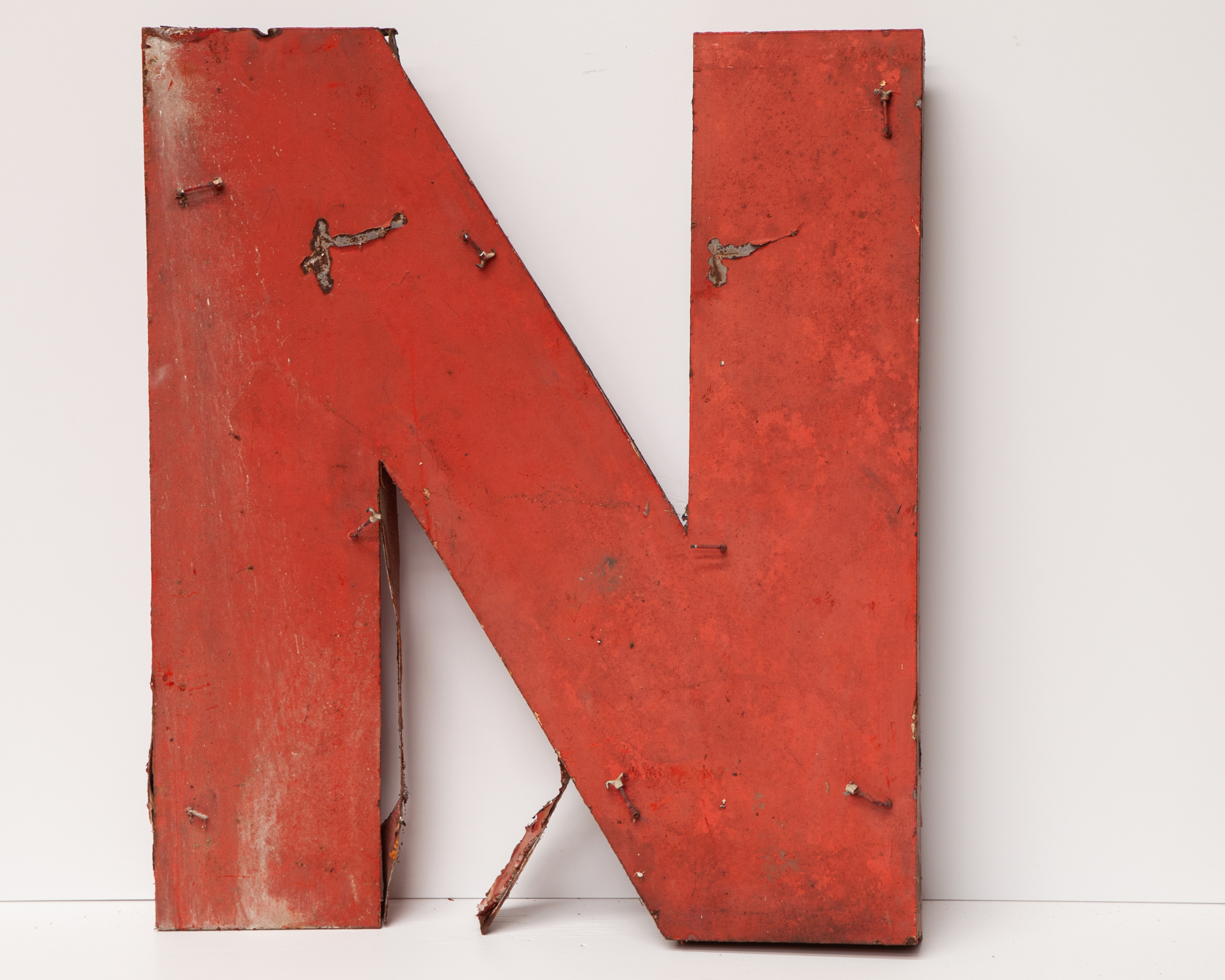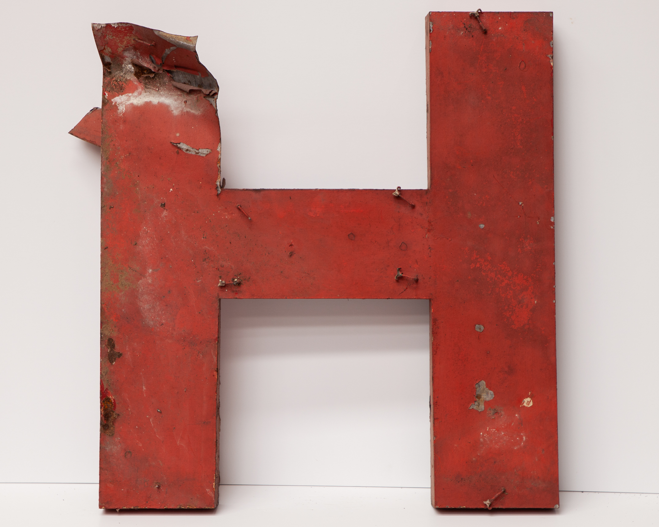 This unique sign consisting of sixteen 36in high red letters spelling our Manchester United and twelve 18in high white letters spelling out Football Club, the letters lacking the neon tubes and in various states of condition