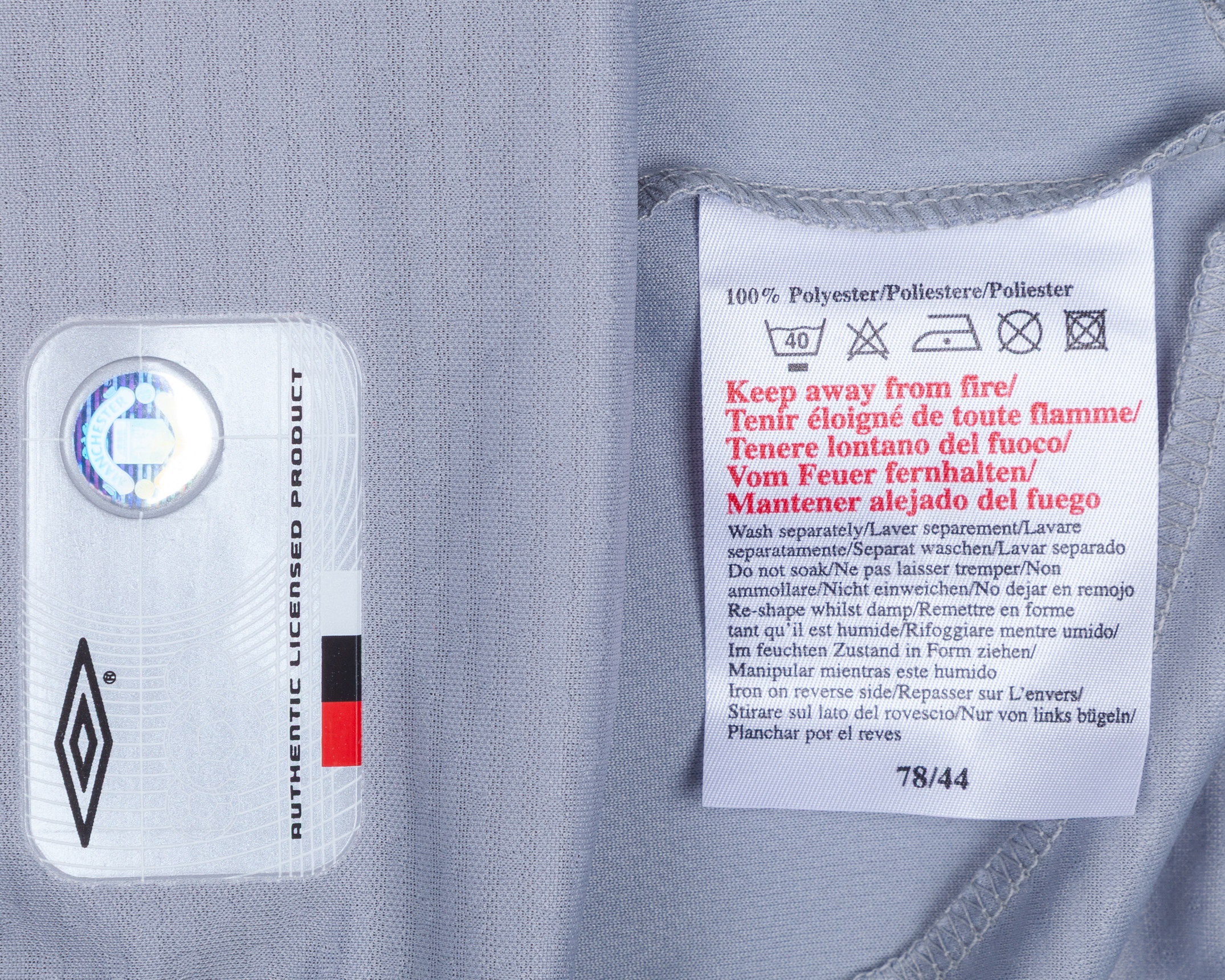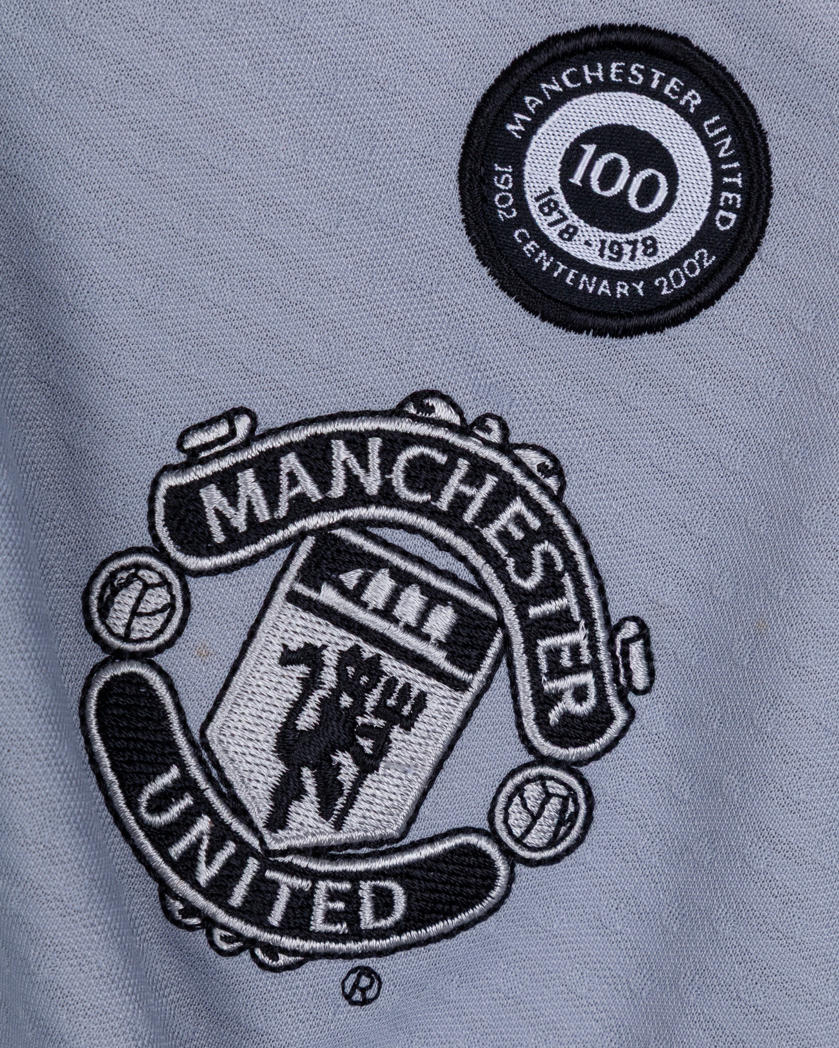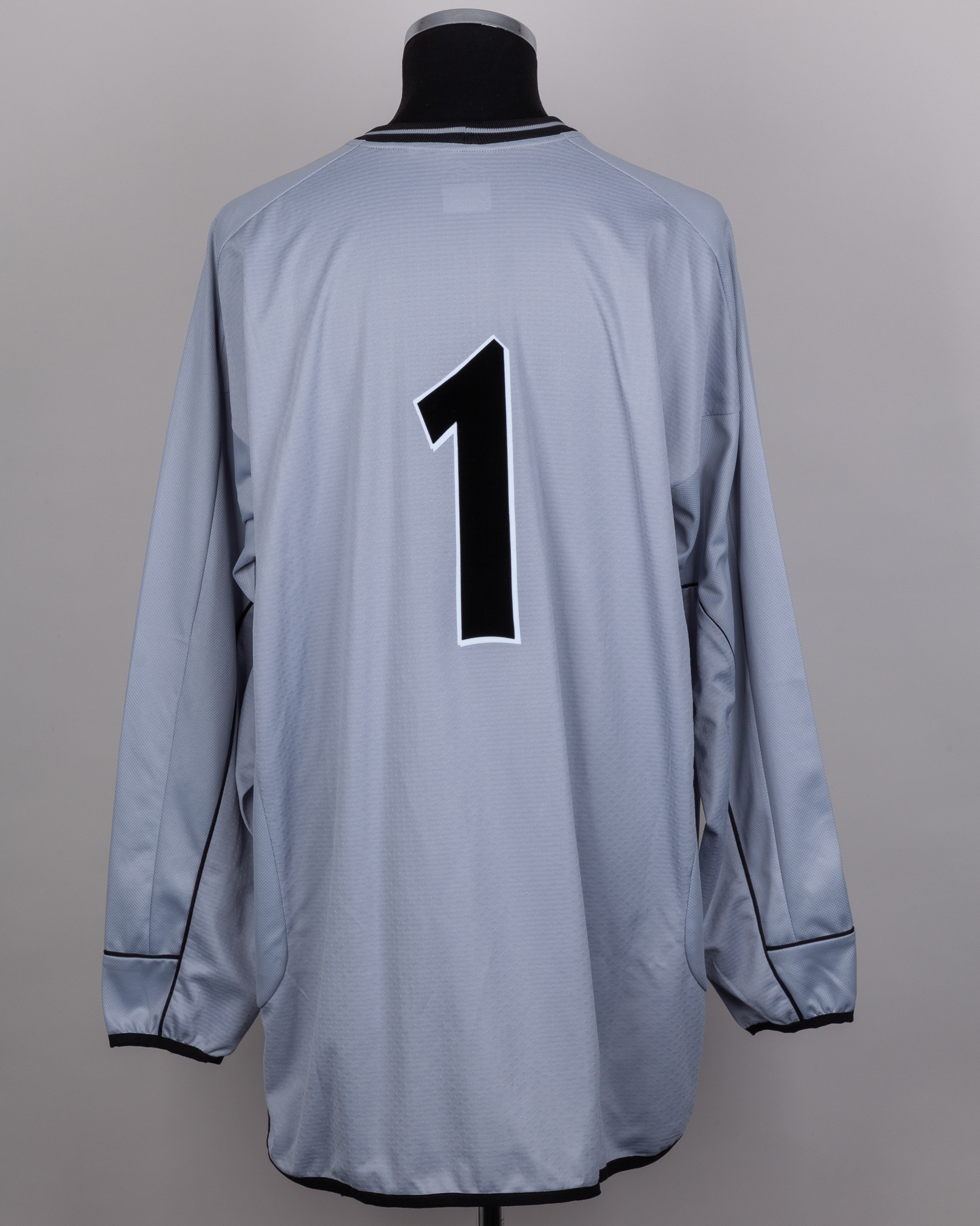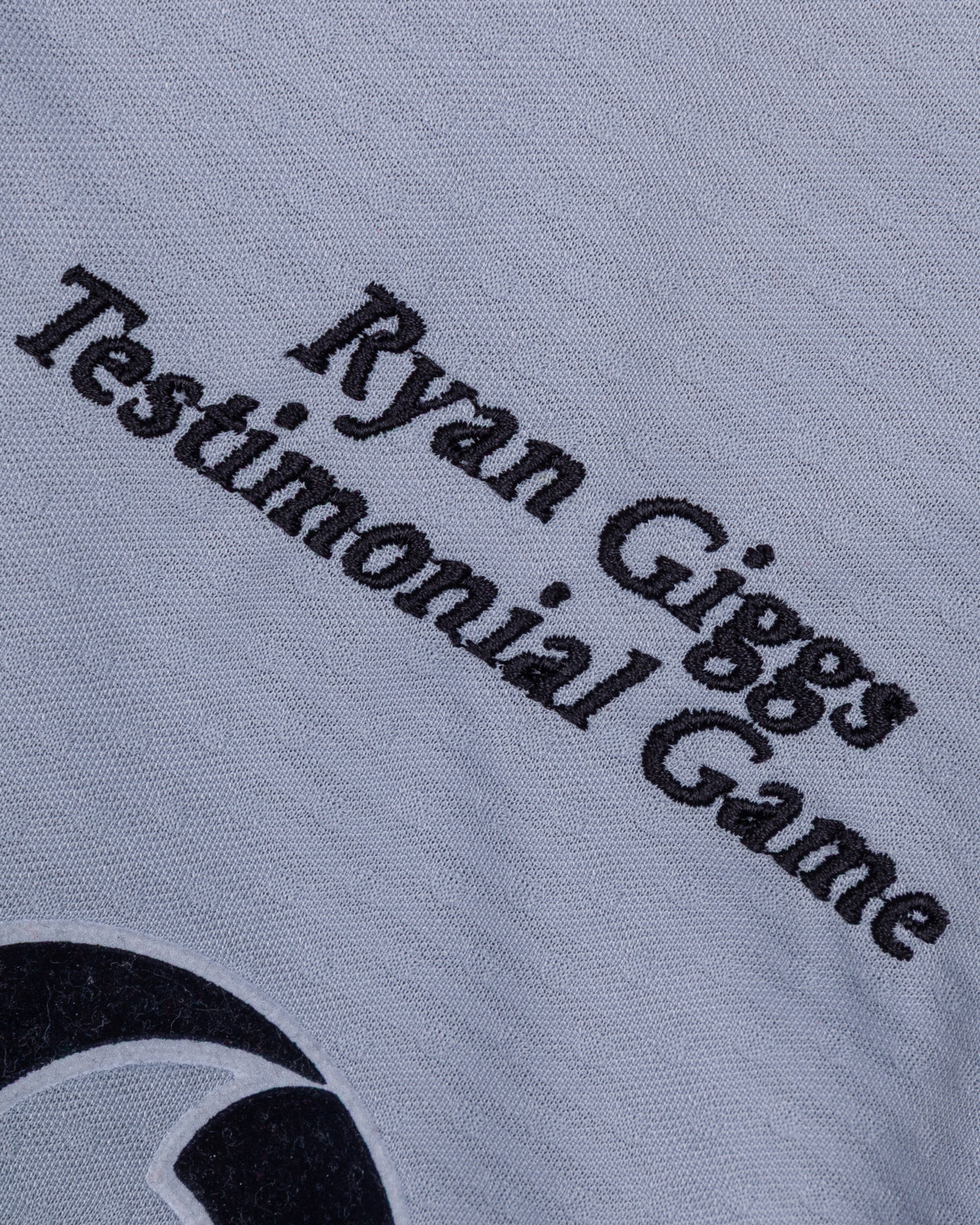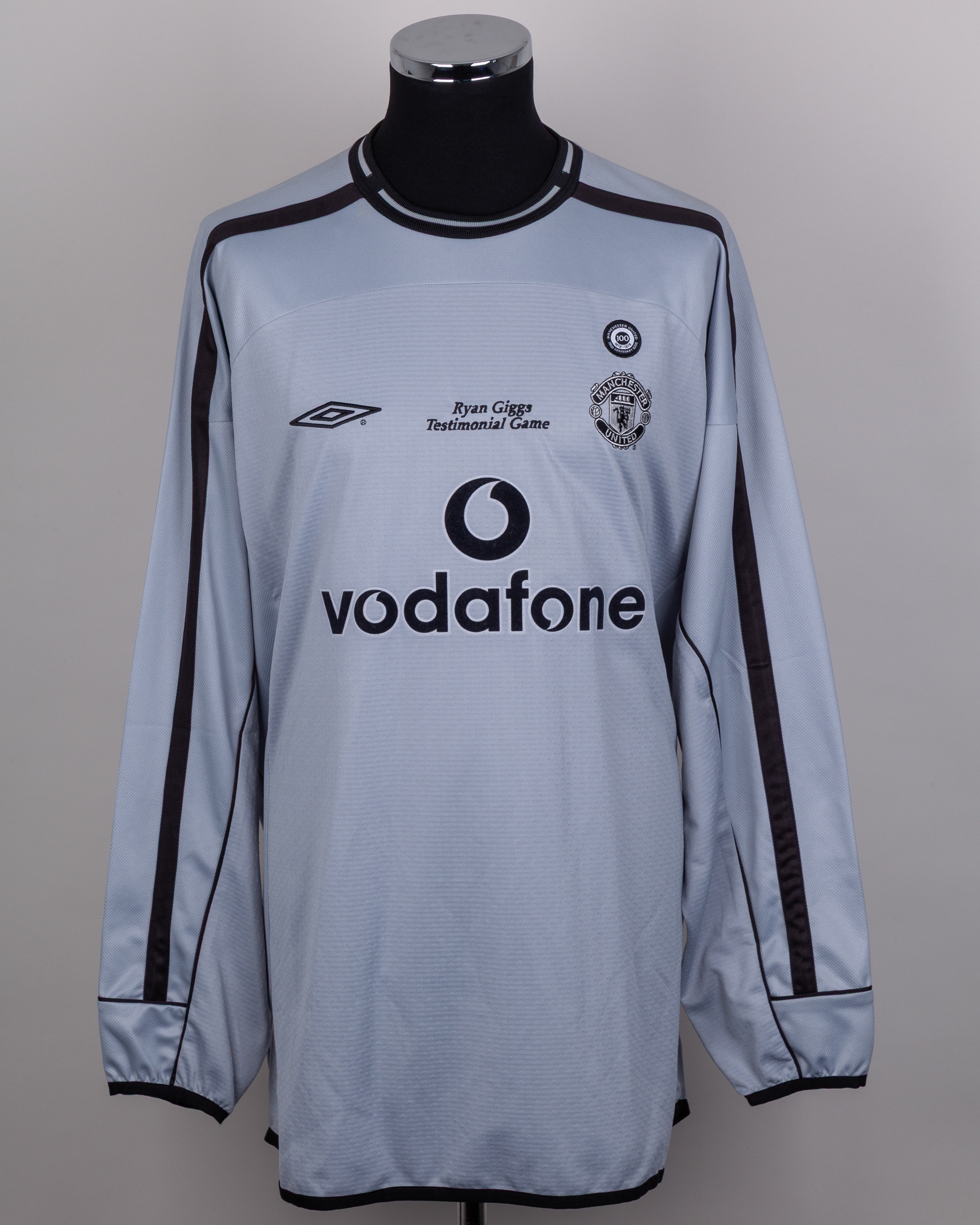 Grey No.1 Manchester United v. Celtic Ryan Giggs Testimonial long-sleeved goalkeeper shirt, 2001, Umbro, XXL, with crew-neck collar and embroidered badge inscribed MANCHESTER UNITED Ryan Giggs Testimonial Game, with embroidered cloth 100 centenary badge