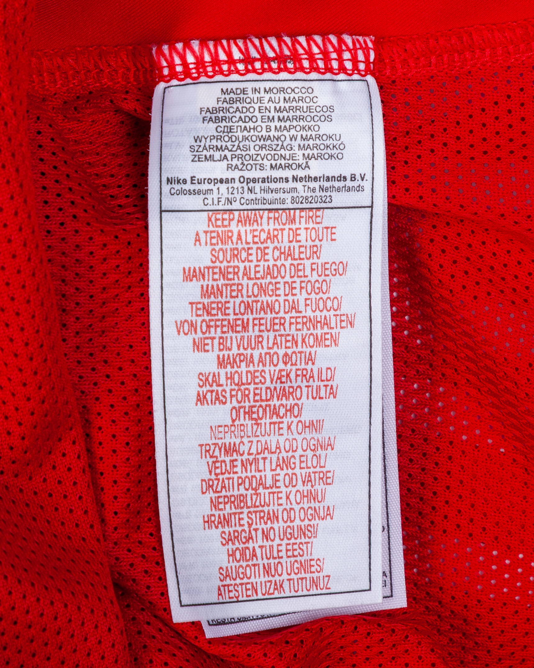 Ruud Van Nistelrooy autographed red No.10 Manchester United short-sleeved shirt, 2002-04, Nike, L, with crew-neck collar and embroidered badge inscribed MANCHESTER UNITED, the reverse lettered v. NISTELROOY, autographed on the number, the right sleeve with Champions League flash, number stained and sponsor print worn