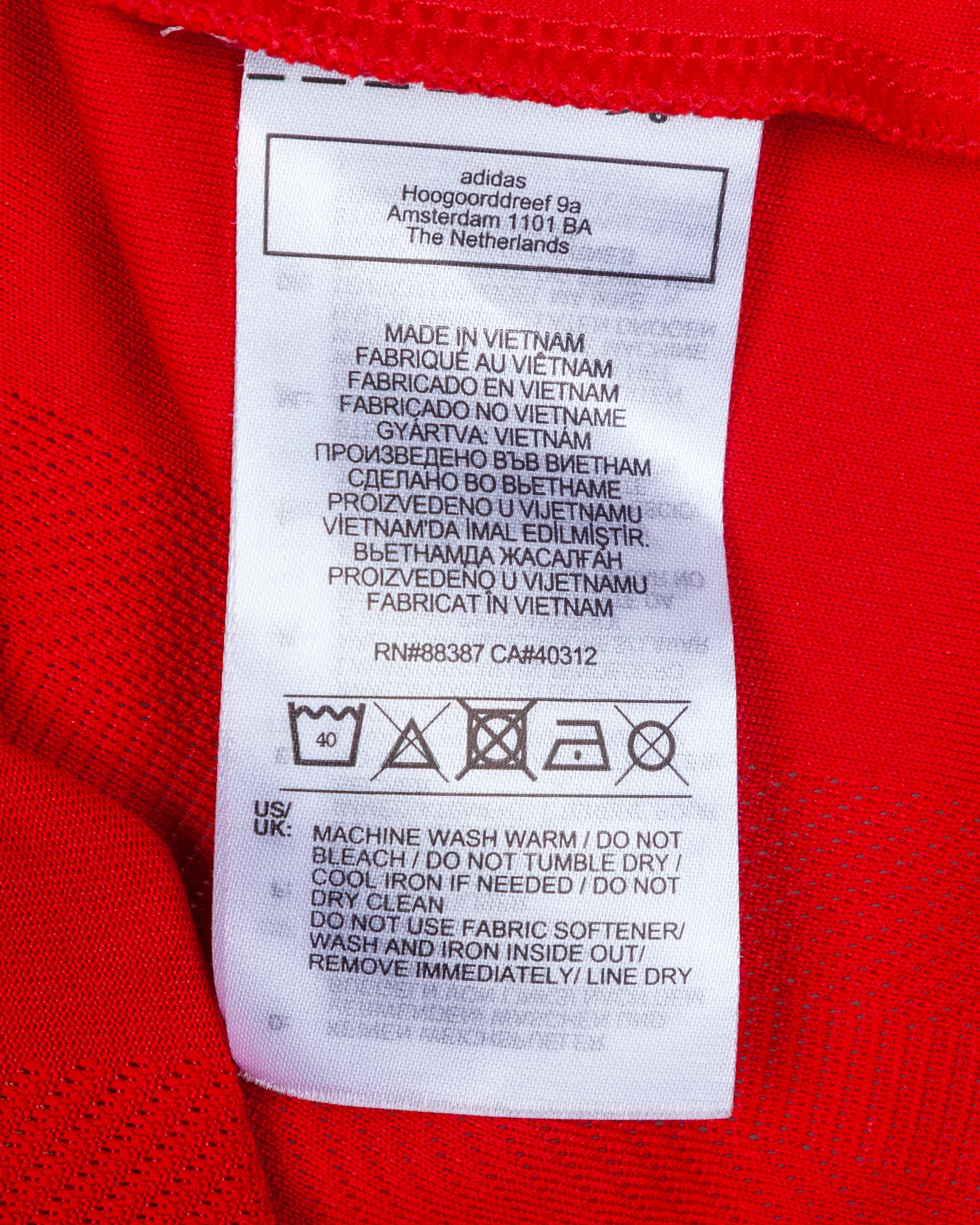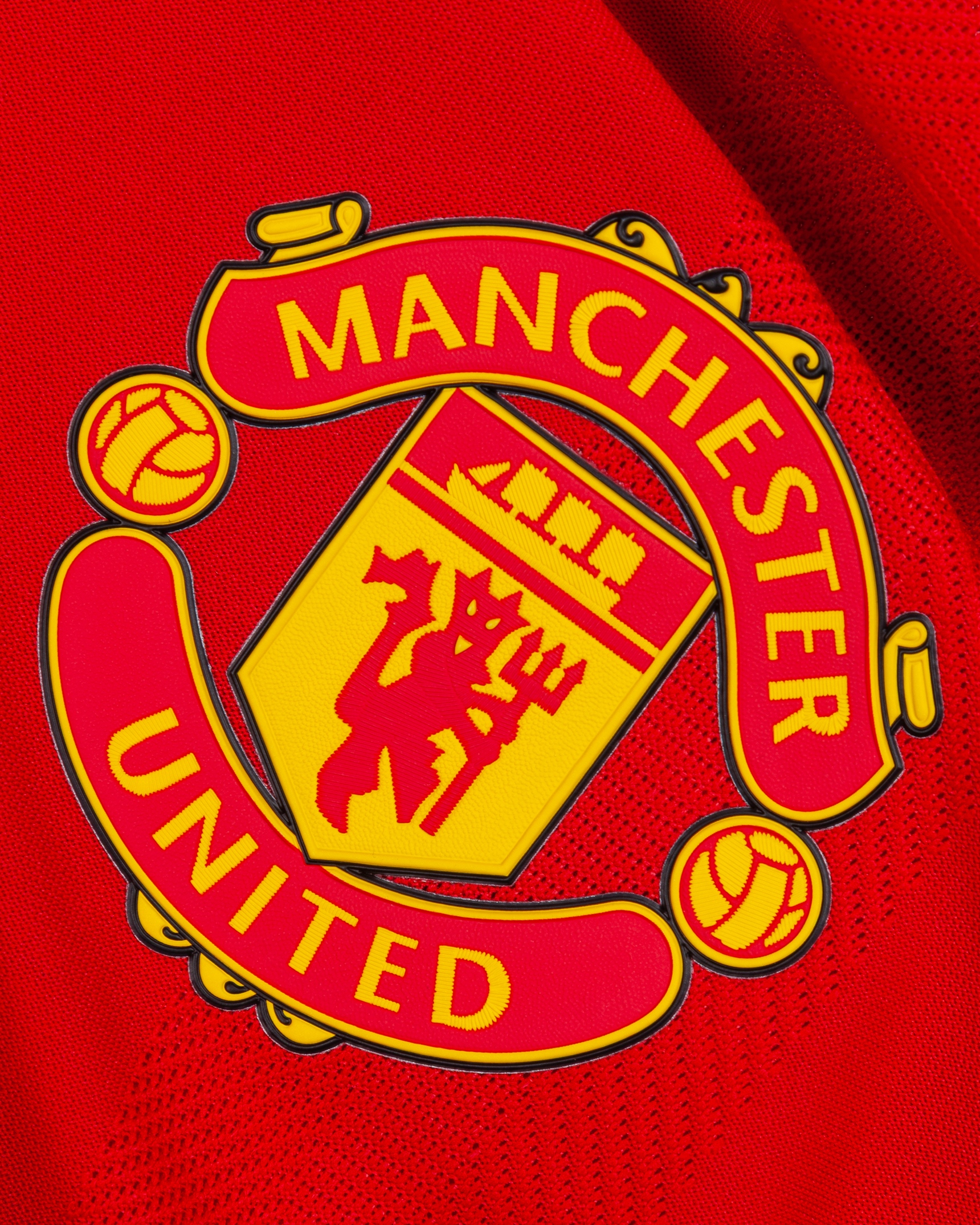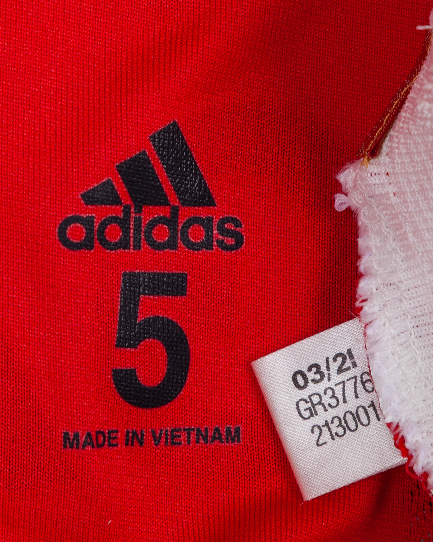 Jesse Lingard autographed red No.14 Manchester United short-sleeved shirt, 2021-22, Adidas, 5, with crew-neck collar and printed badge, the reverse lettered LINGARD, autographed on the number, the right sleeve with Premier League flash