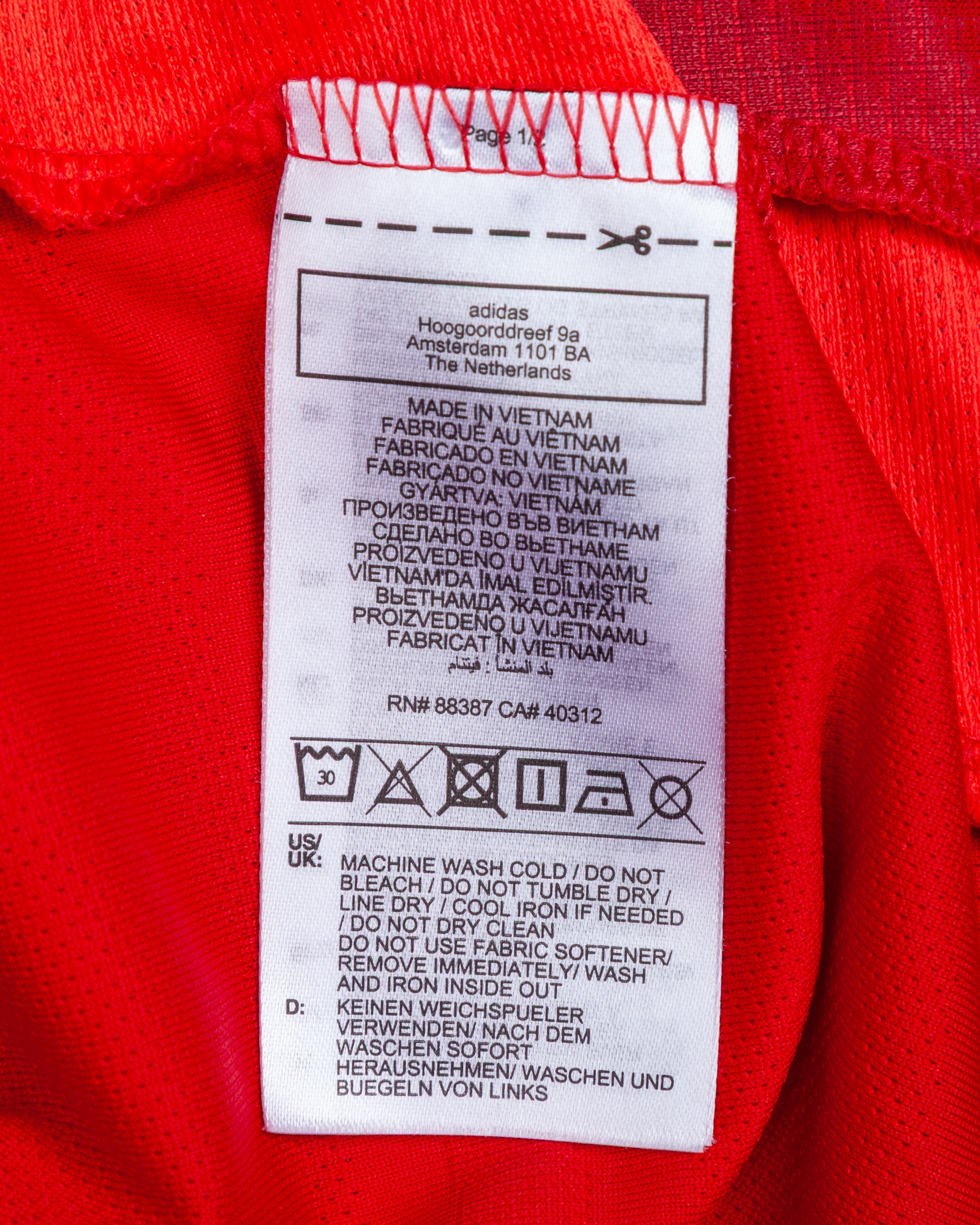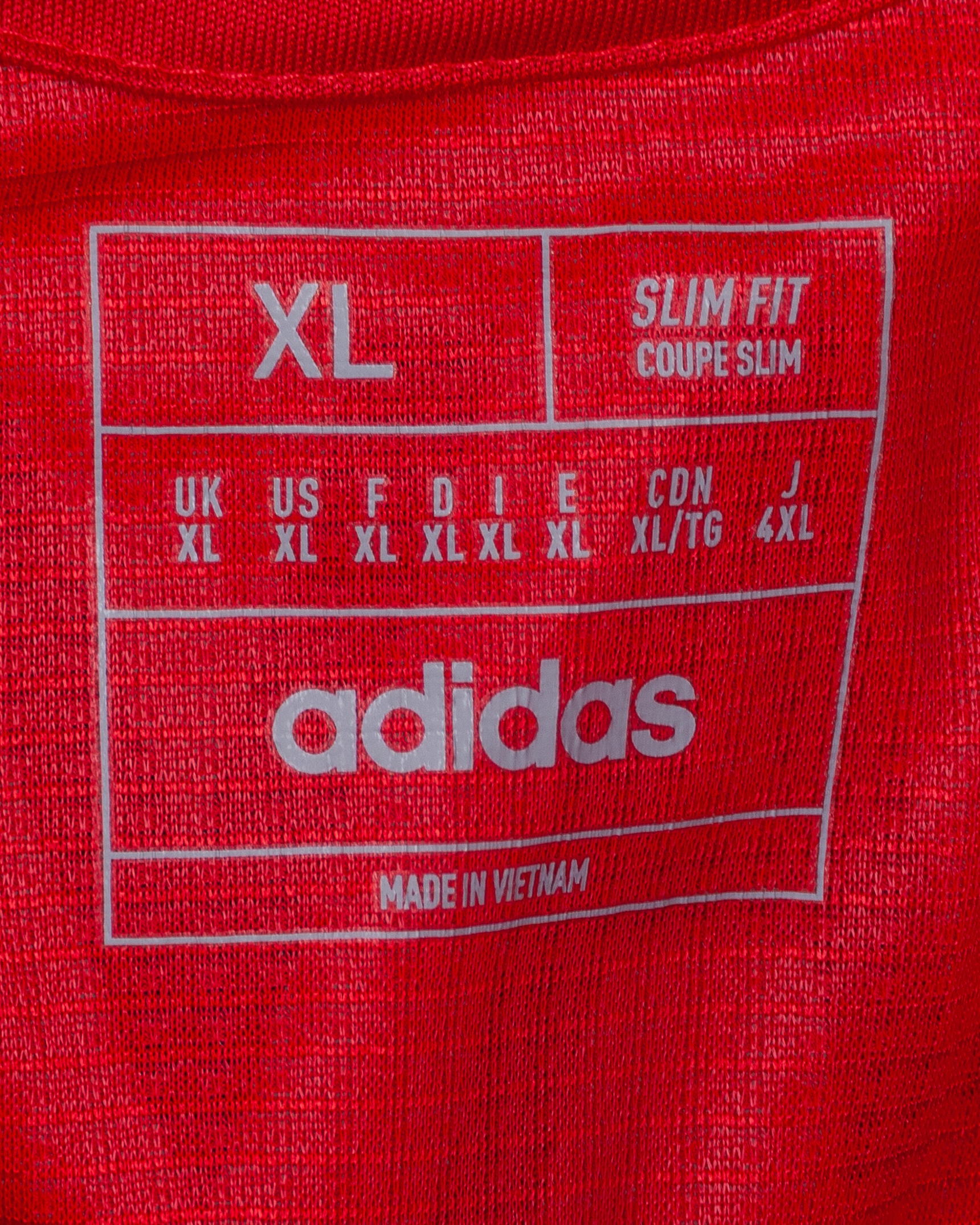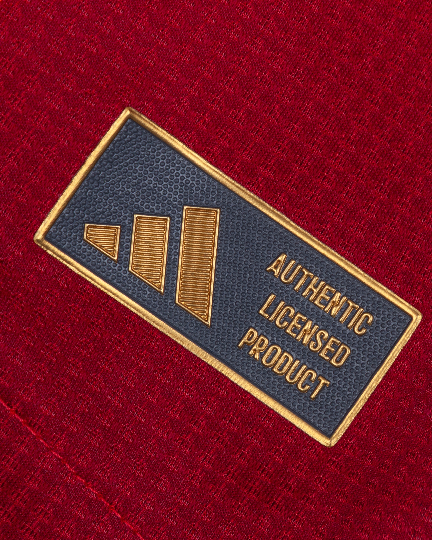 Ayden Heaven red No.26 Manchester United short-sleeved shirt, 2024-25, Adidas, XL, with crew-neck collar and printed badge, the reverse lettered HEAVEN, the right sleeve with Europa League and UEFA foundation flahses, flash loose
