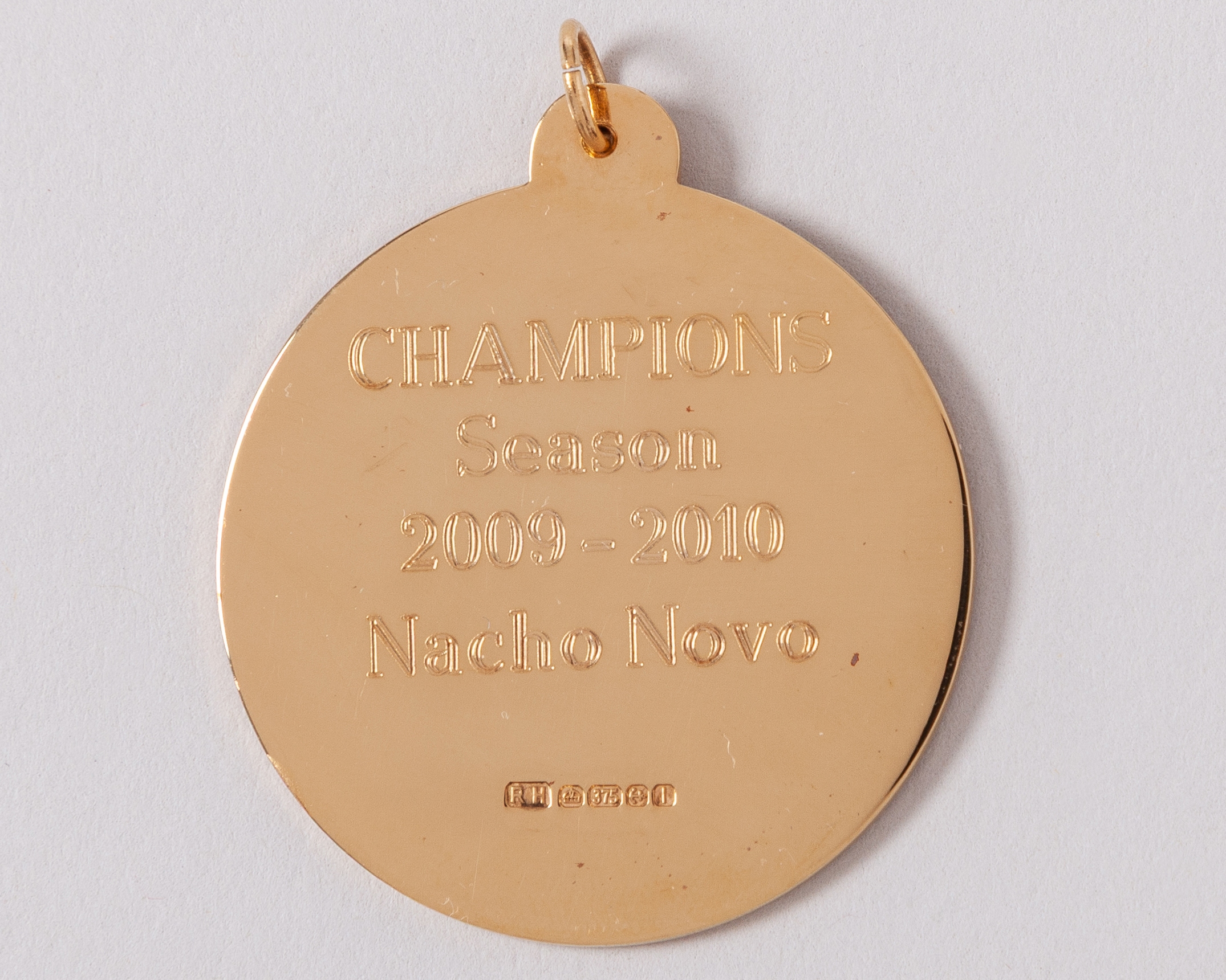 Nacho Novo 9ct gold Rangers Scottish Premier League Championship medal, 2009-10